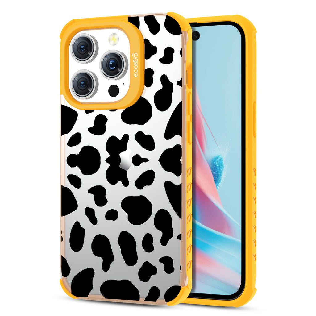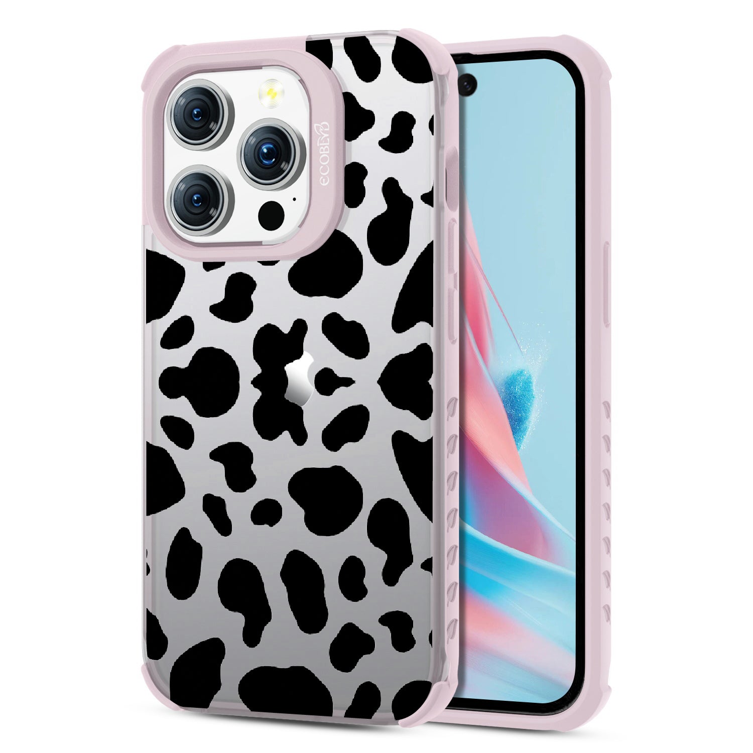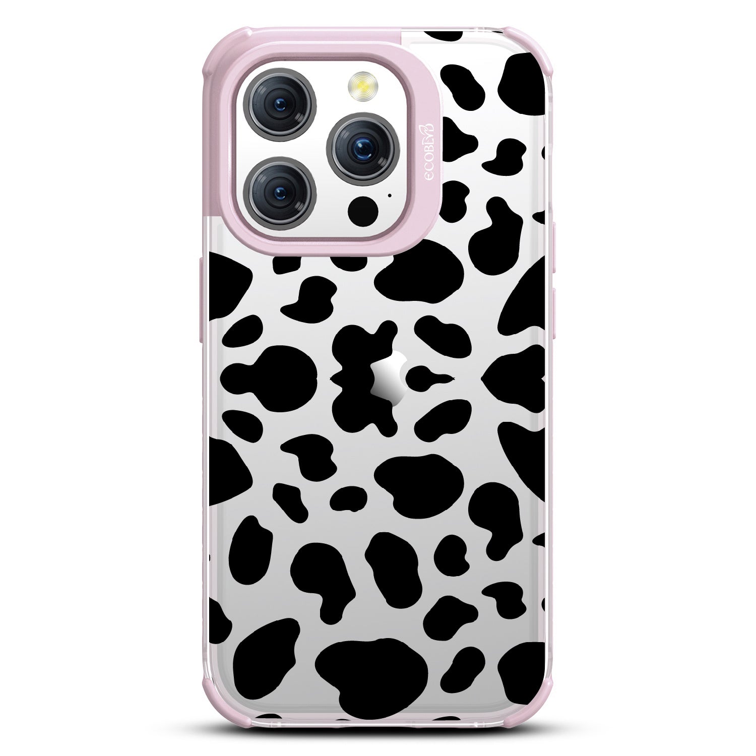 Make your iPhone 15 Pro easy to spot with this "moooognificient" Cow Print design on our Laguna clear iPhone 15 Pro case. Available in five vibrant colors: Midnight Black, Cascade Blue, Pastel Lilac, Illuminating Yellow, and Wildflower Pink.
