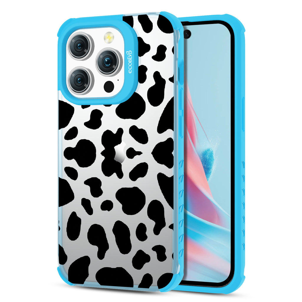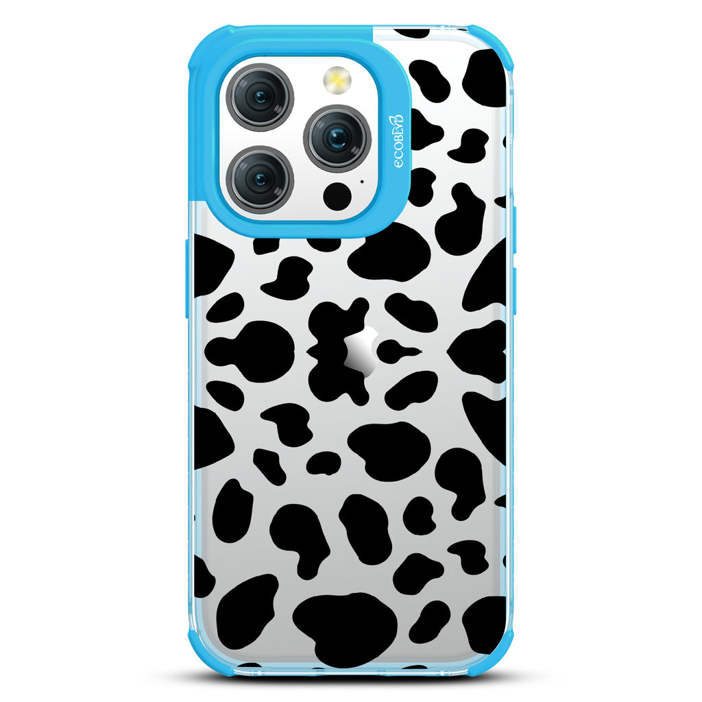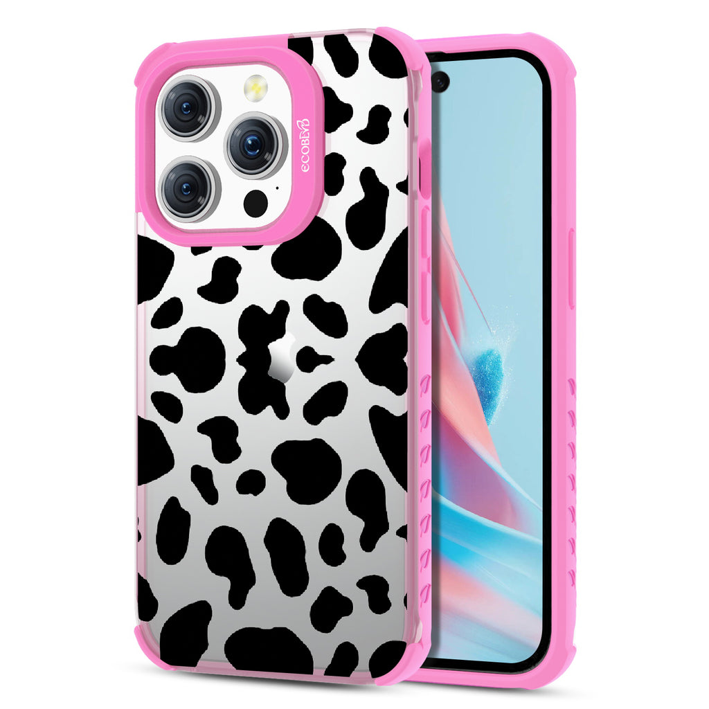 Make your iPhone 15 Pro easy to spot with this "moooognificient" Cow Print design on our Laguna clear iPhone 15 Pro case. Available in five vibrant colors: Midnight Black, Cascade Blue, Pastel Lilac, Illuminating Yellow, and Wildflower Pink.