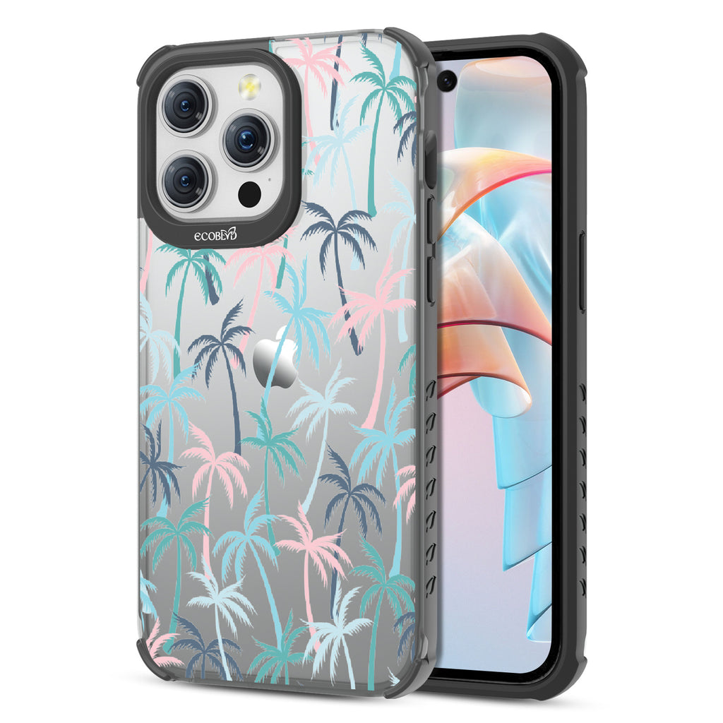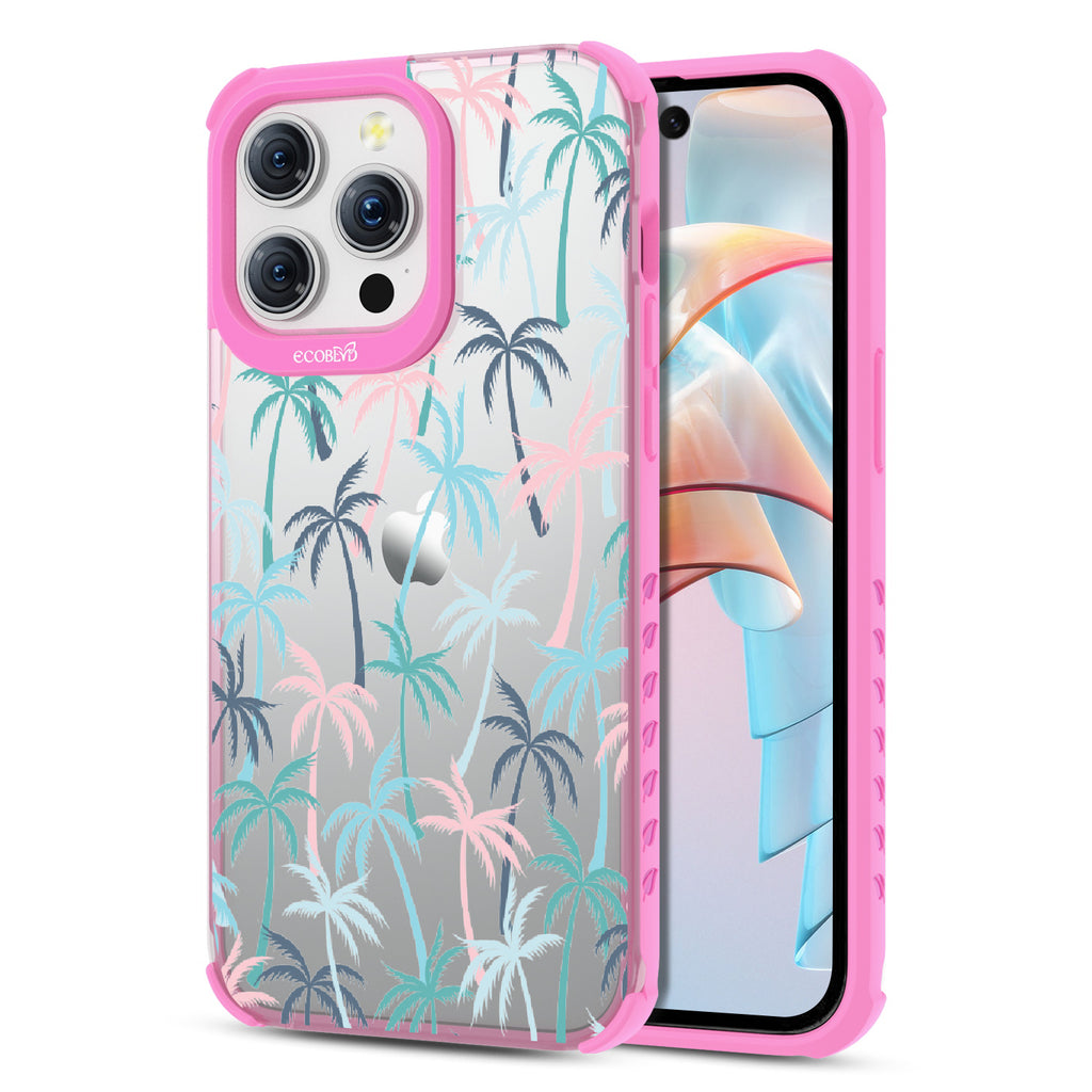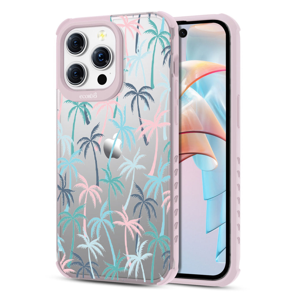 Bring on the heatwave of style with the Cruel Summer design on our Laguna clear iPhone 15 Pro Max case. Its palm trees decked out in a mesmerizing retro-Miami inspired palette invite you to step into a summer that's anything but ordinary. With this design, you'll experience a world of bold choices, vibrant energy, and unforgettable moments. Take your phone on a wild ride, make a statement wherever you go, and make it your playground for the cruel summer.