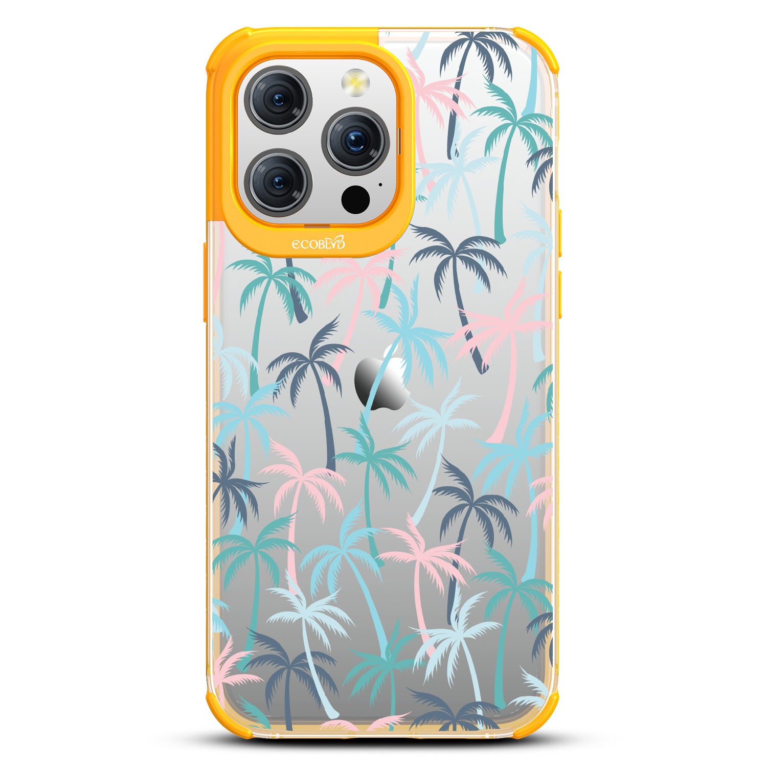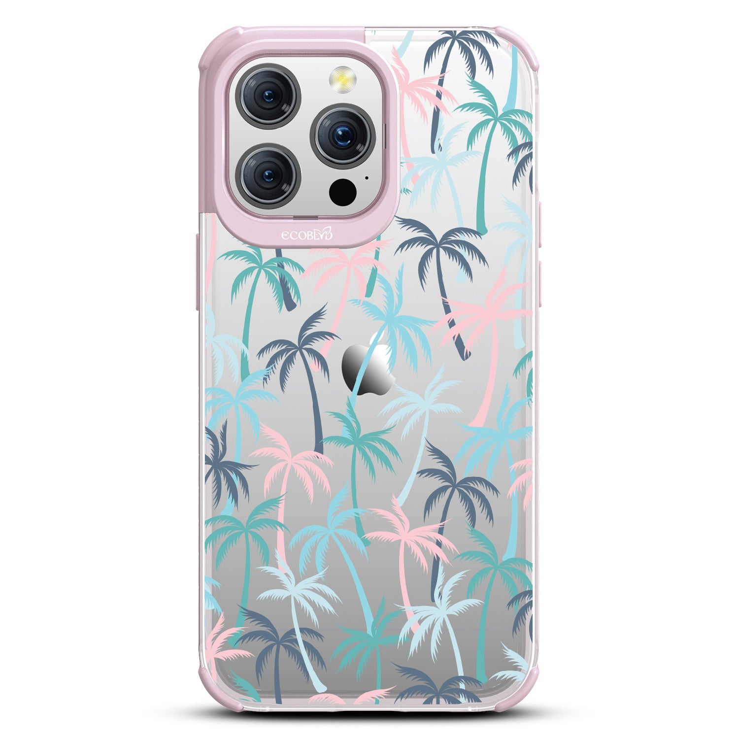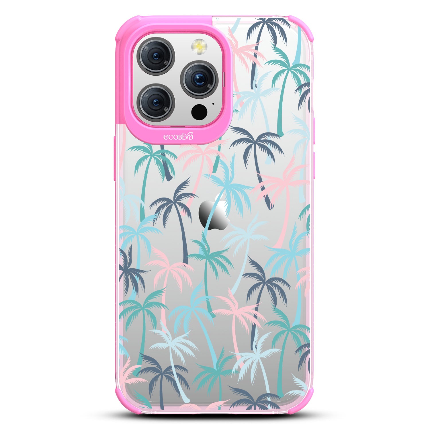 Bring on the heatwave of style with the Cruel Summer design on our Laguna clear iPhone 15 Pro Max case. Its palm trees decked out in a mesmerizing retro-Miami inspired palette invite you to step into a summer that's anything but ordinary. With this design, you'll experience a world of bold choices, vibrant energy, and unforgettable moments. Take your phone on a wild ride, make a statement wherever you go, and make it your playground for the cruel summer.