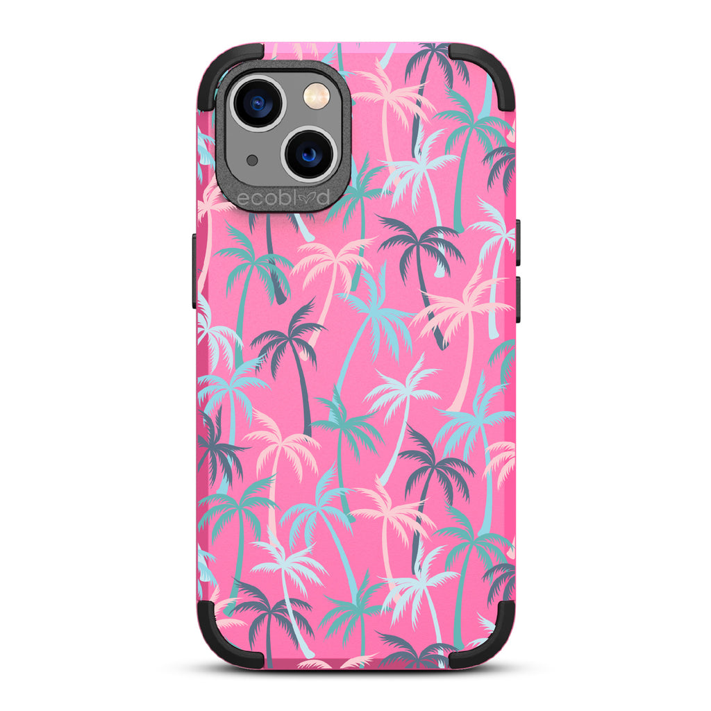 Bring on the heatwave of style with the Cruel Summer design on our Mojave rugged and compostable iPhone 13 case. Its palm trees decked out in a mesmerizing retro-Miami inspired palette invite you to step into a summer that's anything but ordinary. With this design, you'll experience a world of bold choices, vibrant energy, and unforgettable moments. Take your phone on a wild ride, make a statement wherever you go, and make it your playground for the cruel summer.
