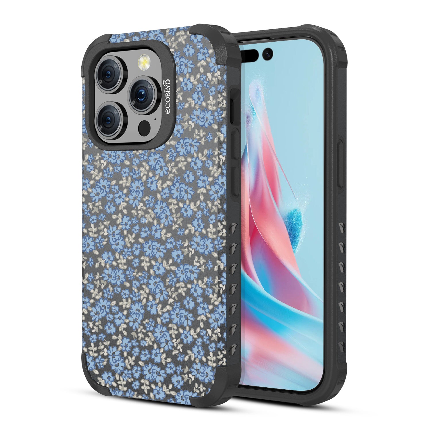 Take on the enchantment of a summertime reverie with the Ditsy Daze design on our Mojave rugged and compostable iPhone 15 Pro case. Its sun-dress-inspired design, adorned with delicate Forget-Me-Nots, captures the essence of a midsummer's night dream. Keep your phone dreamy and unforgettable all summer long. Available in two colorways: Midnight Black and Cascade Blue!
