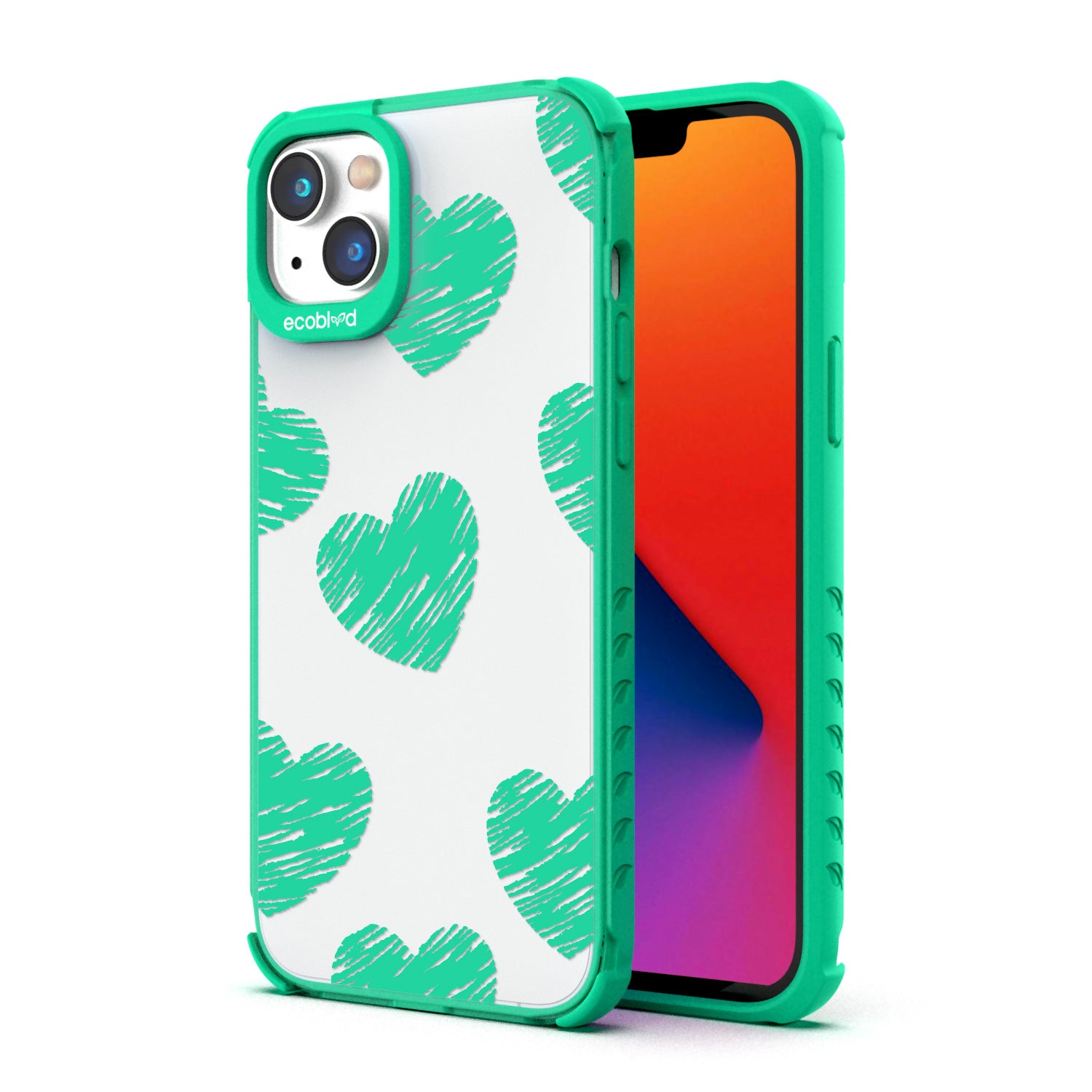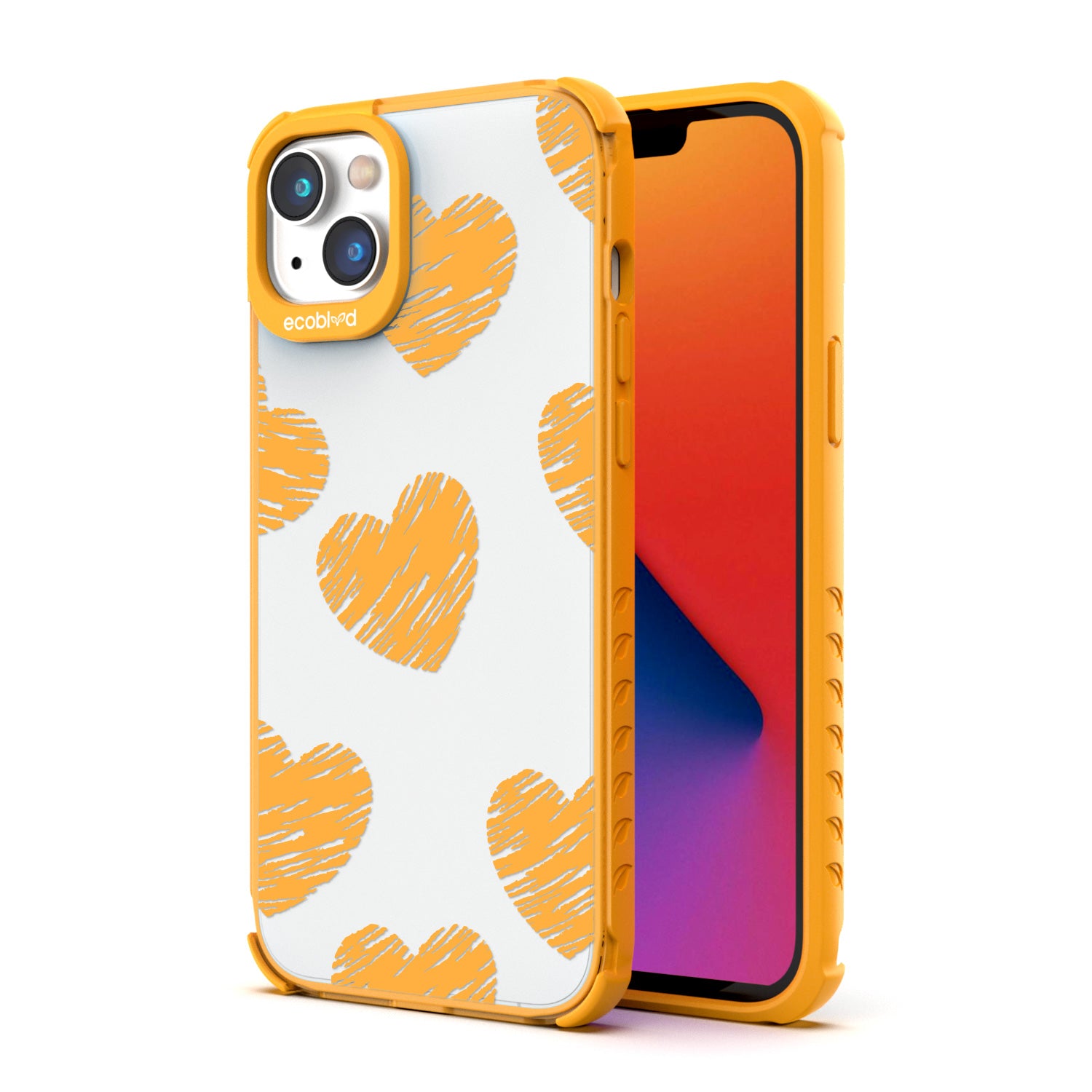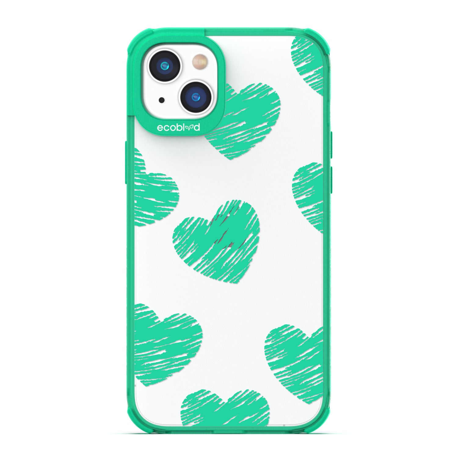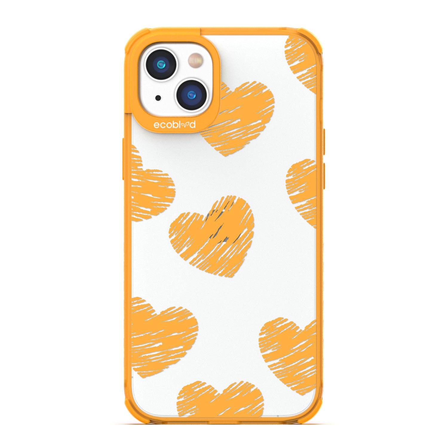 Perfectly capturing the magnetic pull of passion, the Drawn To You design on our Laguna clear iPhone 14 Plus case is an artful arrangement of scribbled hearts and the perfect representation of the power of love, turning any phone into an object of desire in five vibrant colorways: Midnight Black, Cascade Blue, Foliage Green, Illuminating Yellow, and Wildflower Pink.