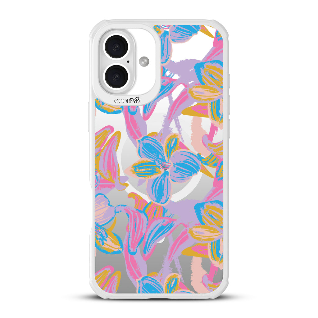 Illuminate your look with the Electric Feel design on our Revive clear iPhone 16 Plus phone case, where pastel flowers glow with an almost neon vibrance. Pastel petals infused with neon-like brightness give this design an electric feel, adding a modern twist to the natural beauty of flowers. Energize your phone and style with a burst of spring's electric beauty, making every moment vibrant and lively.