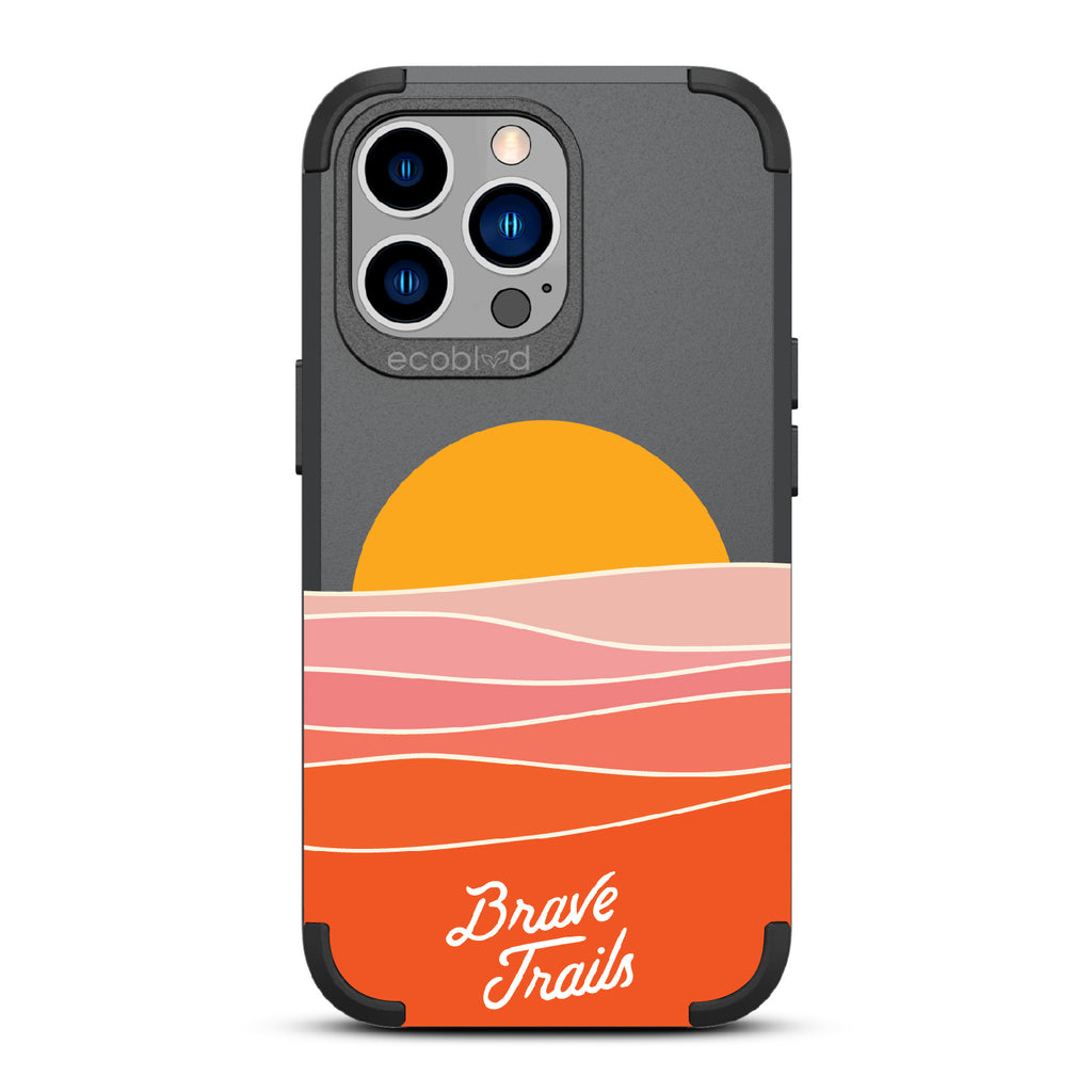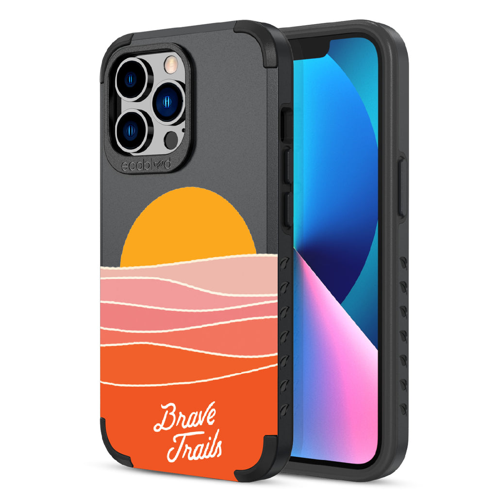 Embrace the radiance of a new beginning with the Enlightened x Brave Trails design on our Mojave rugged and compostable iPhone 13 Pro case. As the sun emerges from the horizon, casting a warm and vibrant glow over a serene hillside, you're reminded of the transformative power of embracing your true self. With the Brave Trails logo nestled in the bottom center, this design encapsulates the essence of enlightenment and self-discovery. Let this radiant design serve as a constant reminder to radiate positivity, embrace your inner light, and illuminate the world with your unique brilliance.