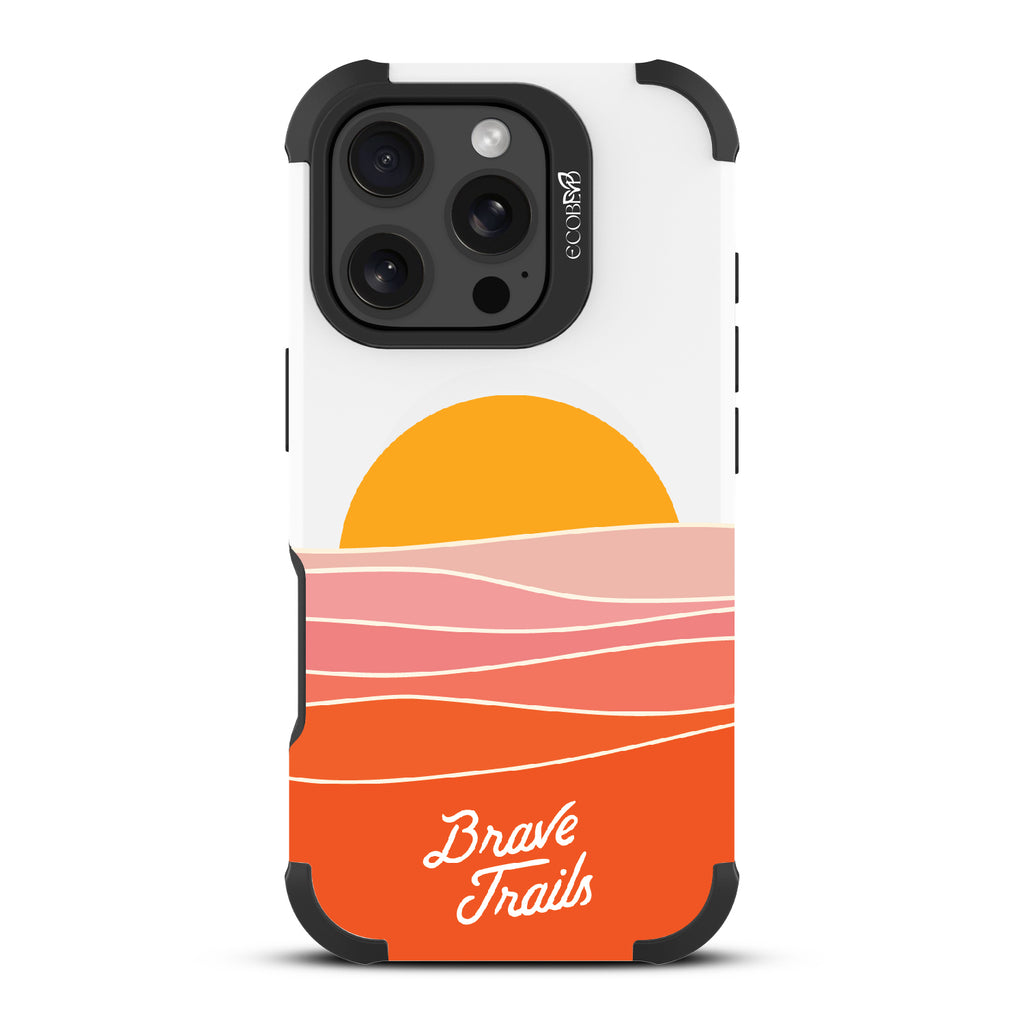 Embrace the radiance of a new beginning with the Enlightened x Brave Trails Reforge rugged iPhone 16 Pro phone case. As the sun emerges from the horizon, casting a warm and vibrant glow over a serene hillside, you're reminded of the transformative power of embracing your true self. With the Brave Trails logo nestled in the bottom center, this design encapsulates the essence of enlightenment and self-discovery. Let your phone case serve as a constant reminder to radiate positivity, embrace your inner light, and illuminate the world with your unique brilliance.
