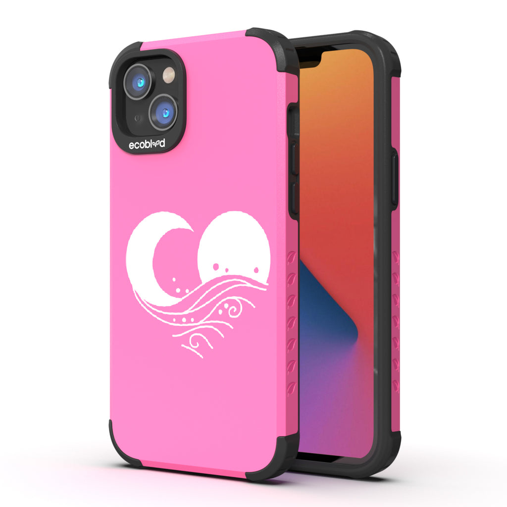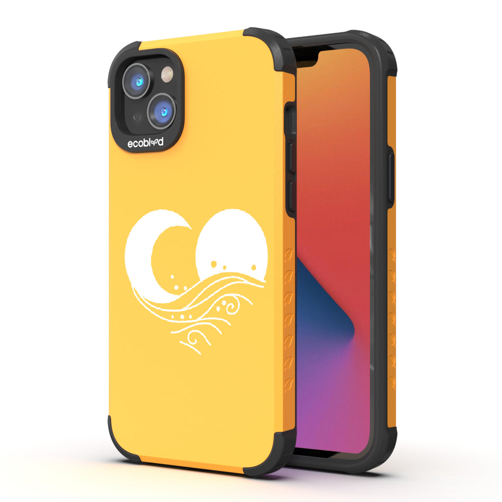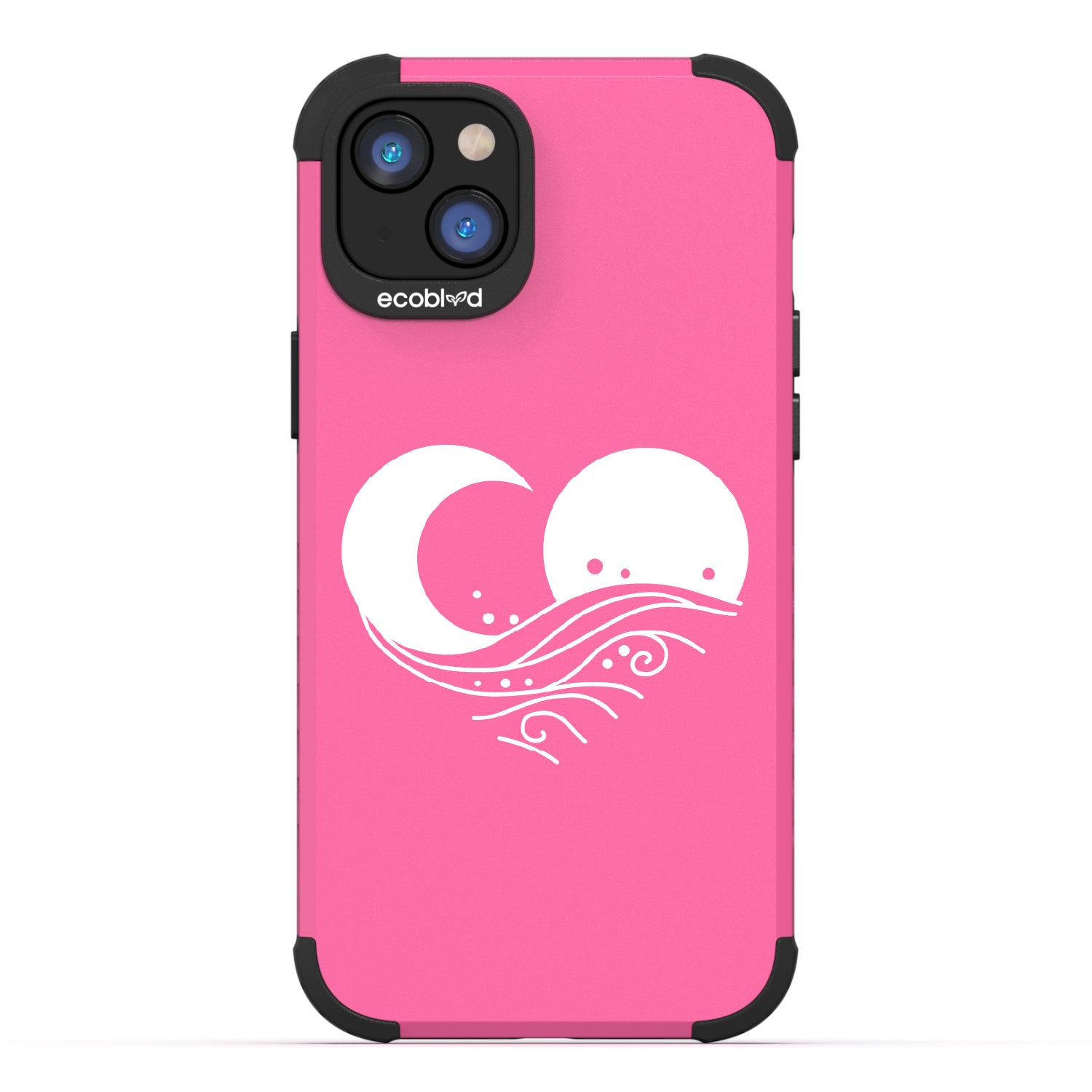 A perfect balance between light and dark, day and night, keeps the Eternal Wave design on our Mojave rugged and compostable iPhone 14 Plus case going and covers your phone with complete harmony as they come together, forming a heart across five vibrant colors: Midnight Black, Cascade Blue, Foliage Green, Illuminating Yellow, and Wildflower Pink.