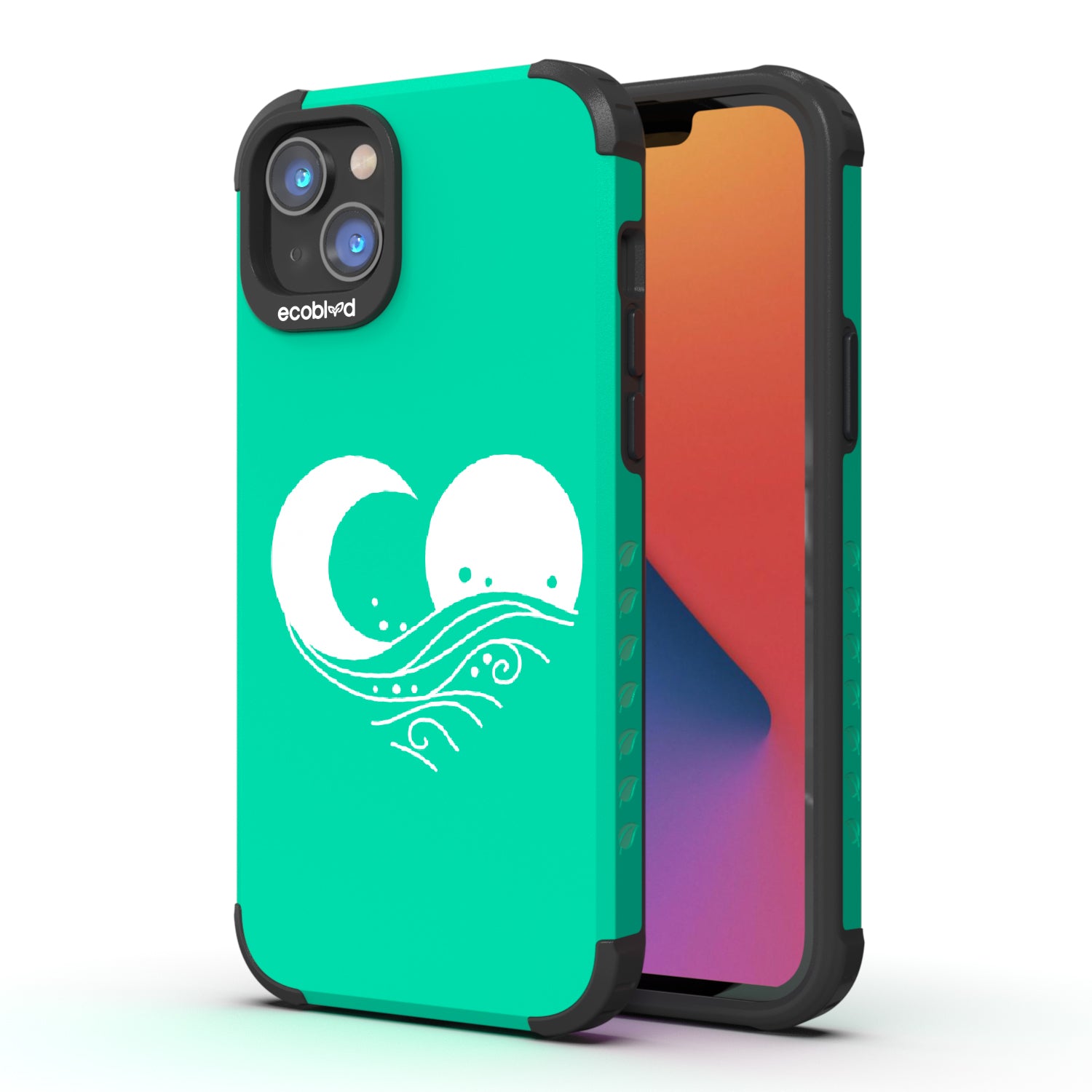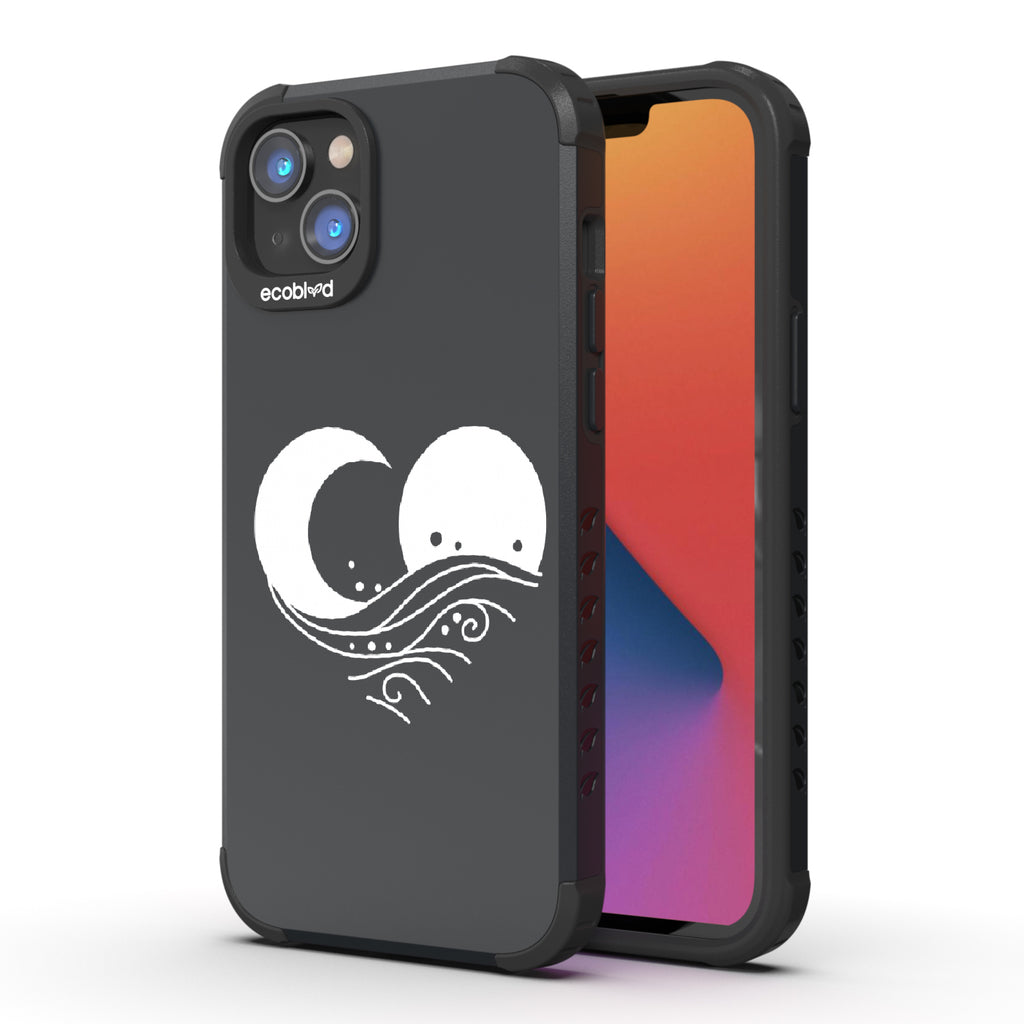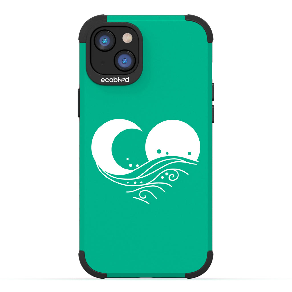A perfect balance between light and dark, day and night, keeps the Eternal Wave design on our Mojave rugged and compostable iPhone 14 Plus case going and covers your phone with complete harmony as they come together, forming a heart across five vibrant colors: Midnight Black, Cascade Blue, Foliage Green, Illuminating Yellow, and Wildflower Pink.