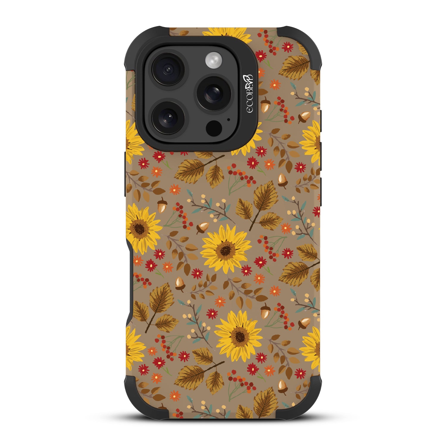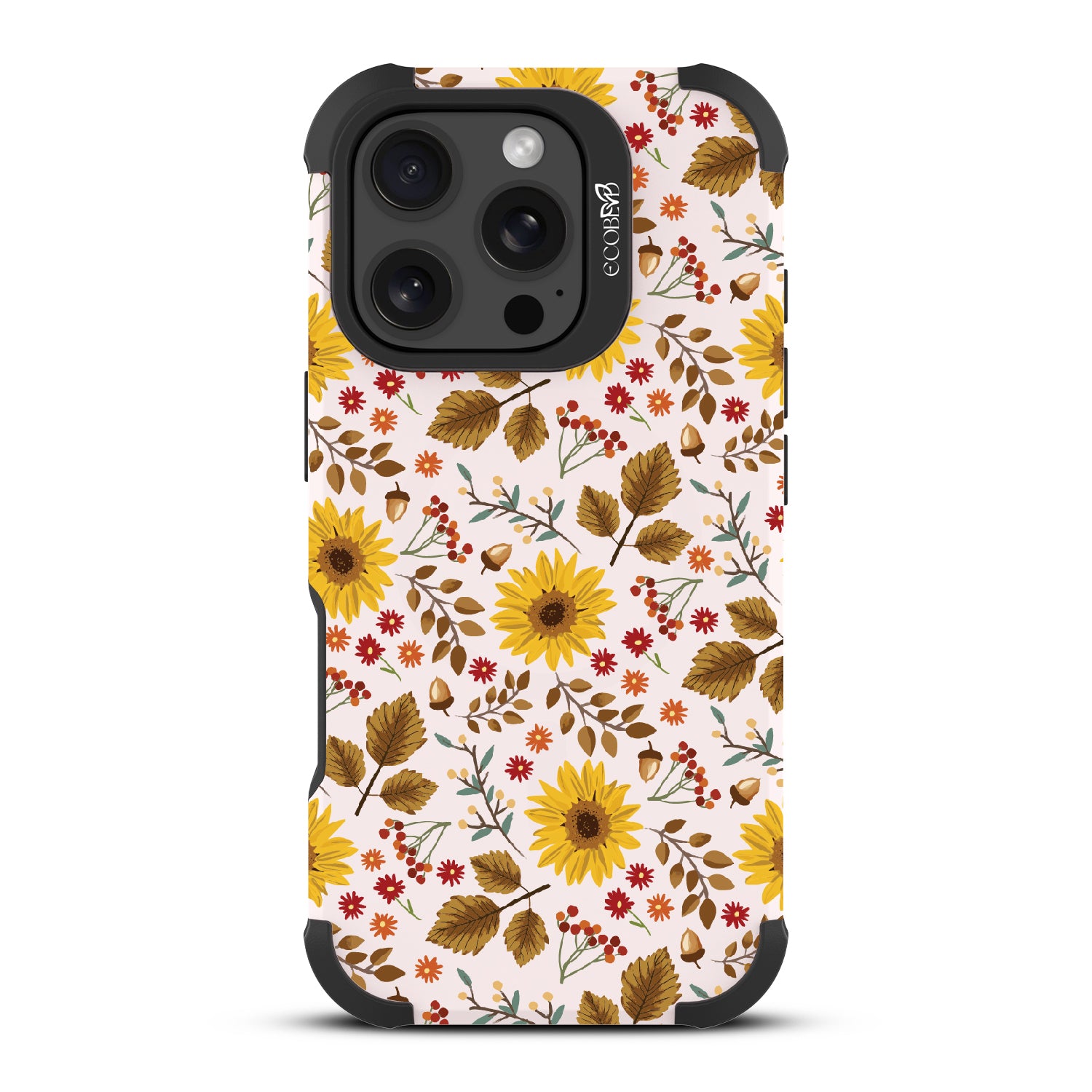 Fall in love with the Fall Florals design on our Reforge rugged iPhone 16 Pro phone case. Sunflowers, marigolds, and chrysanthemums blend together in a garden of earthly delights that brings a burst of inviting colors to your phone. Step into the new season with this refreshing, crisp look.