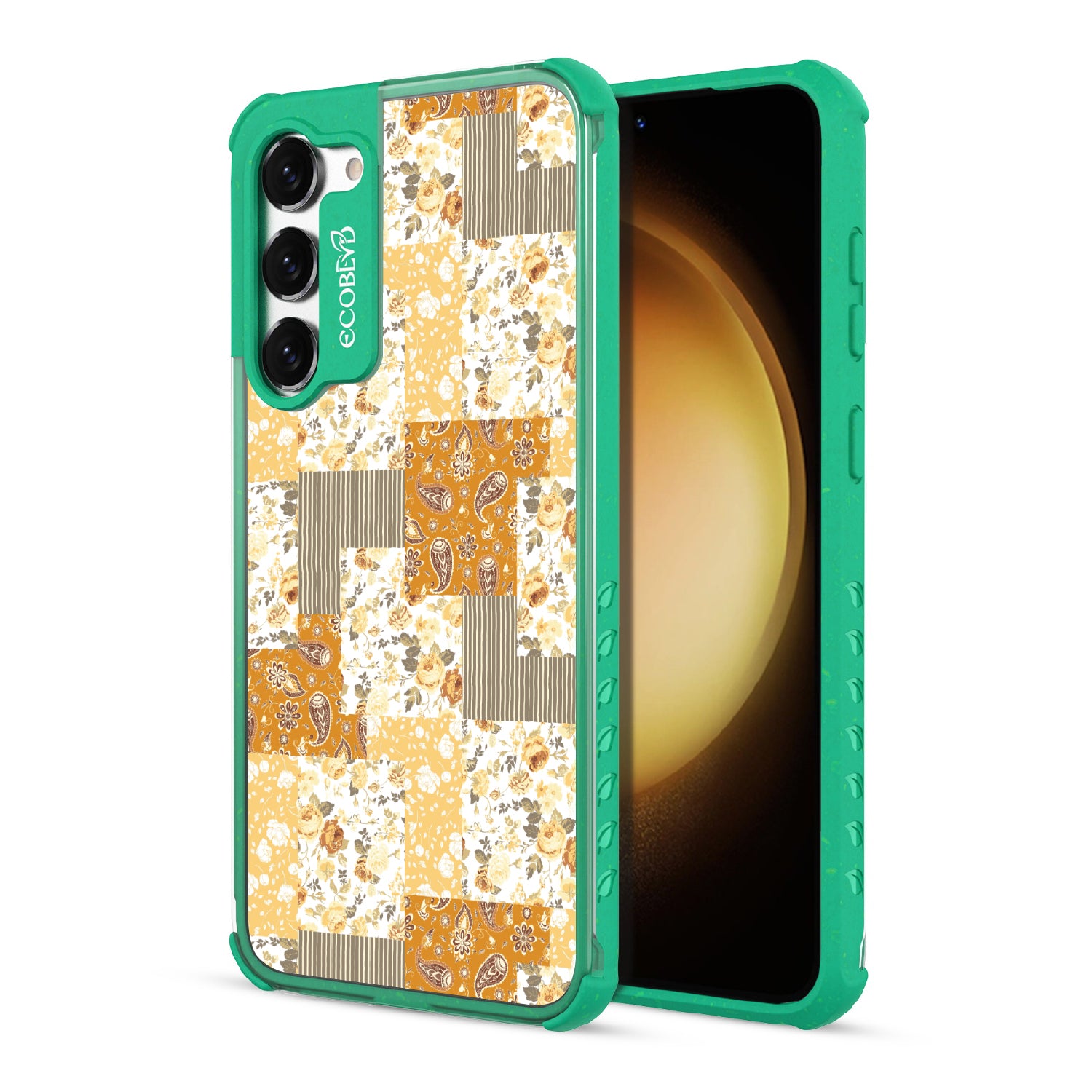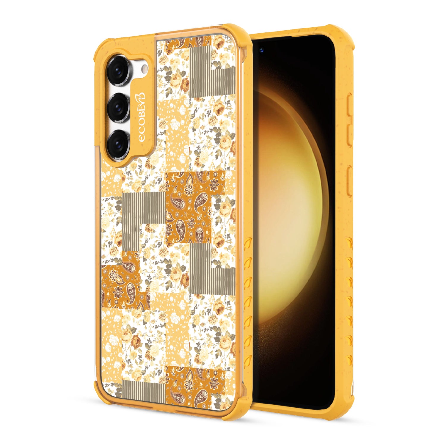 Everything falls into place with the Fall into Place design on our Laguna clear Galaxy S23 Plus cases. Layered with intricate florals, bold stripes, and earthy tones of mustard, cream, and rust, this patchwork mirrors the textured complexity of fall. From the crisp rustle of leaves underfoot to the soft warmth of layered knits, this design reflects autumn’s depth and richness at every turn.