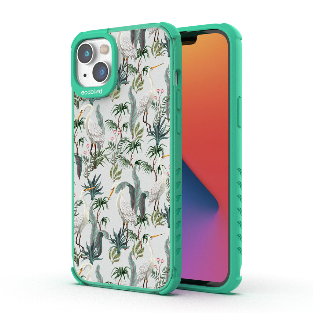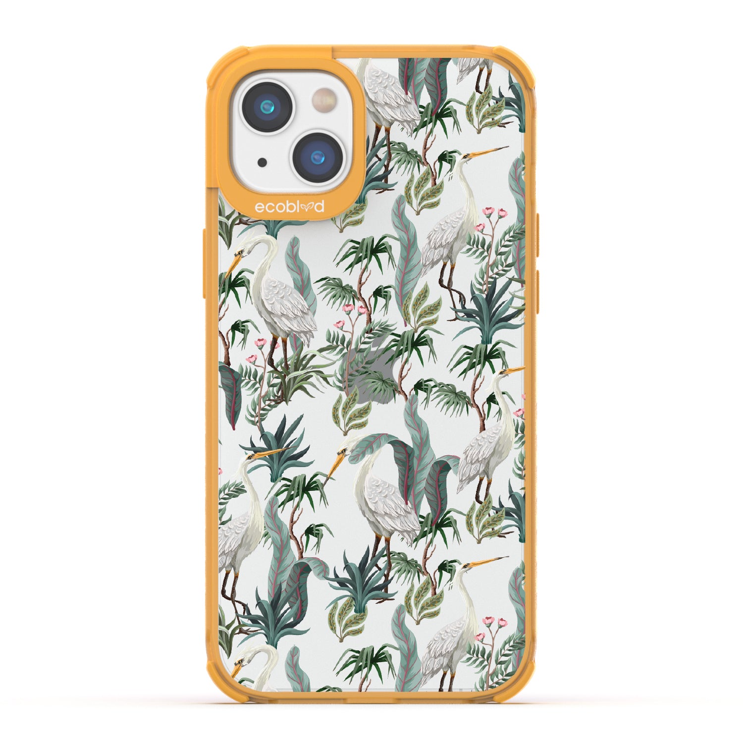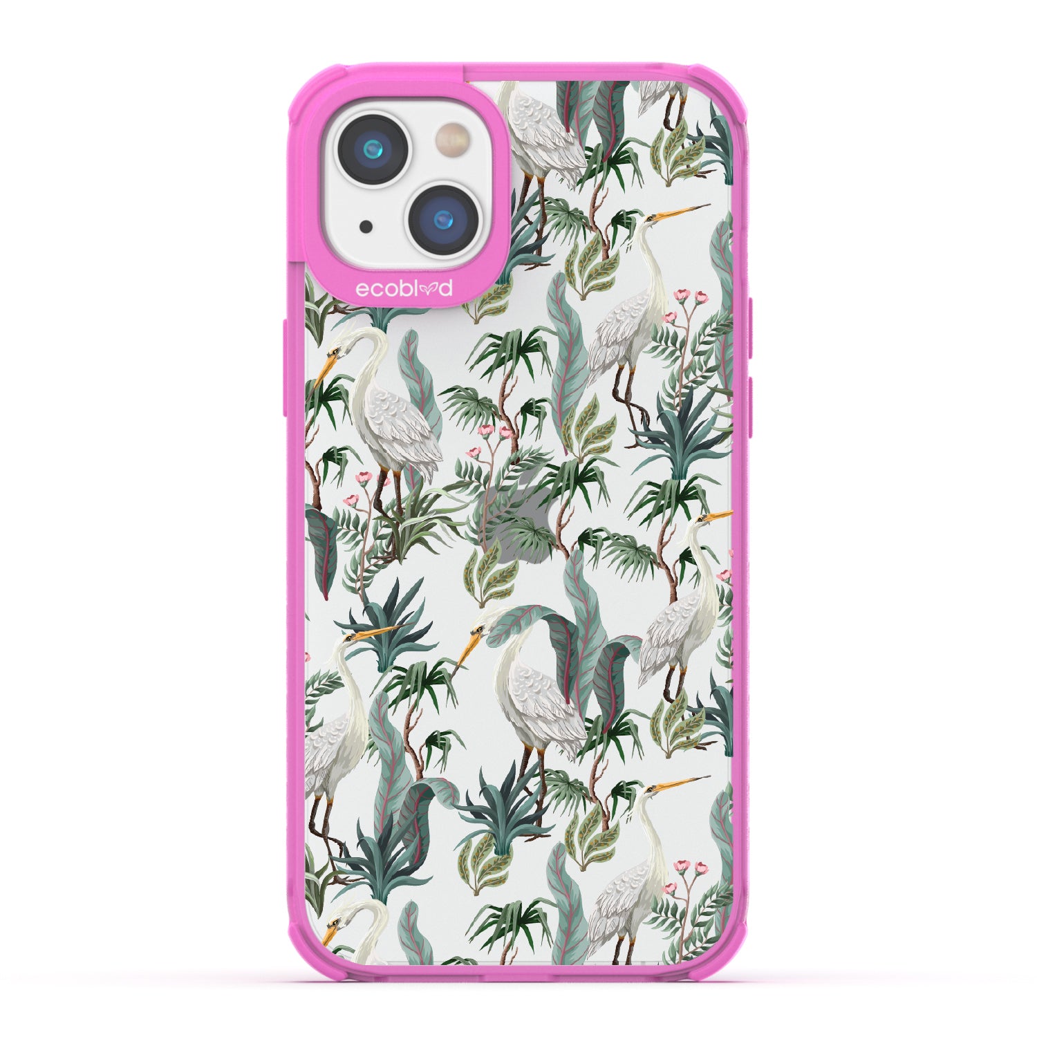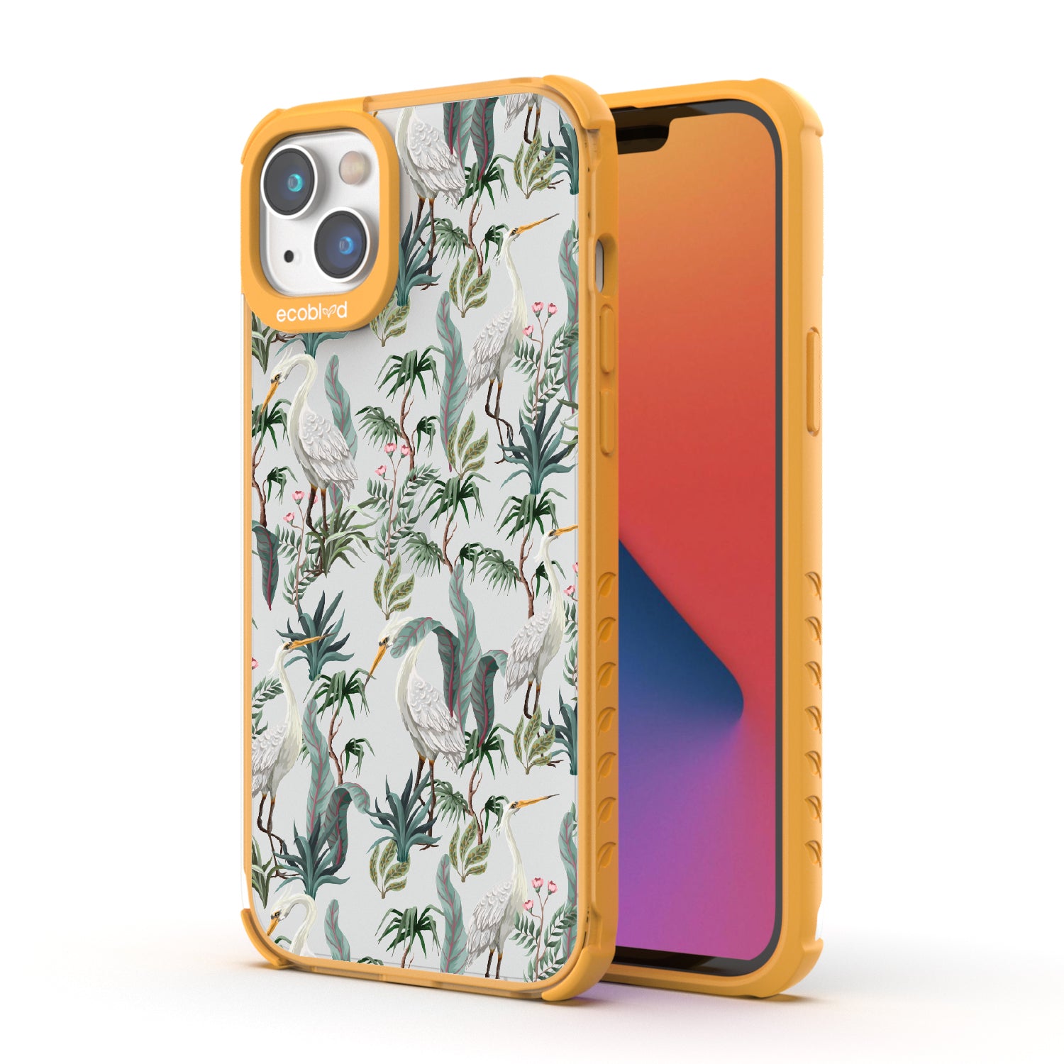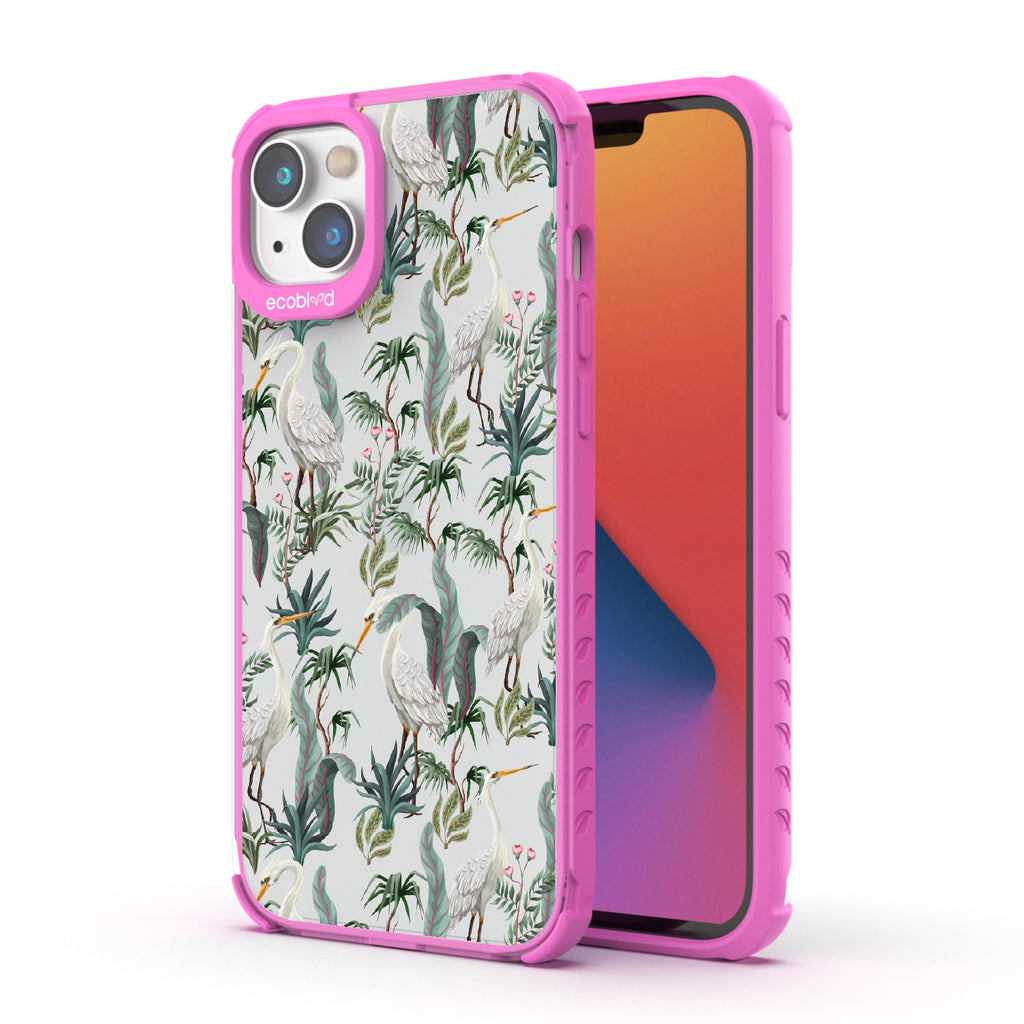 Embrace the strength and beauty of sticking together with Flock Together, an exclusive design crafted for the Laguna clear iPhone 14 Plus case. Immerse yourself in impeccable style and protection while supporting ocean conservation efforts, as elegant heron birds and intricate peonies come together in perfect harmony. Flock Together is more than just a name, it's a powerful message of togetherness and unity. Featuring elegant heron birds and intricate peonies, this design inspires us to embrace our connections and appreciate the beauty that comes with standing together in five captivating colors: Midnight Black, Cascade Blue, Foilage Green, Illuminating Yellow, and Wildflower Pink. With this phone case, you carry with you a reminder of the beauty that lies within collective strength and the significance of standing together.