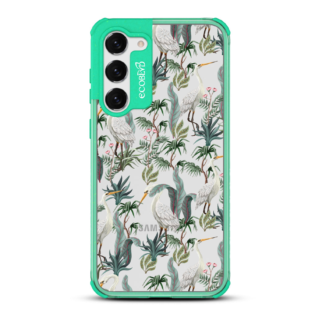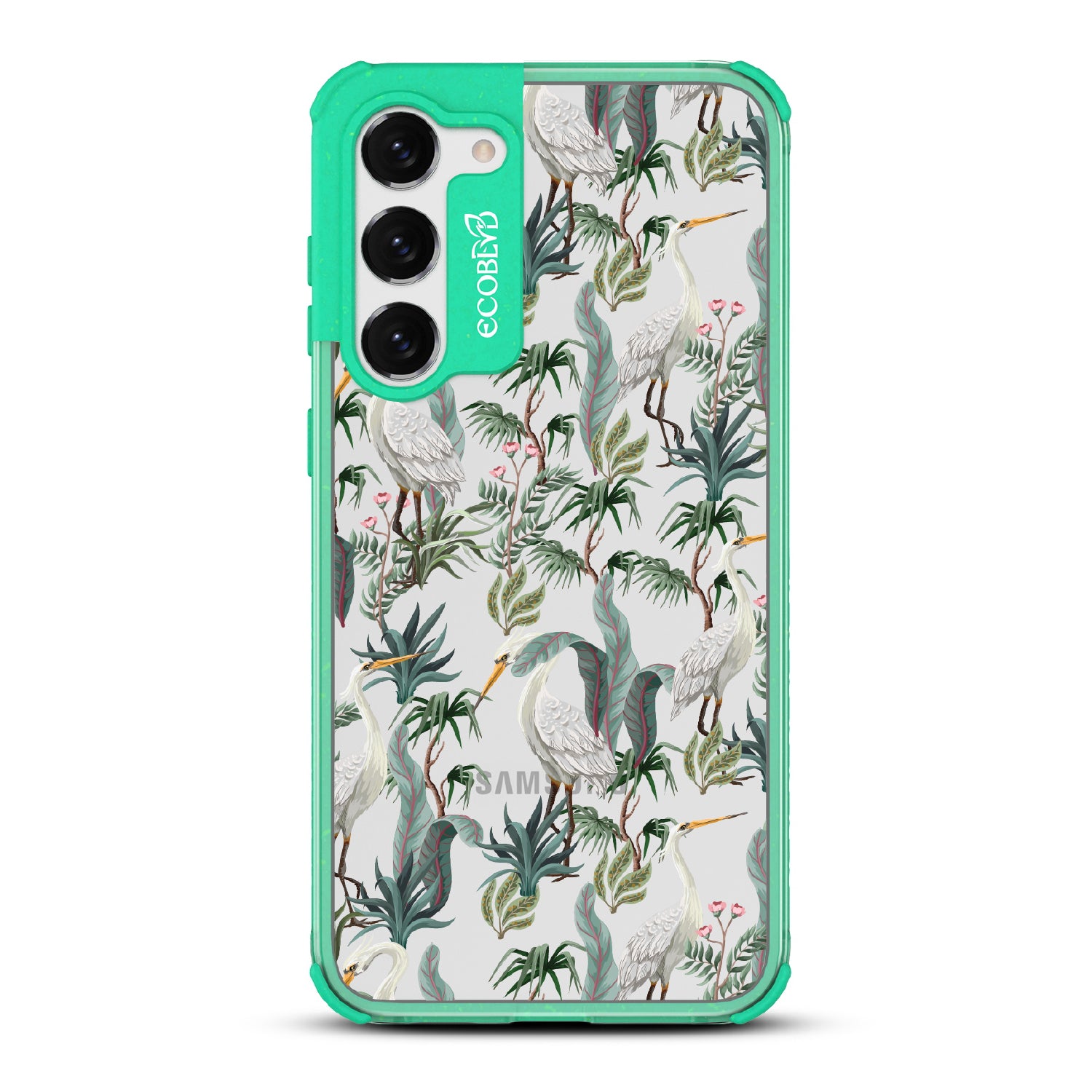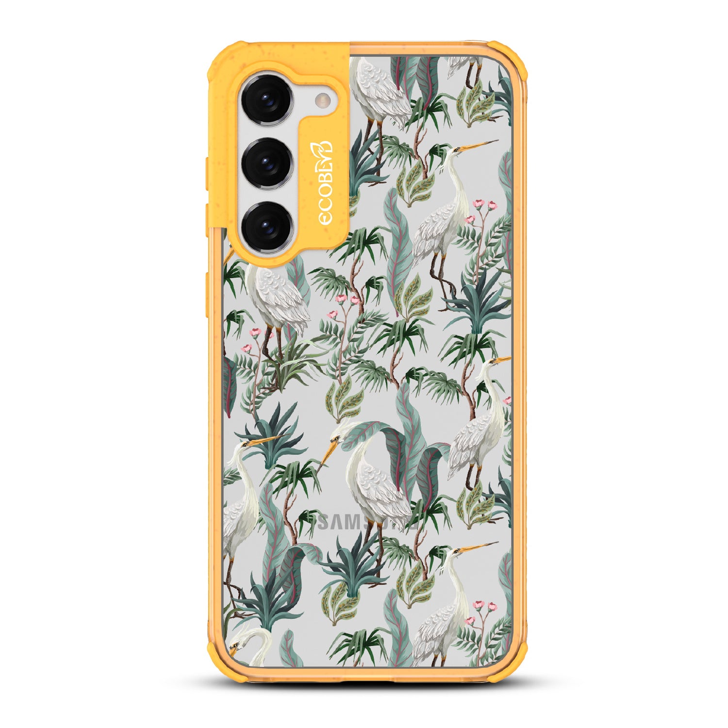 Embrace the strength and beauty of sticking together with Flock Together, an exclusive design crafted for the Laguna clear Galaxy S23 Plus case. Immerse yourself in impeccable style and protection while supporting ocean conservation efforts, as elegant heron birds and intricate peonies come together in perfect harmony. Flock Together is more than just a name, it's a powerful message of togetherness and unity. Featuring elegant heron birds and intricate peonies, this design inspires us to embrace our connections and appreciate the beauty that comes with standing together in five captivating colors: Midnight Black, Cascade Blue, Foilage Green, Illuminating Yellow, and Wildflower Pink. With this phone case, you carry with you a reminder of the beauty that lies within collective strength and the significance of standing together.