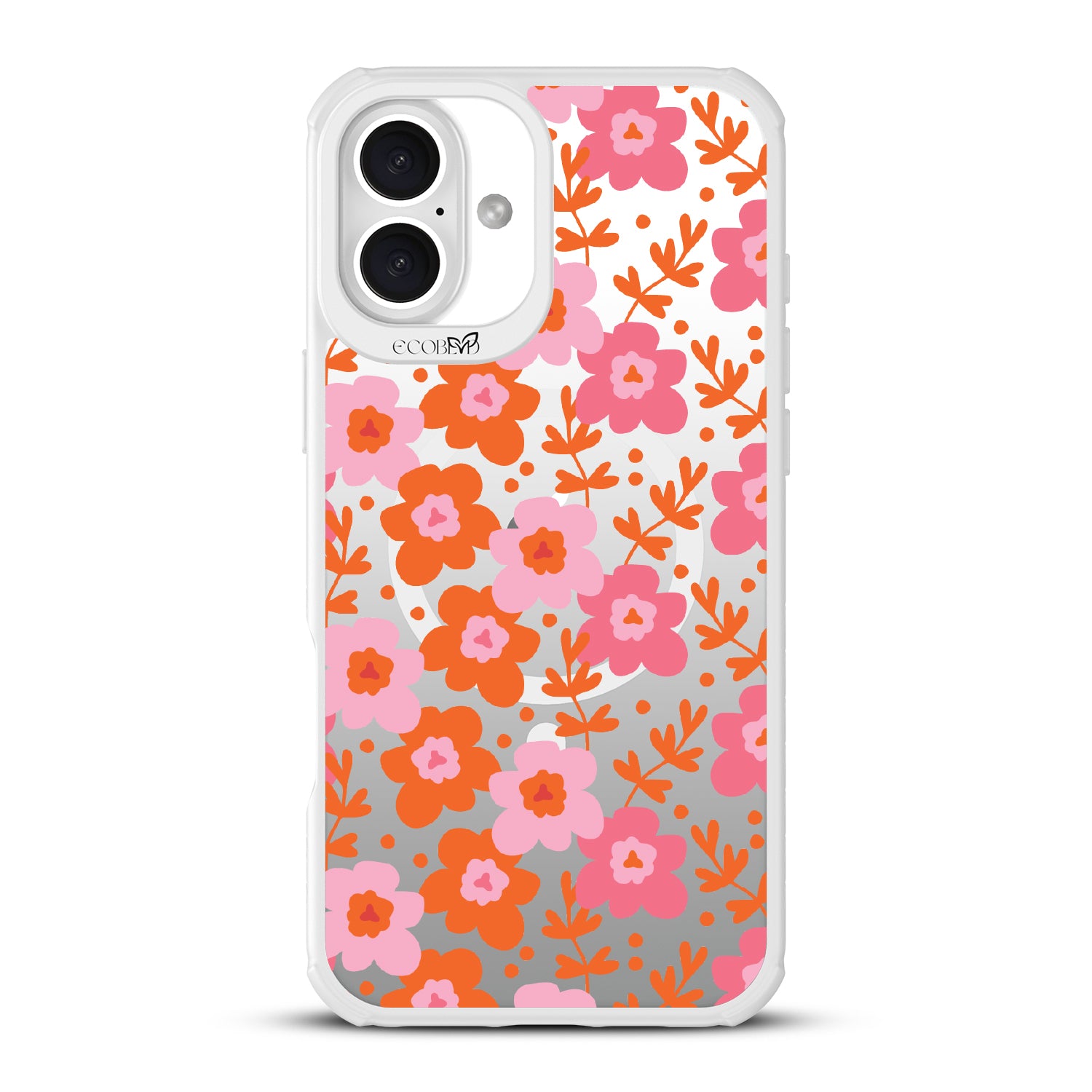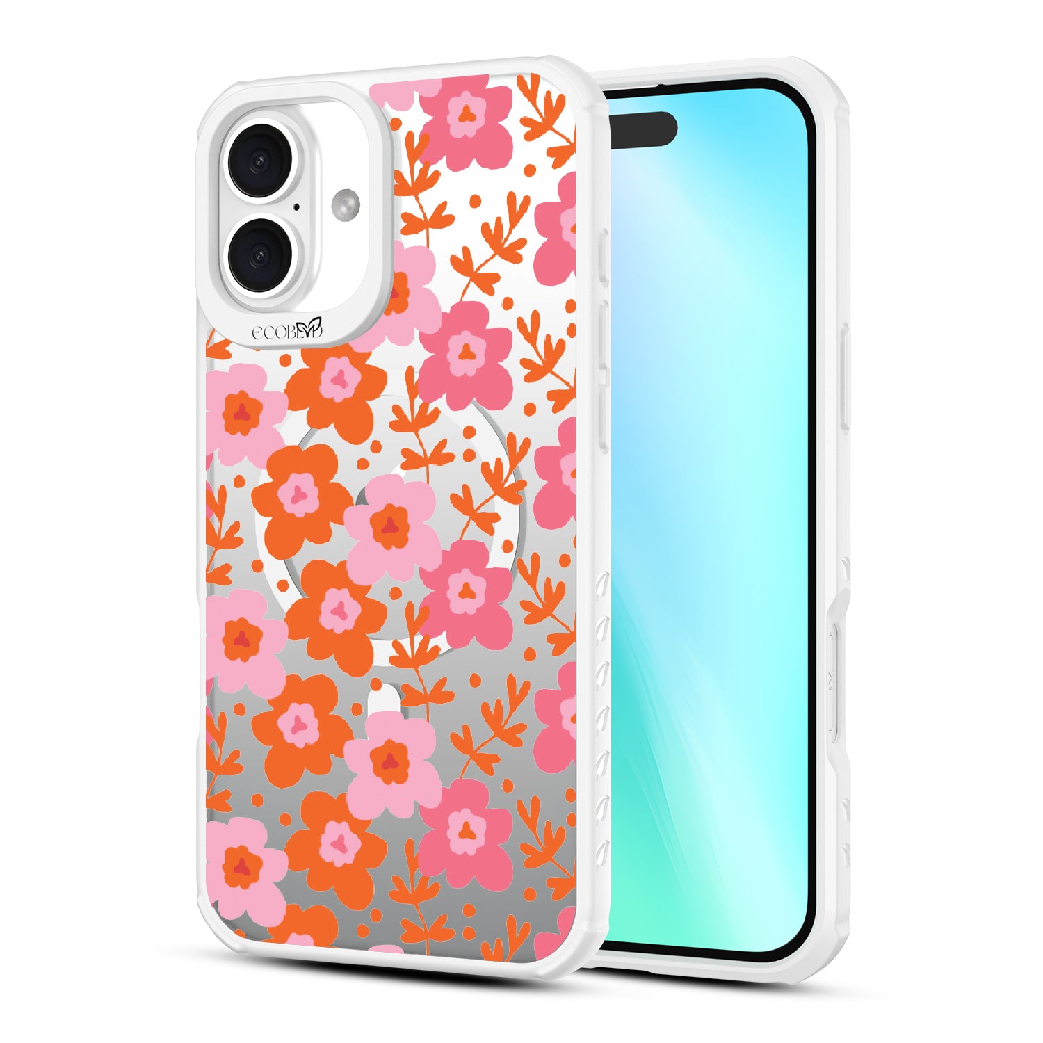 Prepare to make a boom with the explosive energy of spring's freshness with the Floral Burst design on our Revive clear iPhone 16 Plus phone case. Bursting forth with an eruption of lively blooms, each petal dances on the breeze. Whether you find yourself amidst the hustle of a crowded city street or seeking serenity in the calm of nature, let this design keep your days bright.