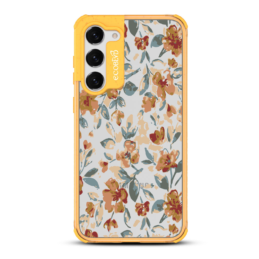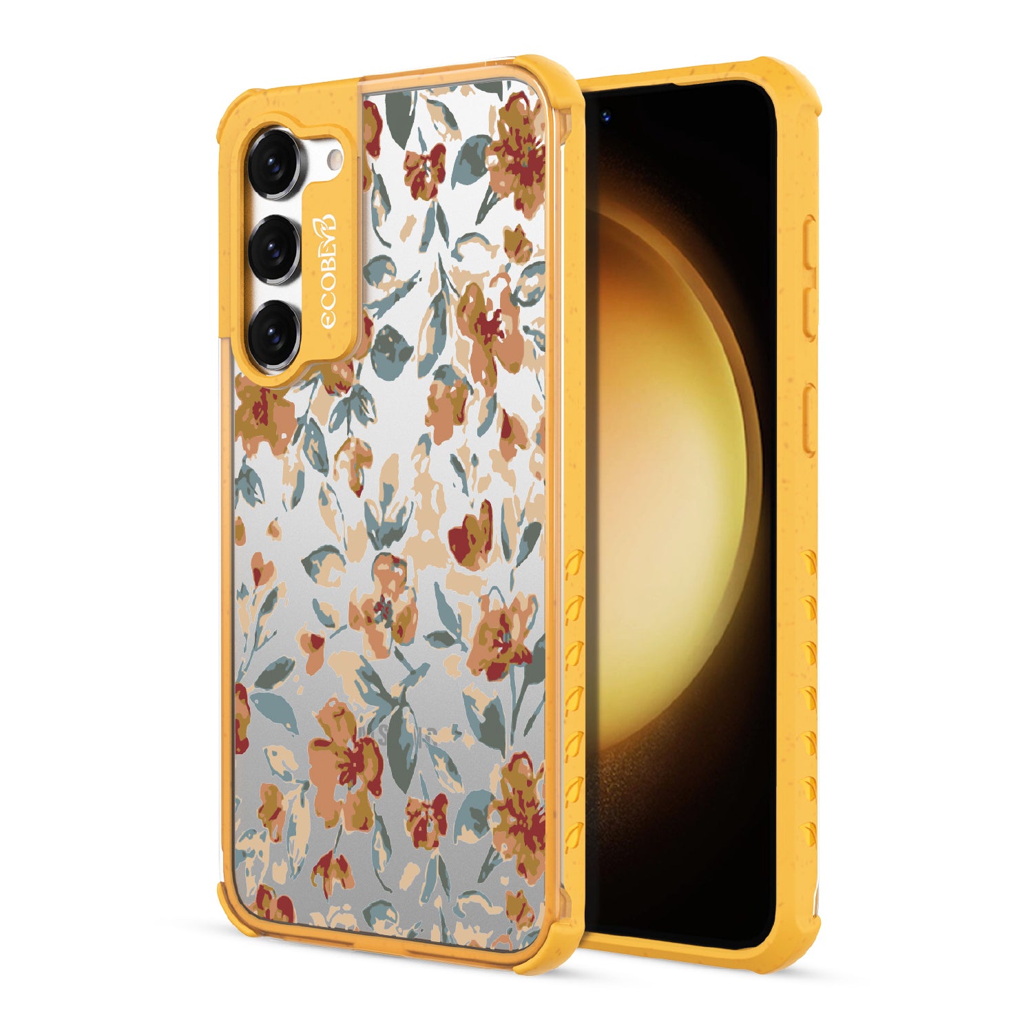 Galaxy S23 Plus cases. Rich golden and rust-brown flowers, hand-painted with autumn’s vibrant hues, remind us that nature’s beauty thrives through every season. Get lost in the colors and comfort of the season, where the warmth of autumn never fades.