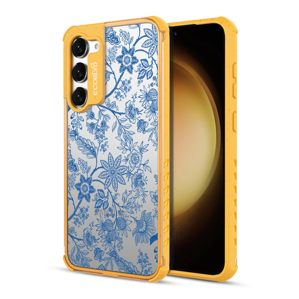 Explore that floral feeling as the Flower Crown design on our Laguna clear Galaxy S23 case brings out your inner sparkle so you can stand beautiful, fierce, and free with the perfect fashion accessory on your phone that's full of care-free, hippy style in five lively color options: Midnight Black, Cascade Blue, Foliage Green, Illuminating Yellow, and Wildflower Pink.
