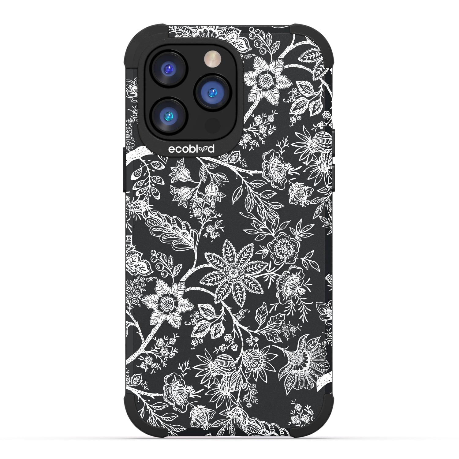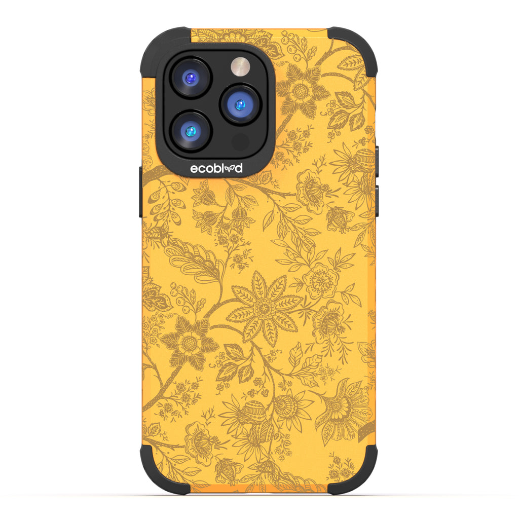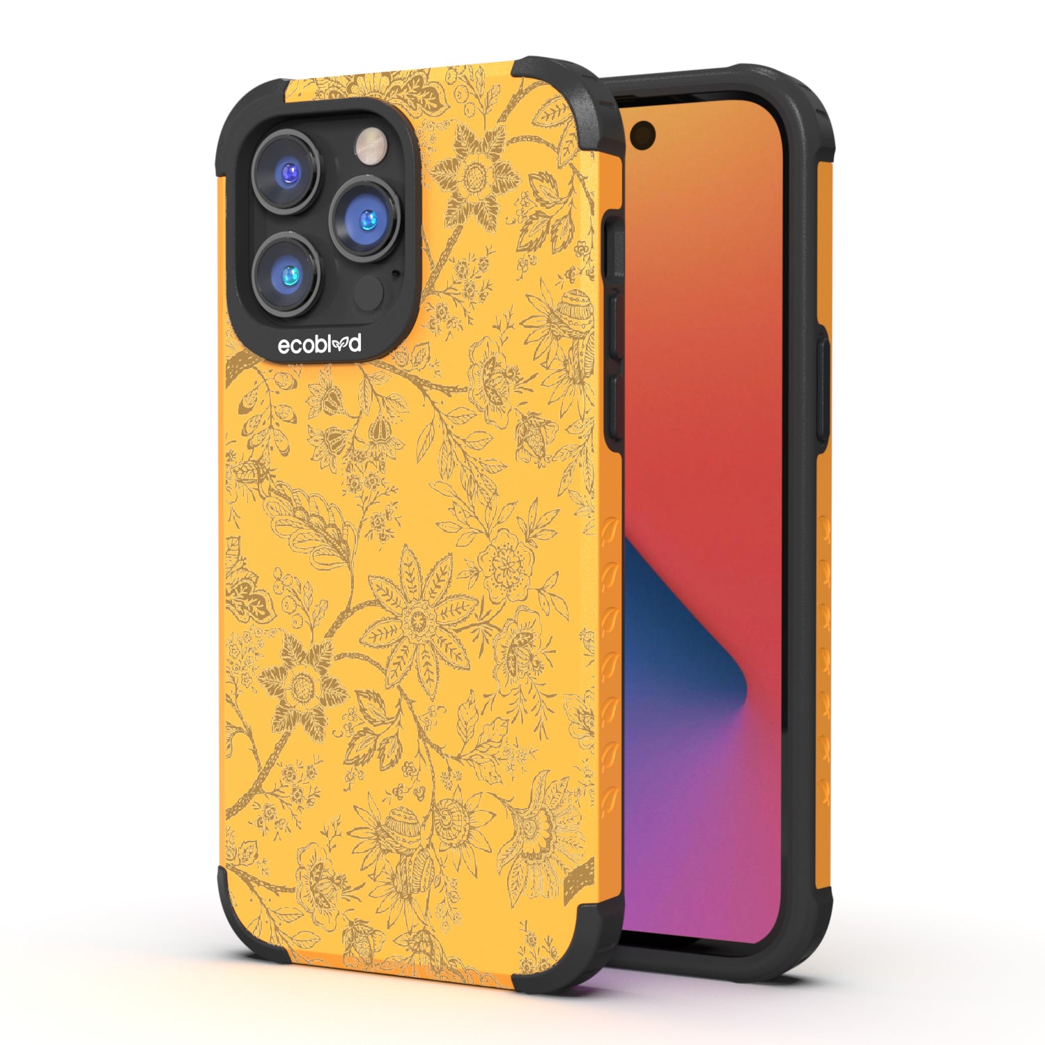 Explore that floral feeling as the Flower Crown design on our Mojave rugged and compostable iPhone 14 Pro Max case brings out your inner sparkle so you can stand beautiful, fierce, and free with the perfect fashion accessory on your phone full of care-free, hippy style. Available in five lively color options: Midnight Black, Cascade Blue, Foliage Green, Illuminating Yellow, and Wildflower Pink.