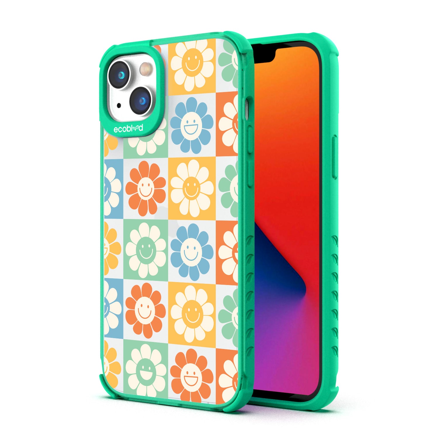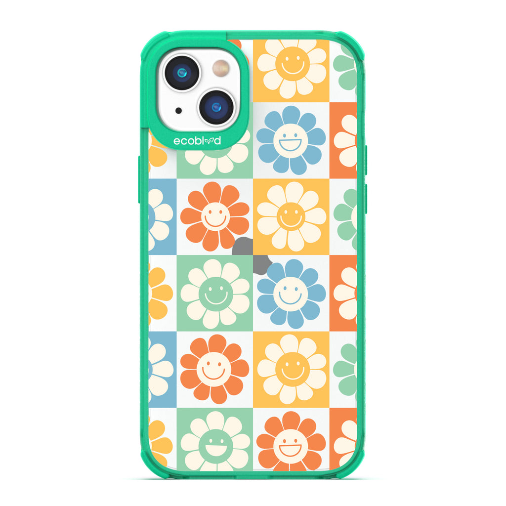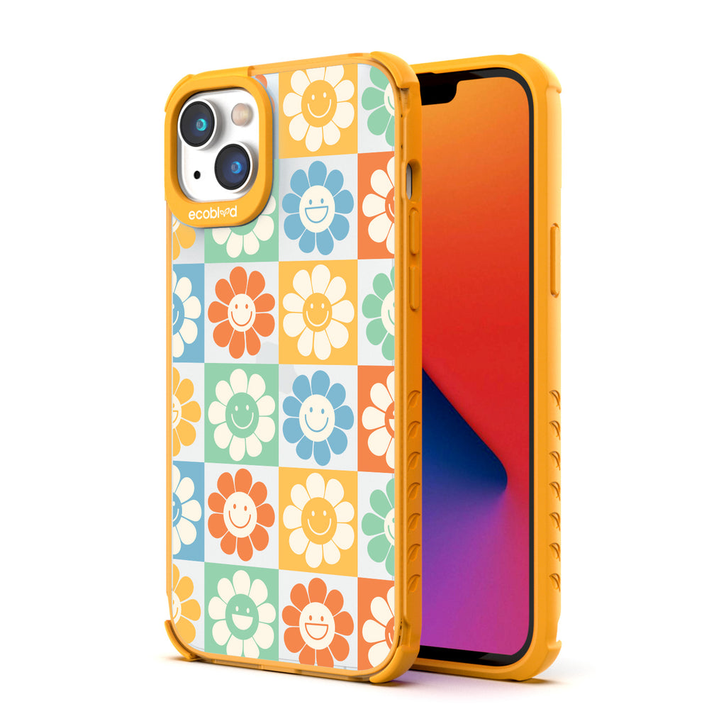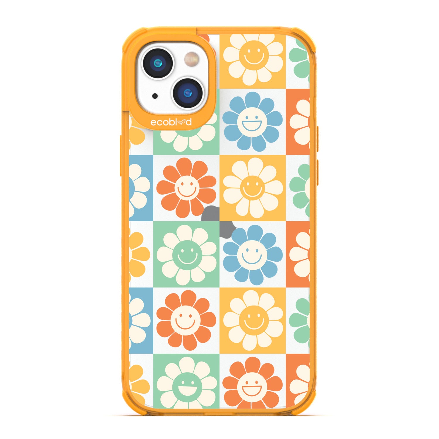 Let the Flower Power design on our Laguna clear iPhone 14 Plus case be your symbol of hope and optimism, with its vibrant cartoon flowers and upbeat smiley faces that embody the spirit of the '70s and remind you to embrace the power of love and positivity in all aspects of your life in four groovy colorways: Midnight Black, Cascade Blue, Foliage Green, and Illuminating Yellow.