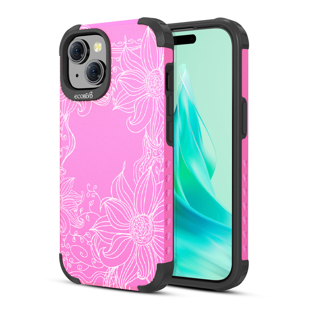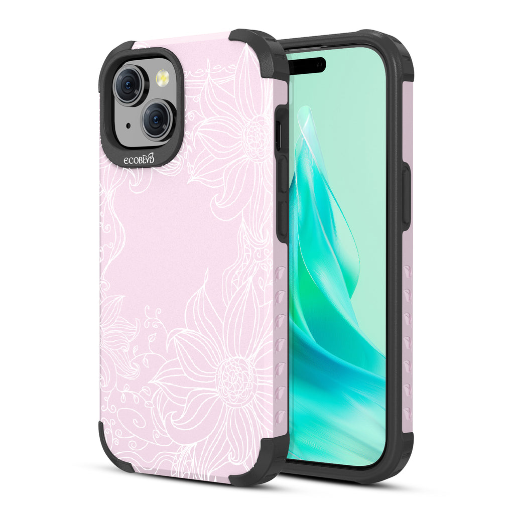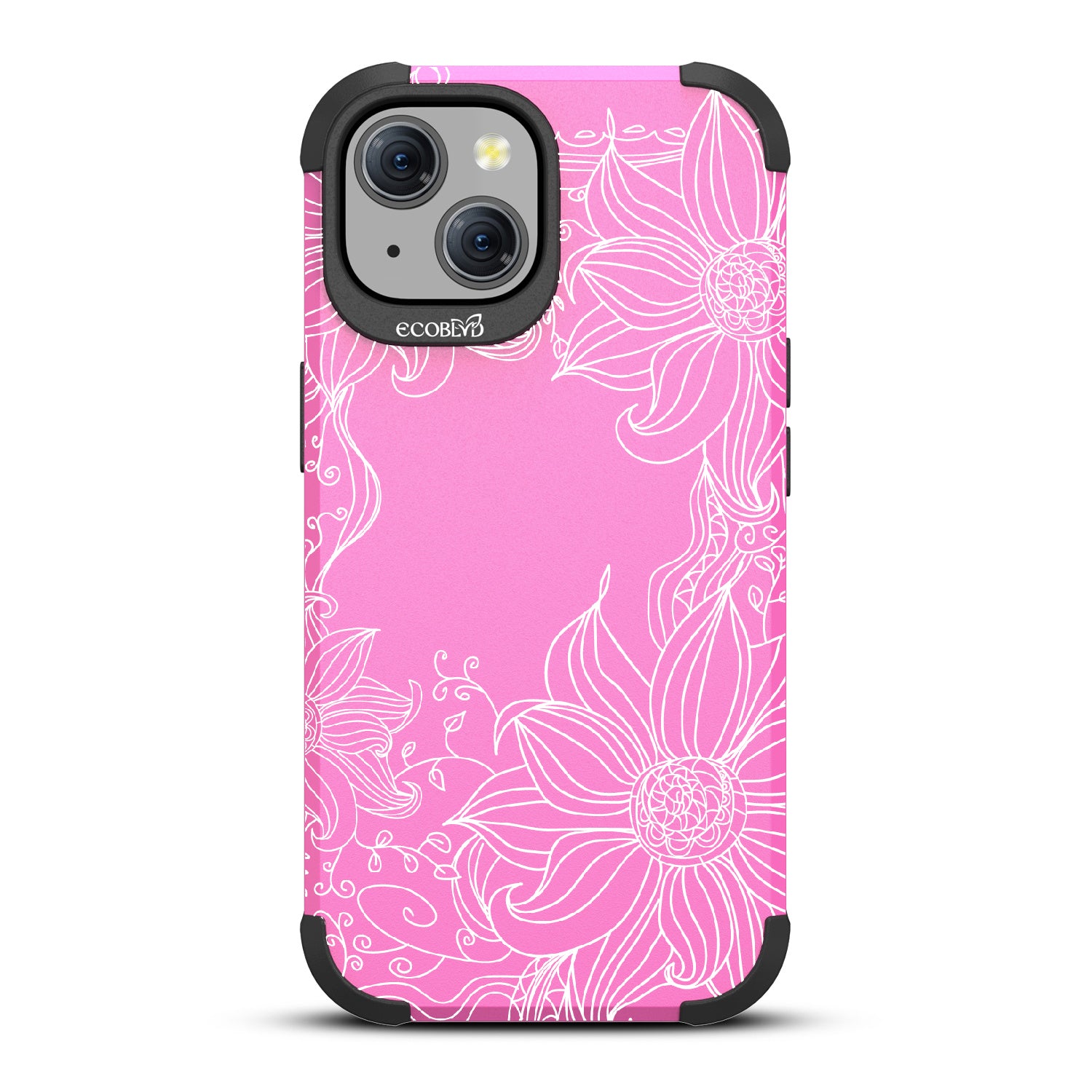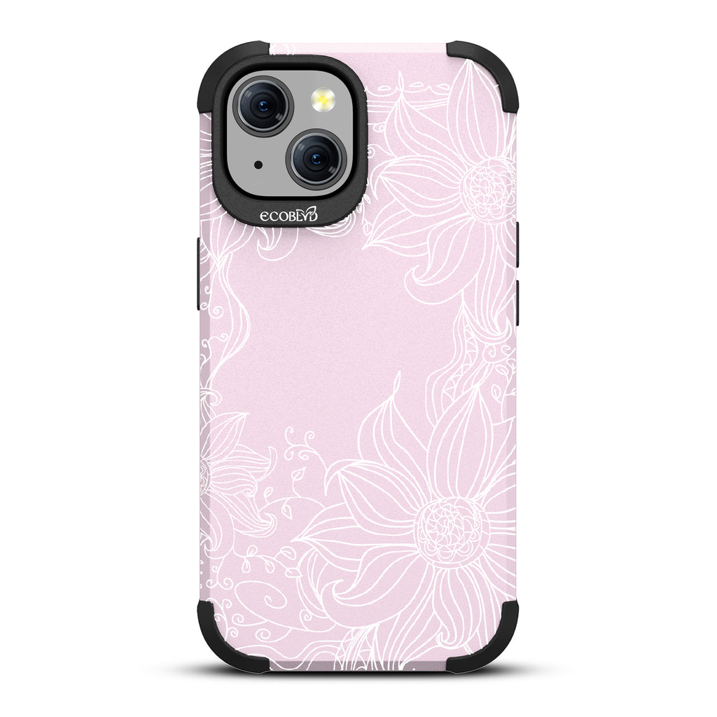 Often all it takes is a subtle outline to truly show the beauty around us, like the striking, yet minimalist Flower Stencil design on our Mojave rugged and compostable iPhone 15 case whose stunning sunflower drawing transforms your style and look into a natural masterpiece. Available in five colorways: Midnight Black, Cascade Blue, Wildflower Pink, Illuminating Yellow, and the exclusive Pastel Lilac!