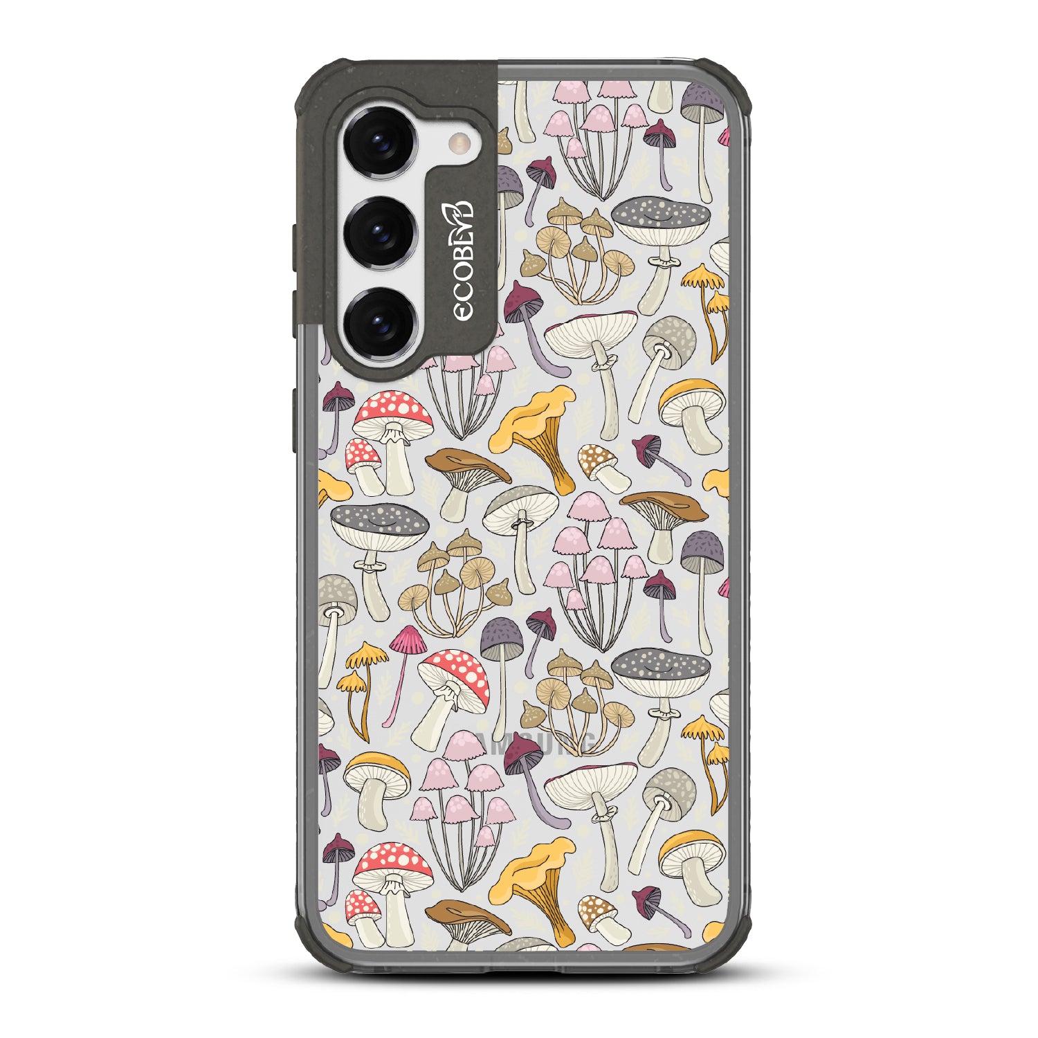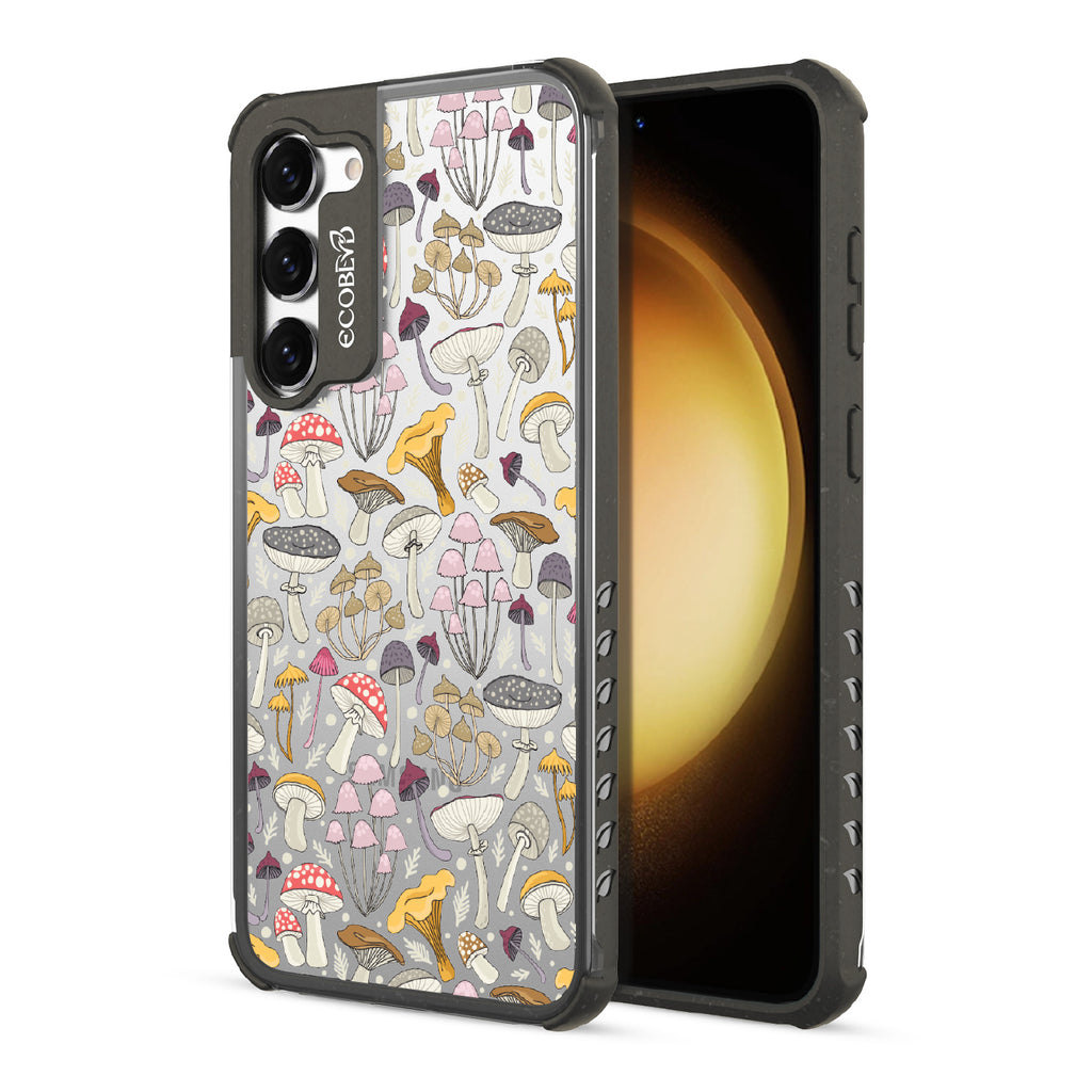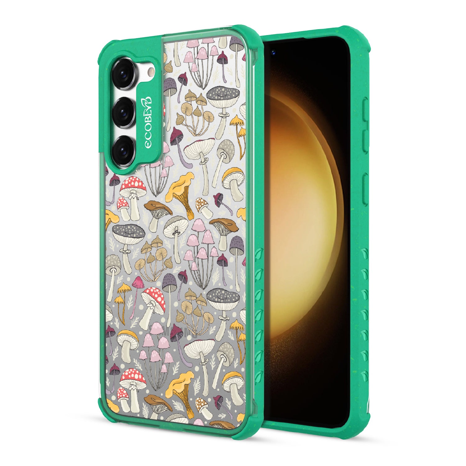 The Foraging design on our Laguna clear Galaxy S23 case encourages you to uncover the hidden beauty of nature, as each toadstool and mushroom conceals a world of wonder just beneath the surface, adding a touch of fun-gi to your phone. Just as each mushroom bring a sense of charm to the forest floor, this playful design infuses your device with a spirit of discovery.