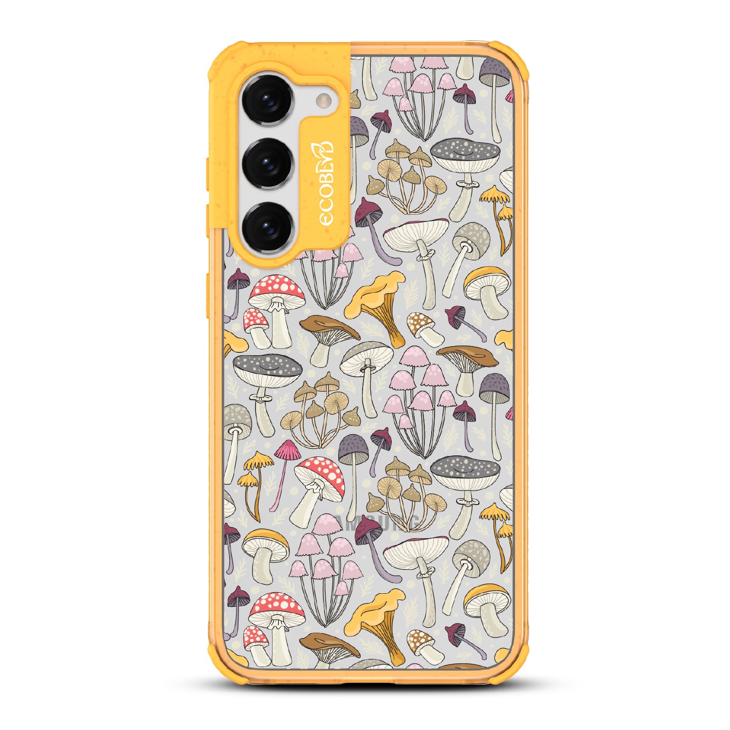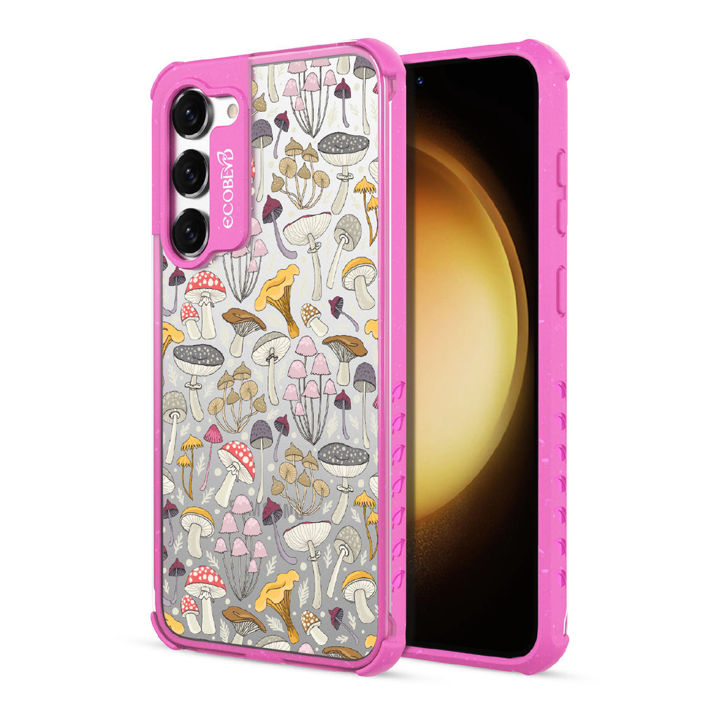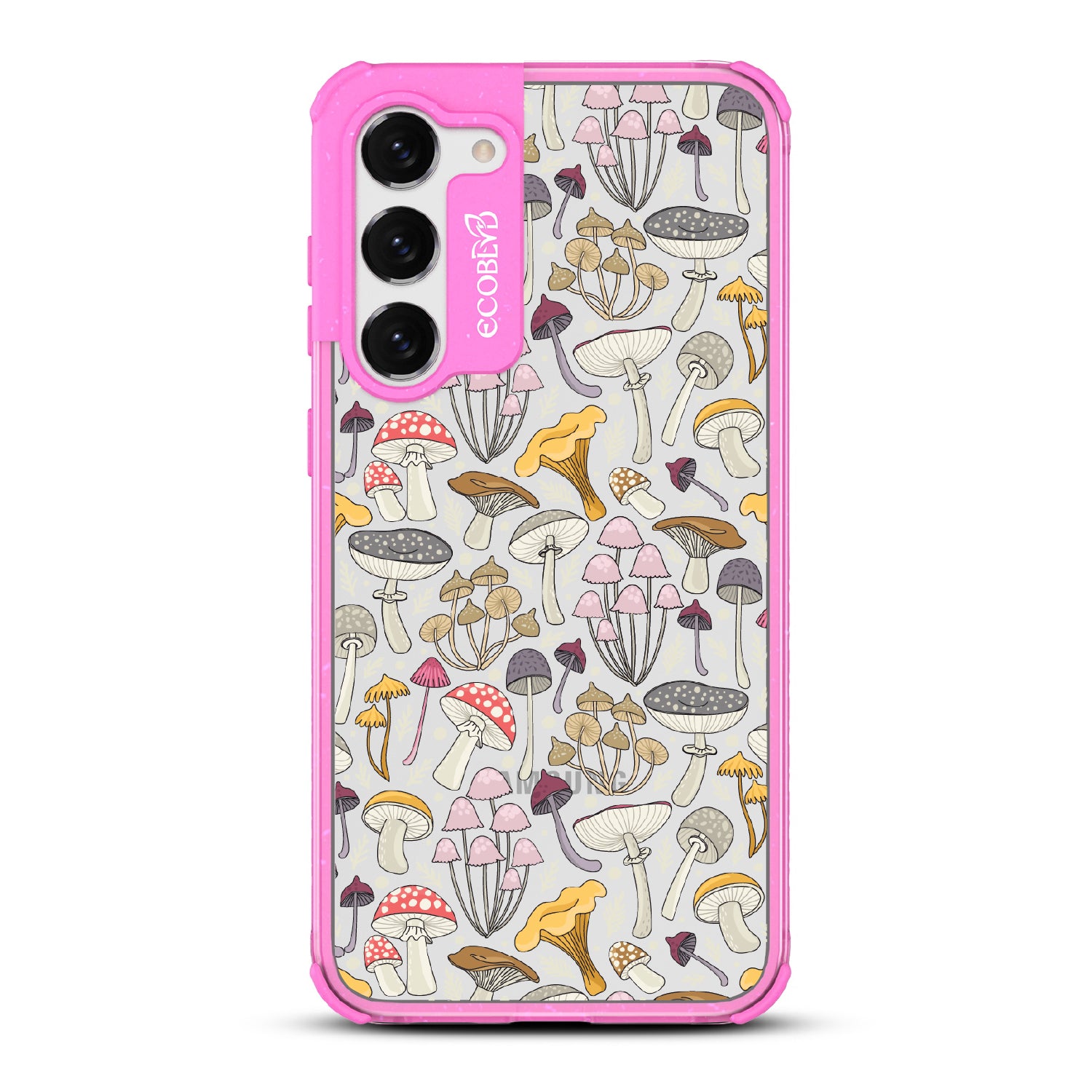 The Foraging design on our Laguna clear Galaxy S23 case encourages you to uncover the hidden beauty of nature, as each toadstool and mushroom conceals a world of wonder just beneath the surface, adding a touch of fun-gi to your phone. Just as each mushroom bring a sense of charm to the forest floor, this playful design infuses your device with a spirit of discovery.