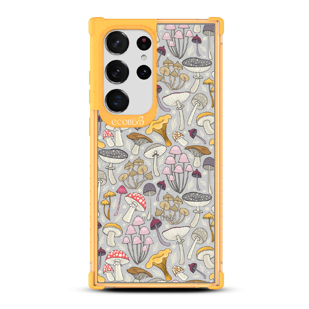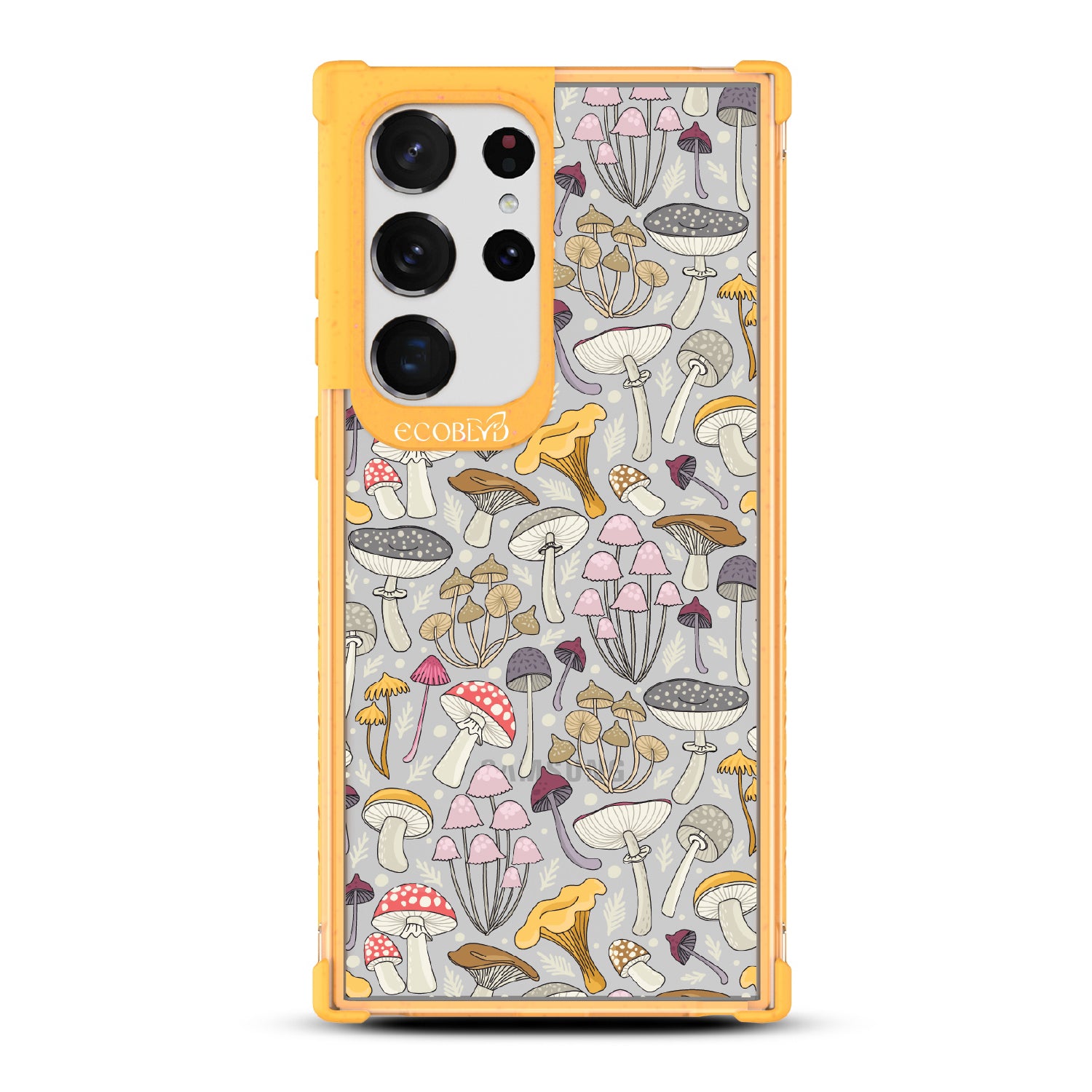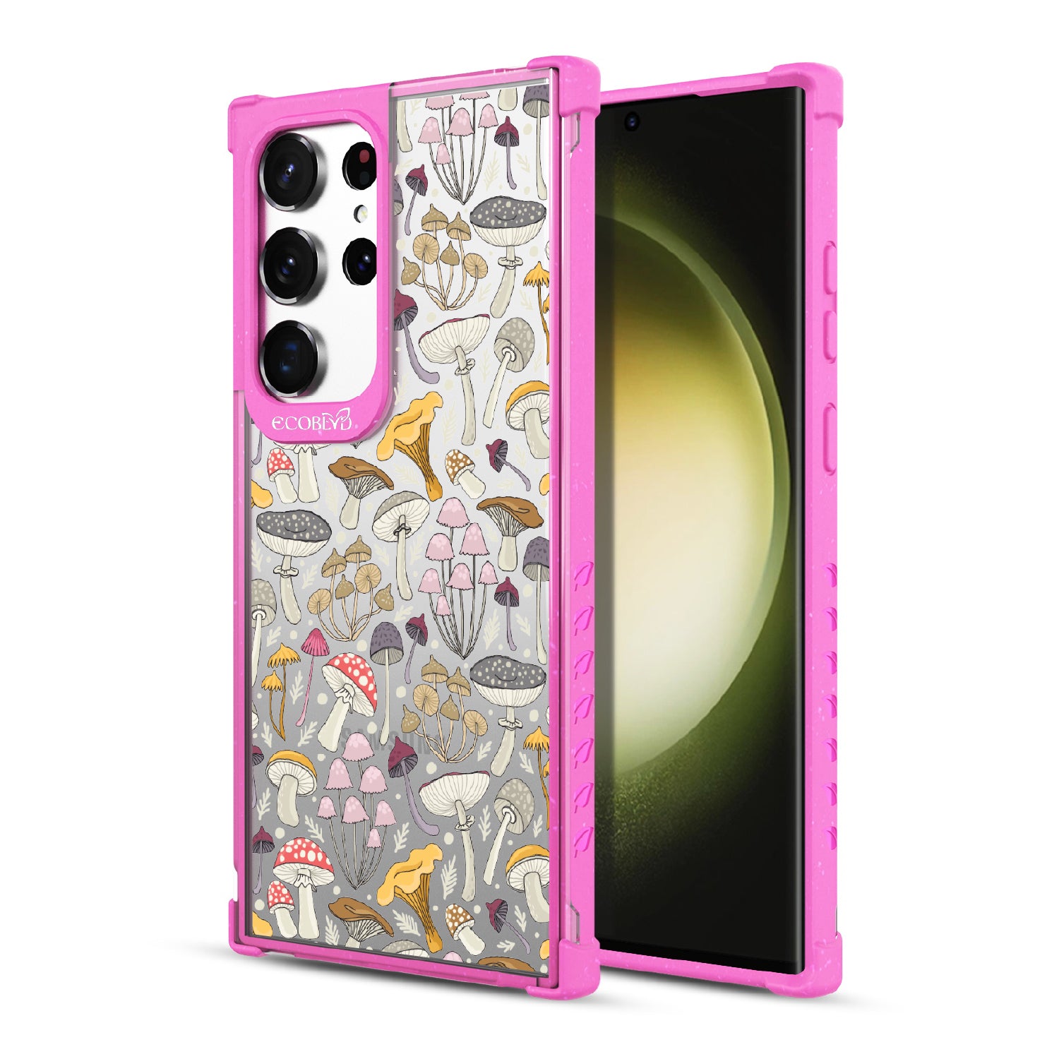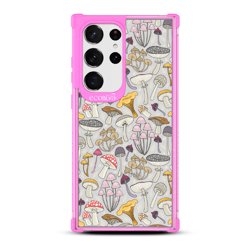The Foraging design on our Laguna clear Galaxy S23 Ultra case encourages you to uncover the hidden beauty of nature, as each toadstool and mushroom conceals a world of wonder just beneath the surface, adding a touch of fun-gi to your phone. Just as each mushroom bring a sense of charm to the forest floor, this playful design infuses your device with a spirit of discovery.