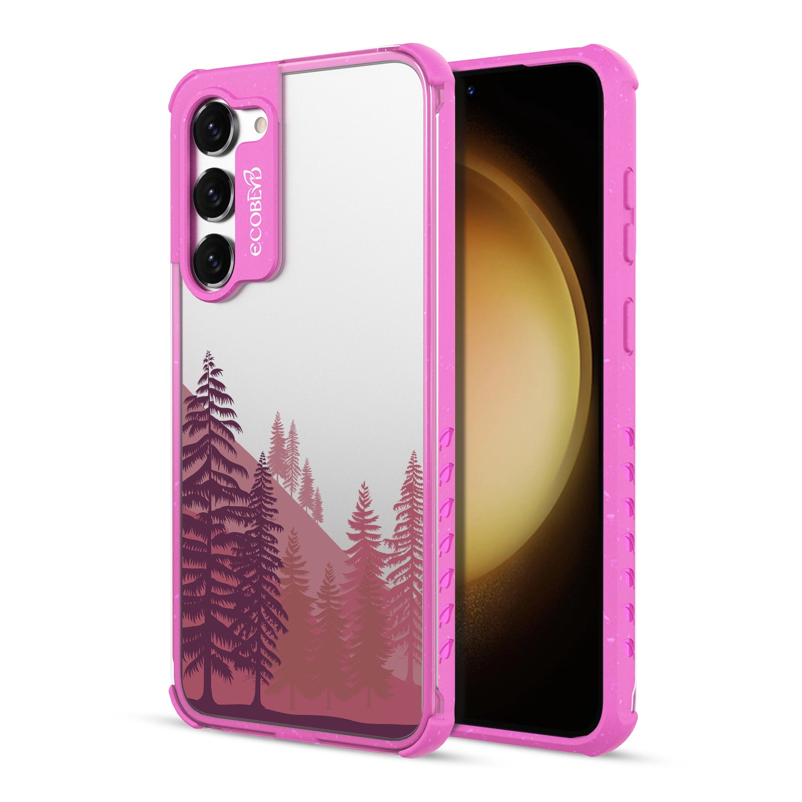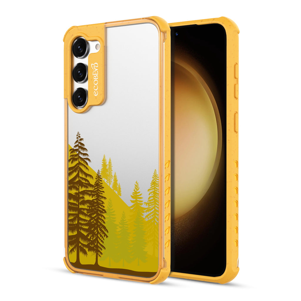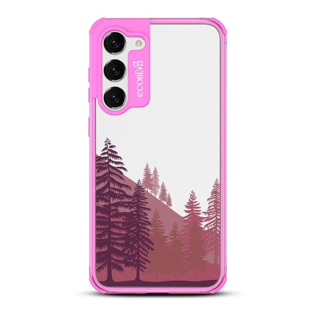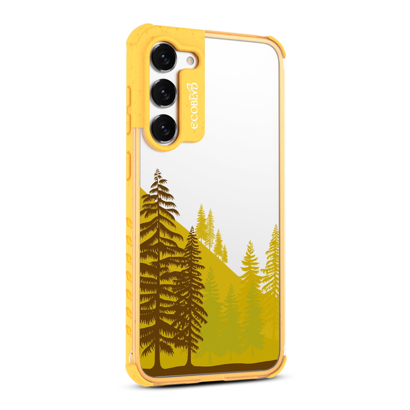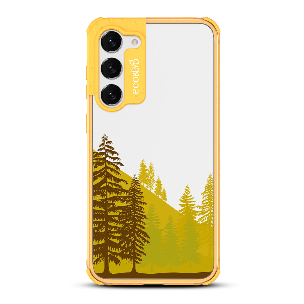 Get dialed into the wonder of nature as the Forest design on our Laguna clear Galaxy S23 case surrounds your phone with a lush forest tree-line landscape of fir trees that lets you bring the great outdoors anywhere in five vibrant colors: Midnight Black, Cascade Blue, Foliage Green, Illuminating Yellow, and Wildflower Pink.