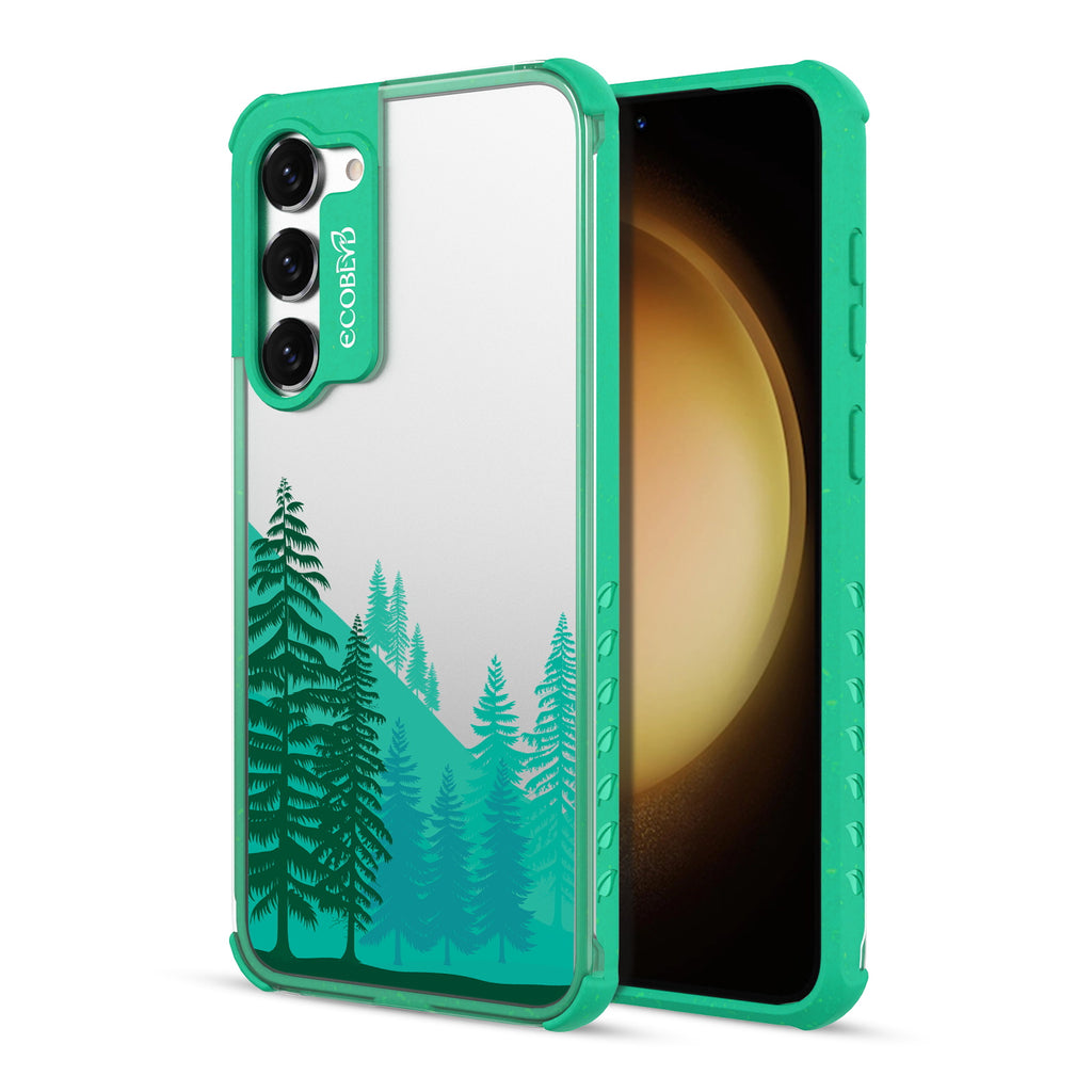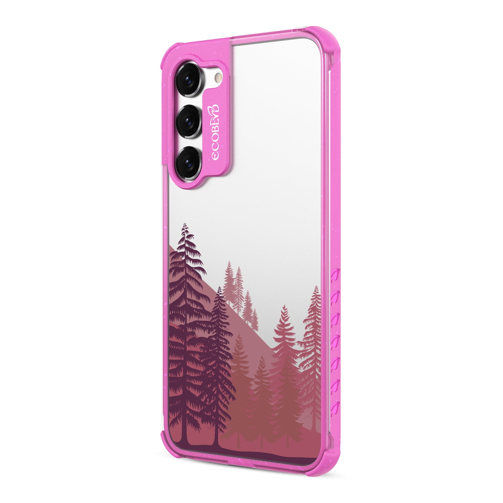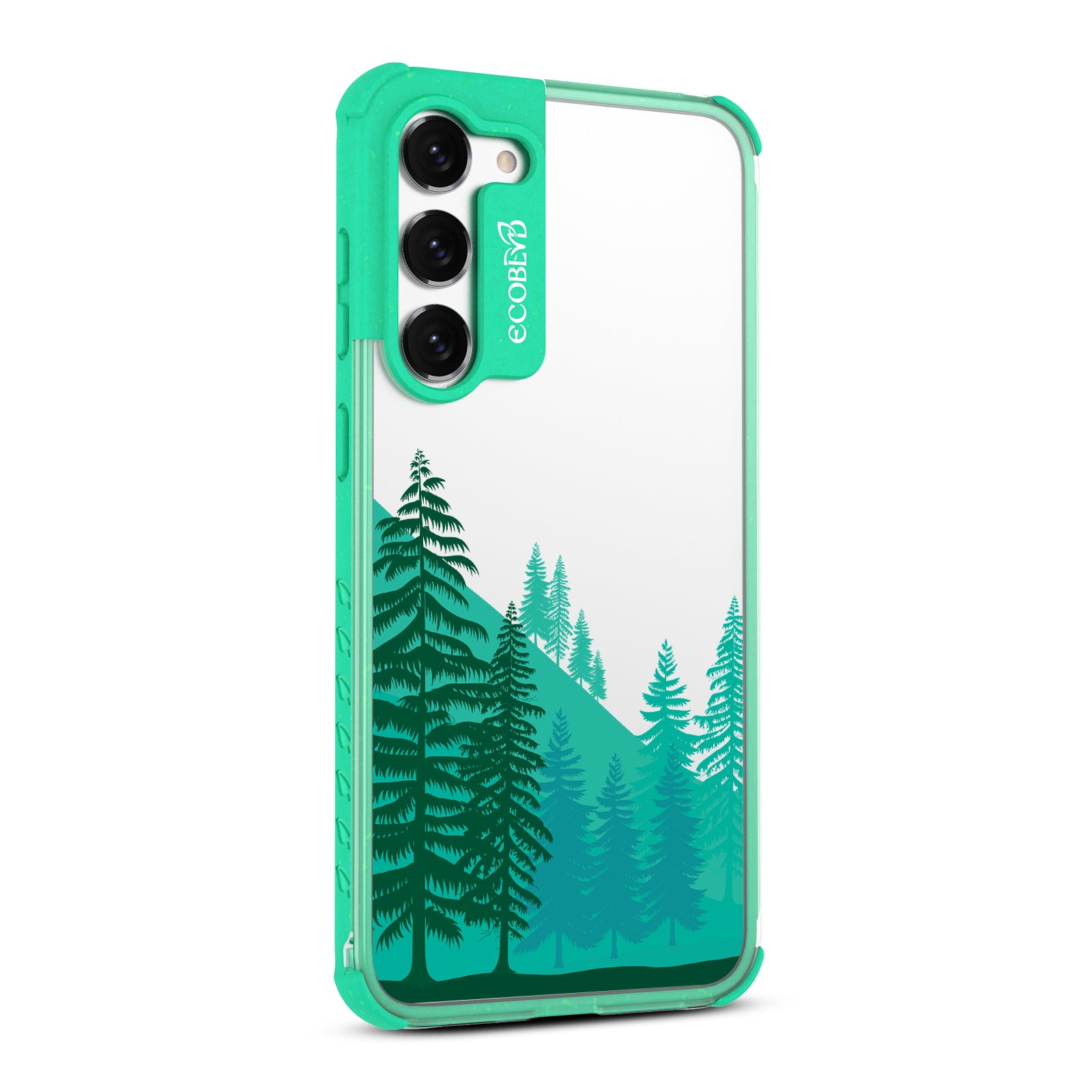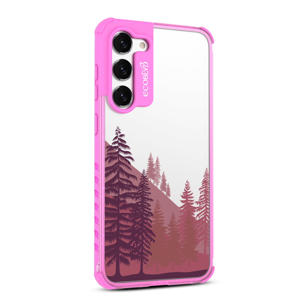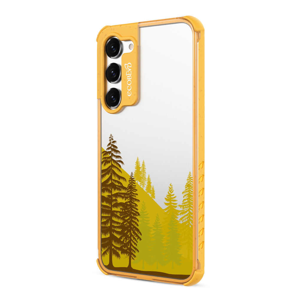 Get dialed into the wonder of nature as the Forest design on our Laguna clear Galaxy S23 case surrounds your phone with a lush forest tree-line landscape of fir trees that lets you bring the great outdoors anywhere in five vibrant colors: Midnight Black, Cascade Blue, Foliage Green, Illuminating Yellow, and Wildflower Pink.