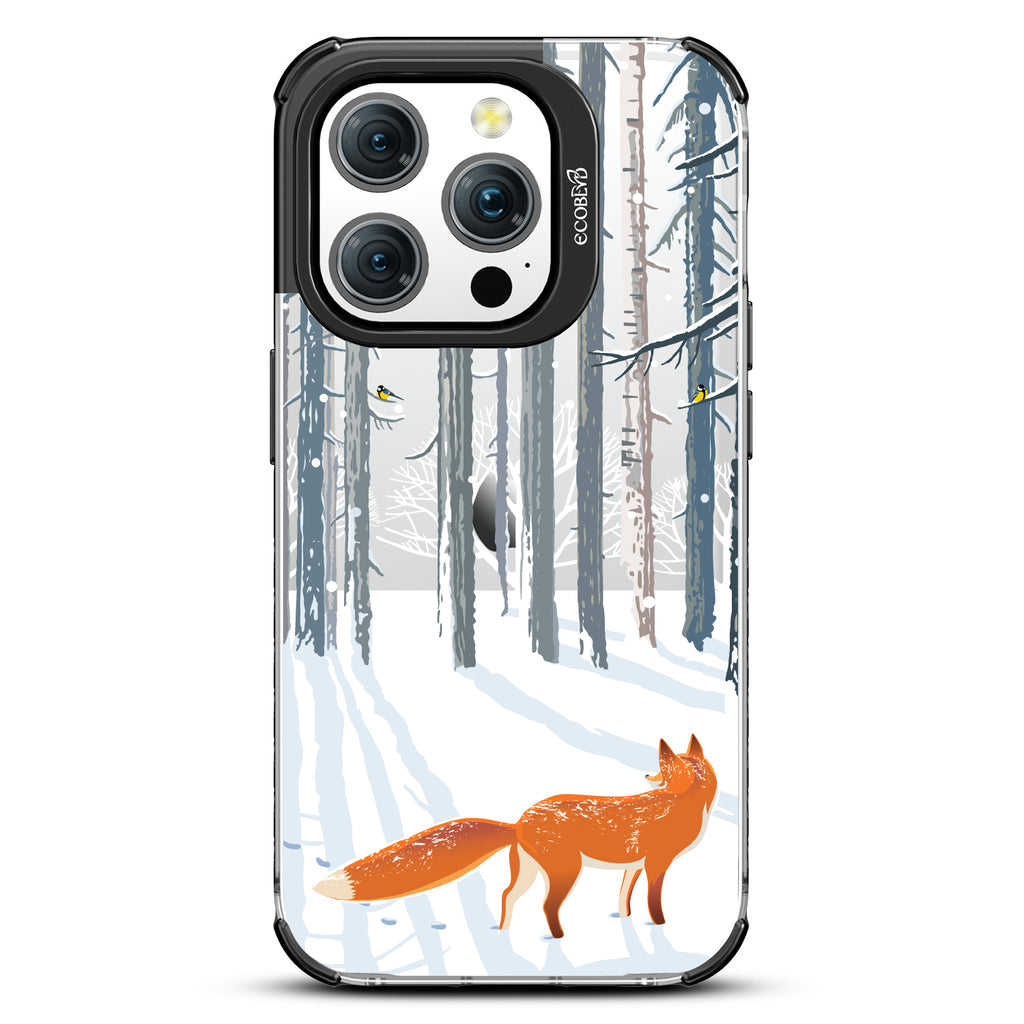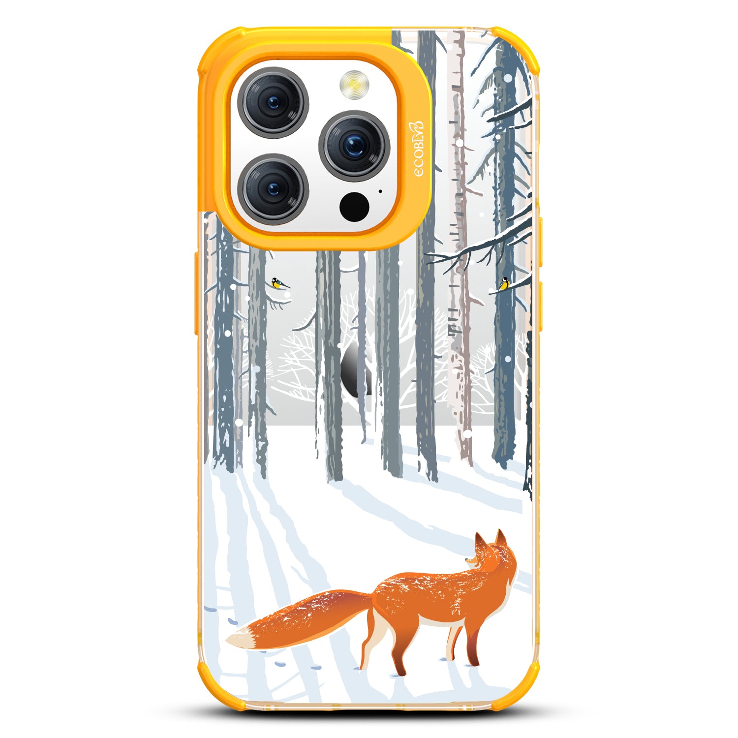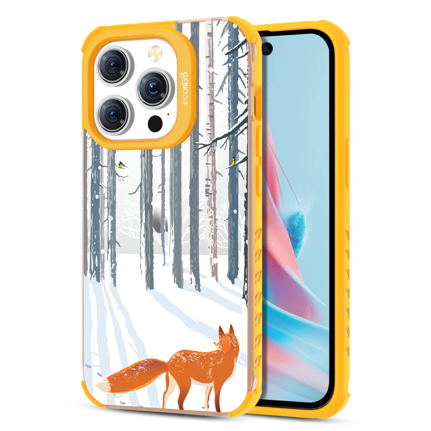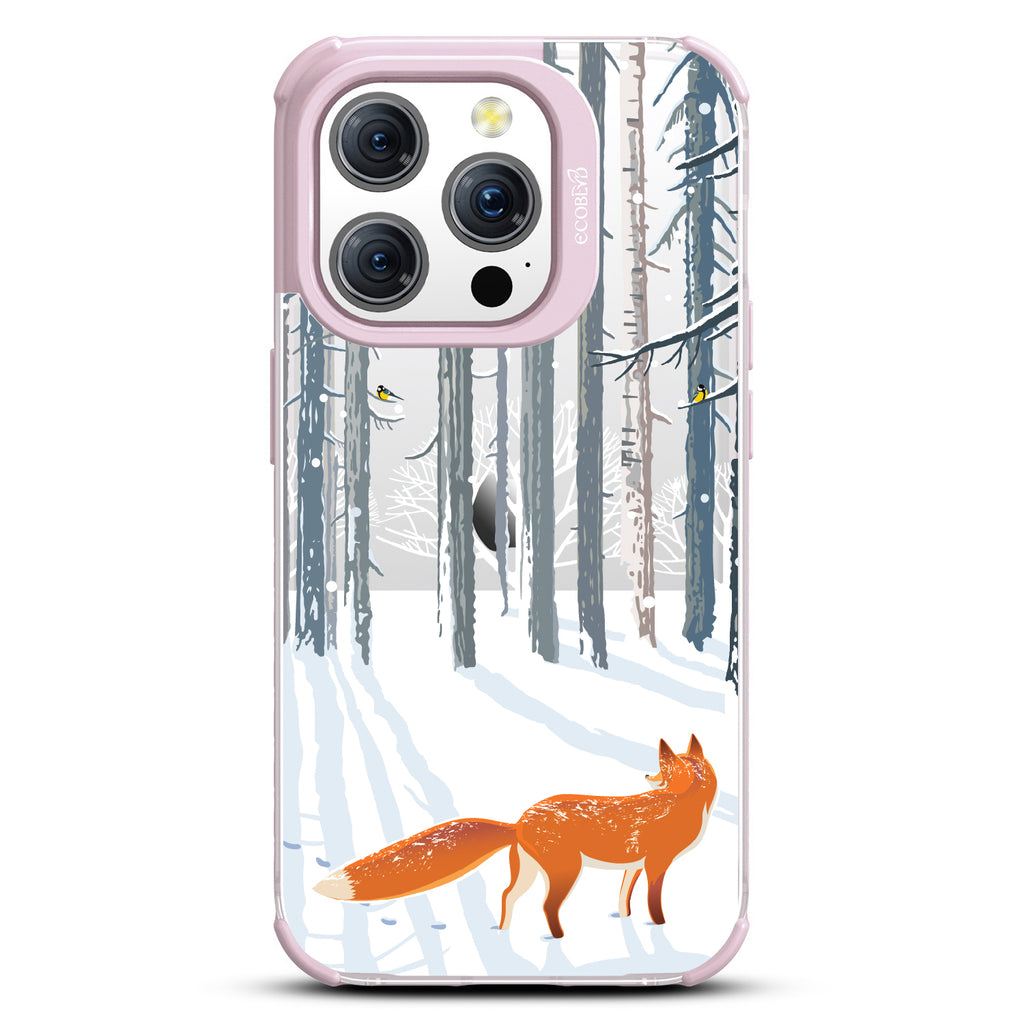 A perfect blend of tranquility and cunning charm, the Fox Trot In The Snow design on our Laguna clear iPhone 15 Pro case complements your phone's cool looks, naturally in five frosty colors: Midnight Black, Cascade Blue, Pastel Lilac, Illuminating Yellow, and Wildflower Pink.