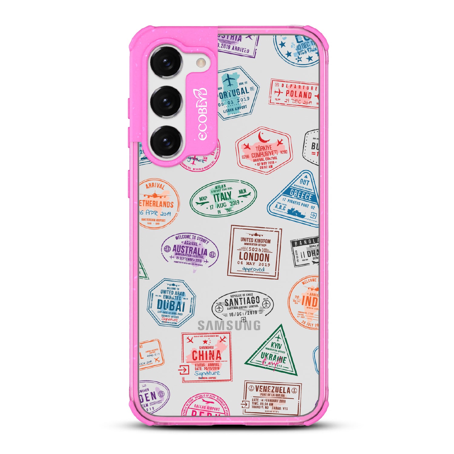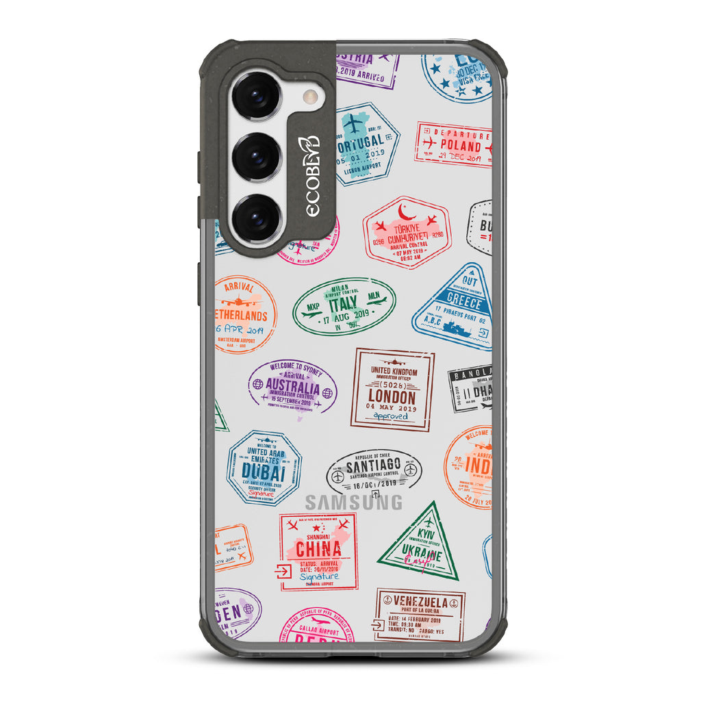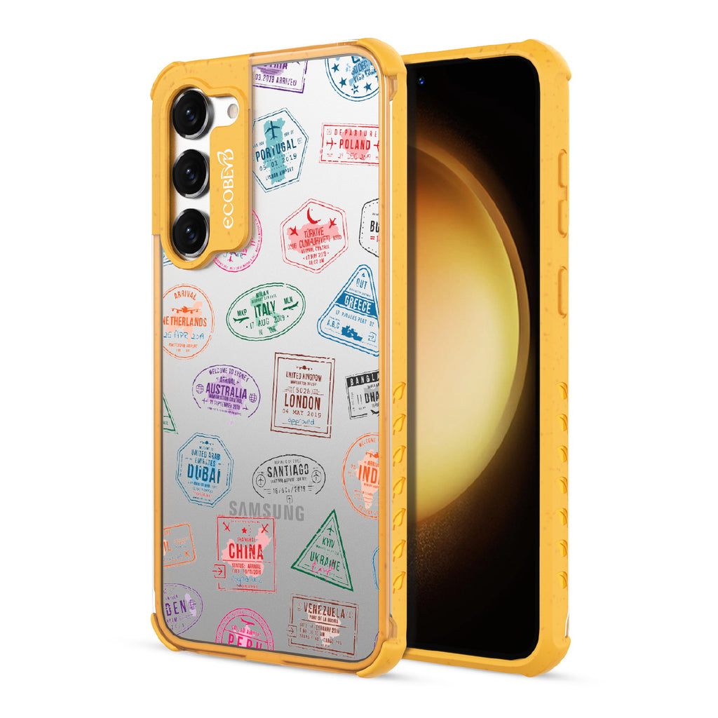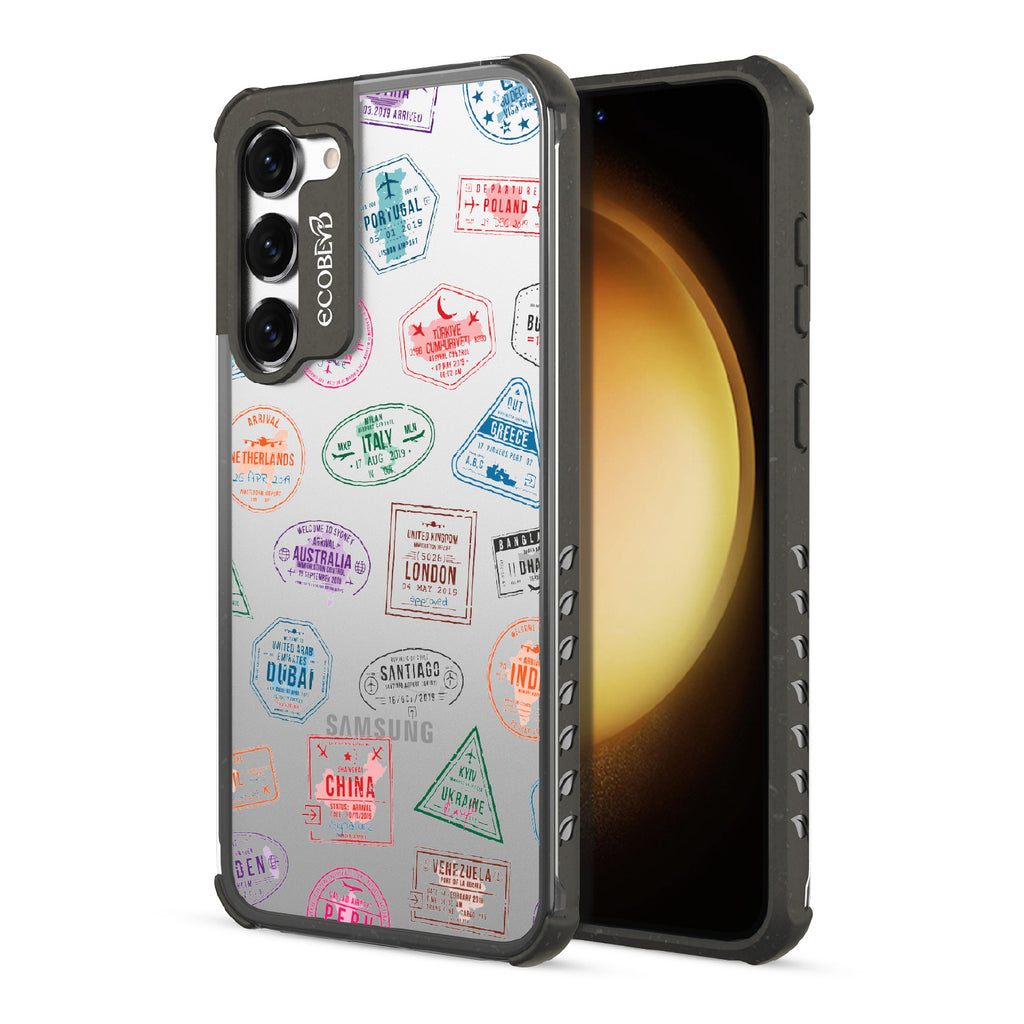 Take your phone on a world tour with the Frequent Flyer design on our Laguna clear Galaxy S23 case. It’s a jet-setting journey across the globe, with stamps from Sydney to Rome, making every text a postcard from abroad. Gear up your phone with this travel-ready case, and let every call be a new stamp in your passport to adventure.