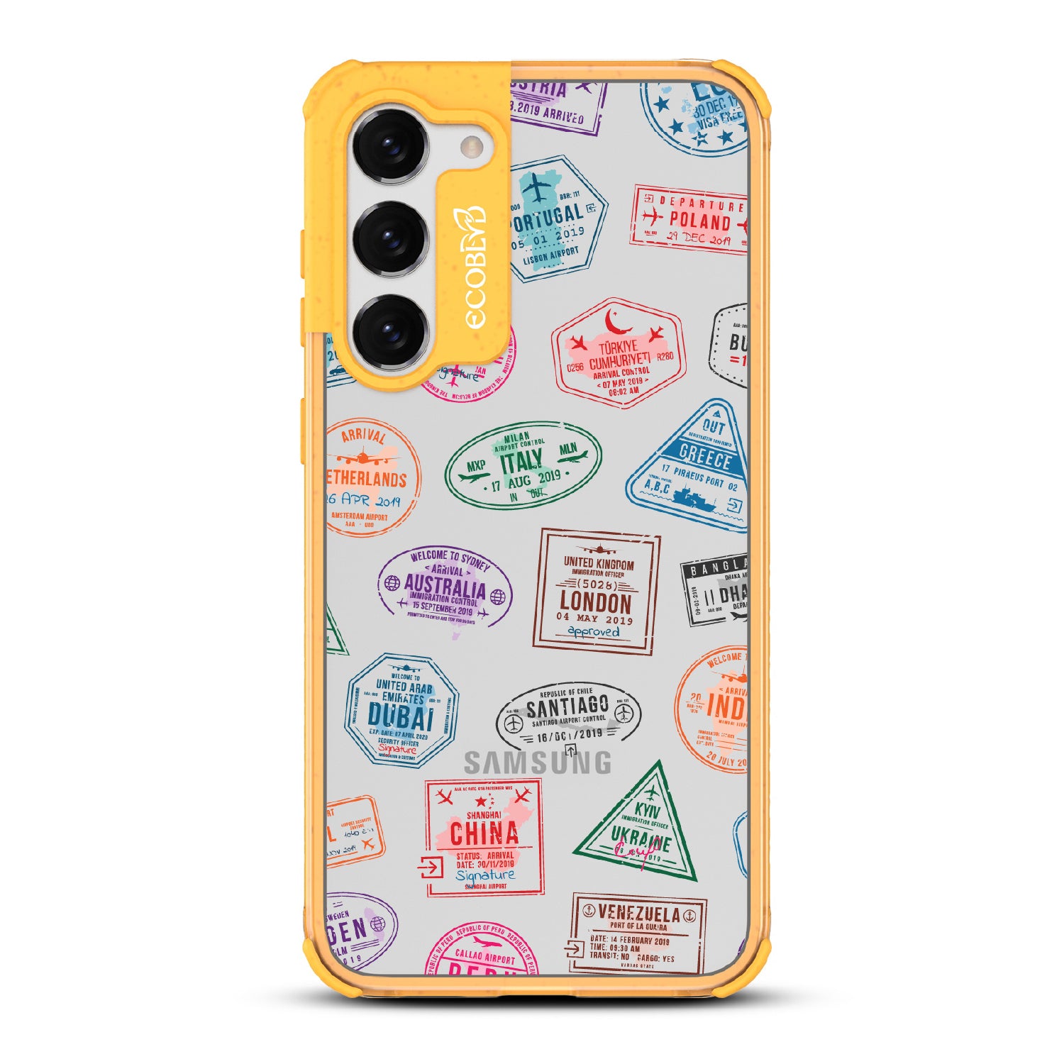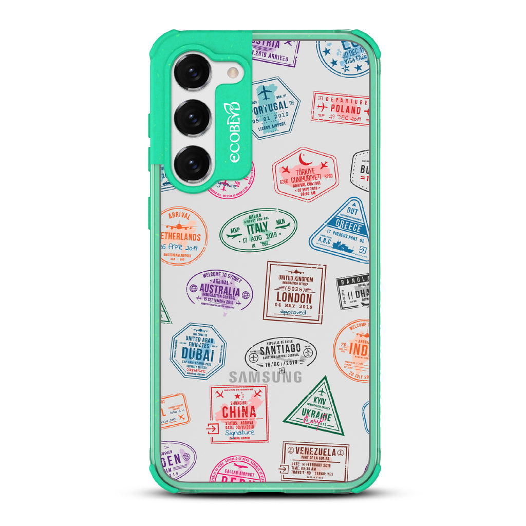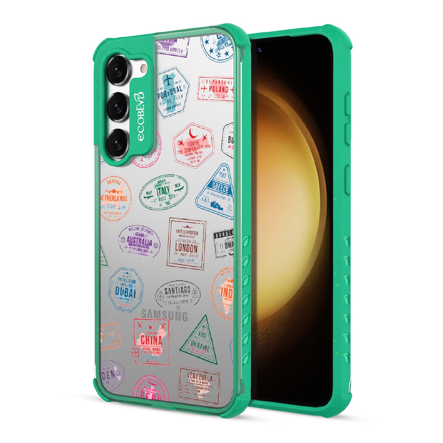 Take your phone on a world tour with the Frequent Flyer design on our Laguna clear Galaxy S23 case. It’s a jet-setting journey across the globe, with stamps from Sydney to Rome, making every text a postcard from abroad. Gear up your phone with this travel-ready case, and let every call be a new stamp in your passport to adventure.