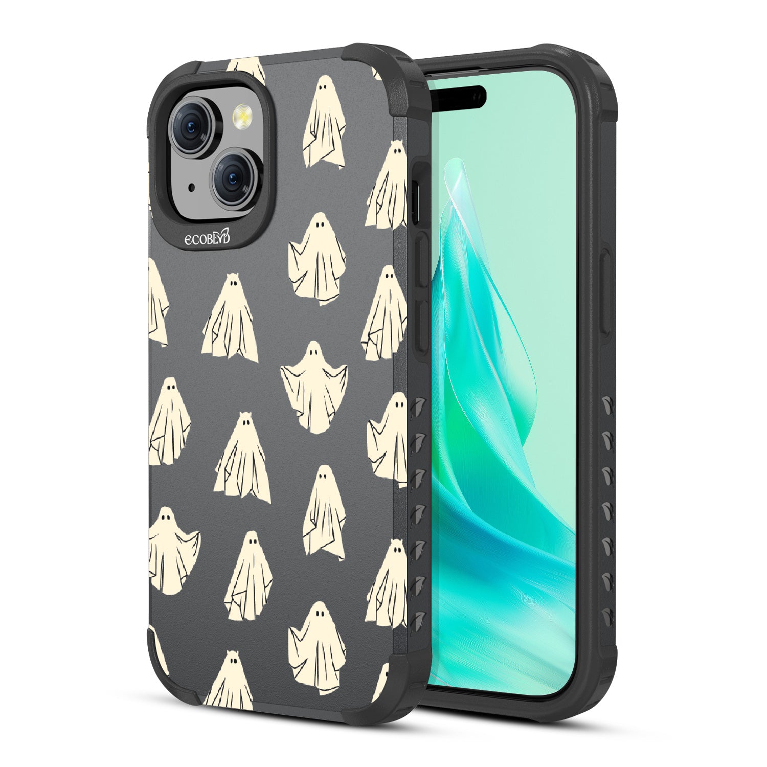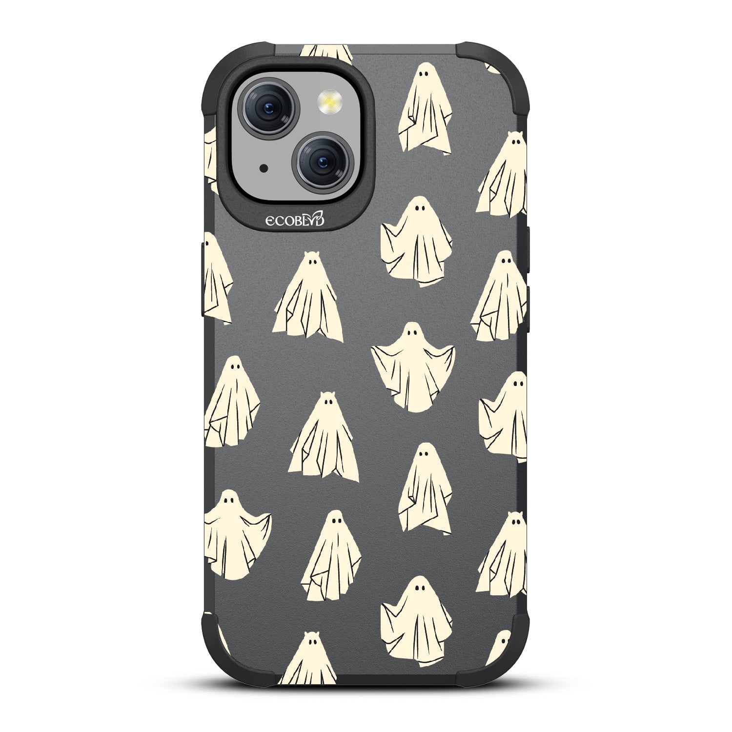 Give lurking danger the creeps with a bit of 'atti-boo-ed' with the Ghosted design on our Mojave rugged and compostable iPhone 15 case as it lets all things scary not even phase your phone or your look. Available in the bold Midnight Black color.