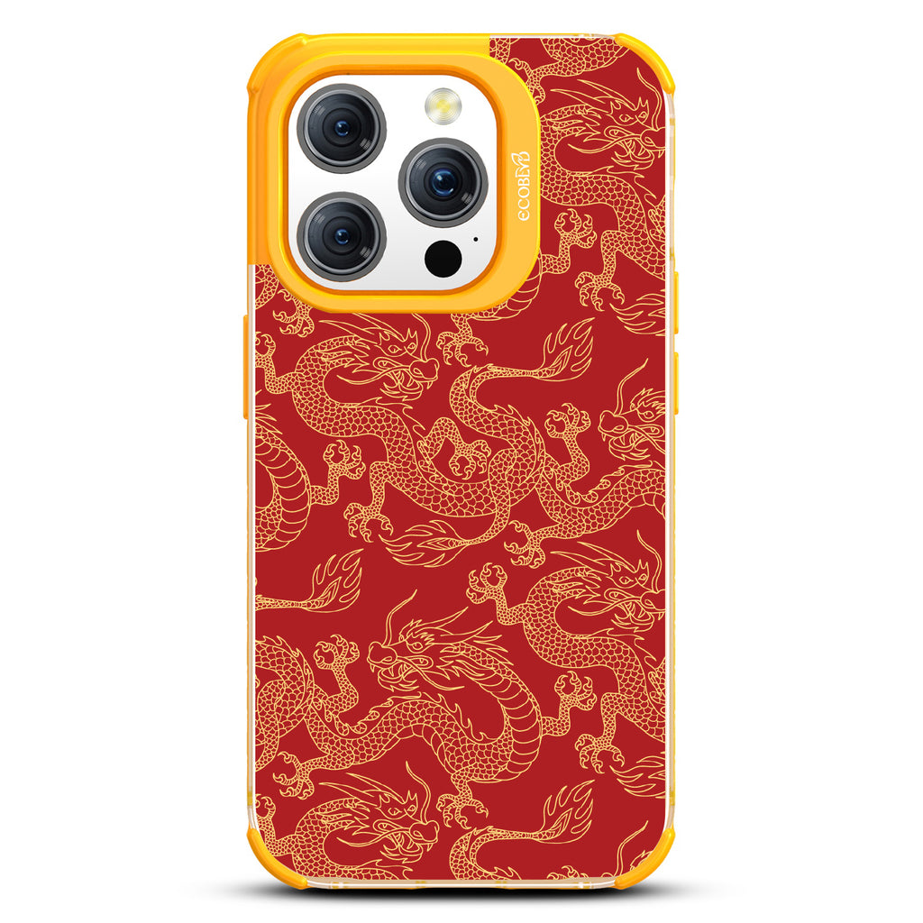 Channel the strength of the Golden Dragon design on our Laguna clear iPhone 15 Pro case, an homage to resilience, wisdom, and prosperity rooted in the age-old stories of Chinese mythology. Carrying this legendary guardian in your pocket becomes a statement of good fortune, bringing luck to every aspect of your day.