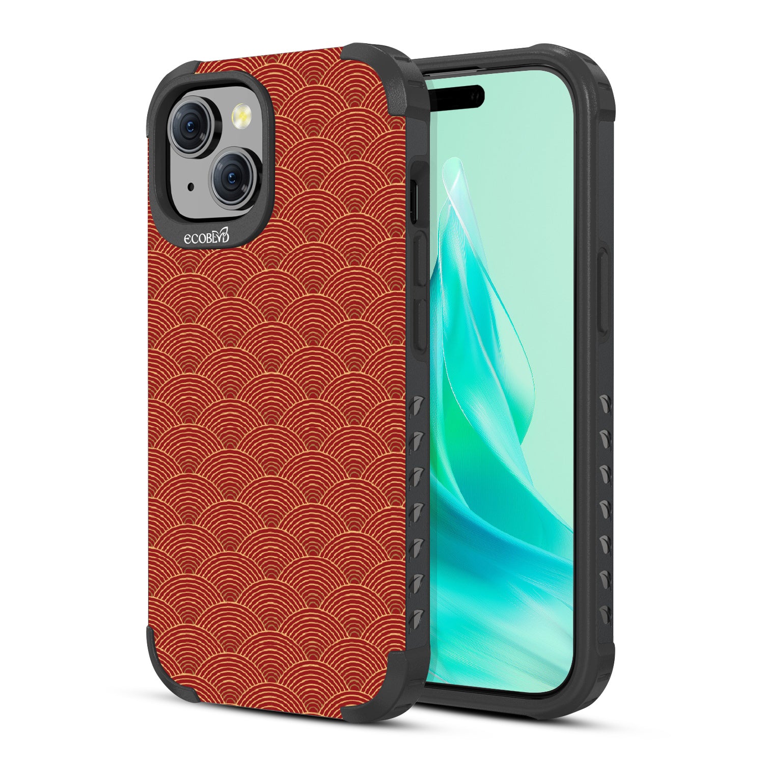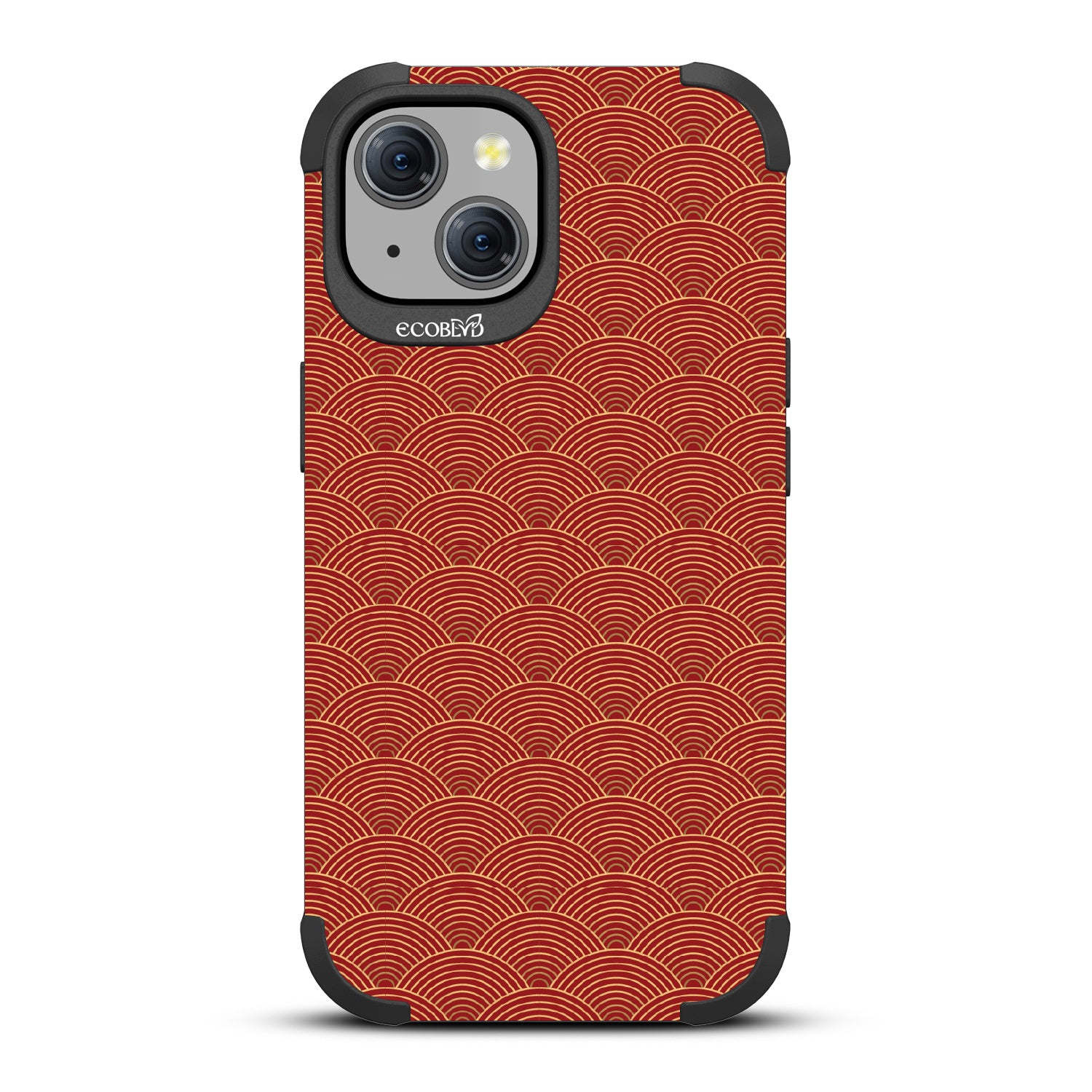 Welcome prosperity with the Good Fortune design on our Mojave rugged and compostable iPhone 15 MagSafe case, a vibrant blend of red and gold traditional Seigaiha patterns that symbolize abundance and resistance. Allow your phone to be your good luck charm to resist negativity and attract luck throughout the Lunar New Year.