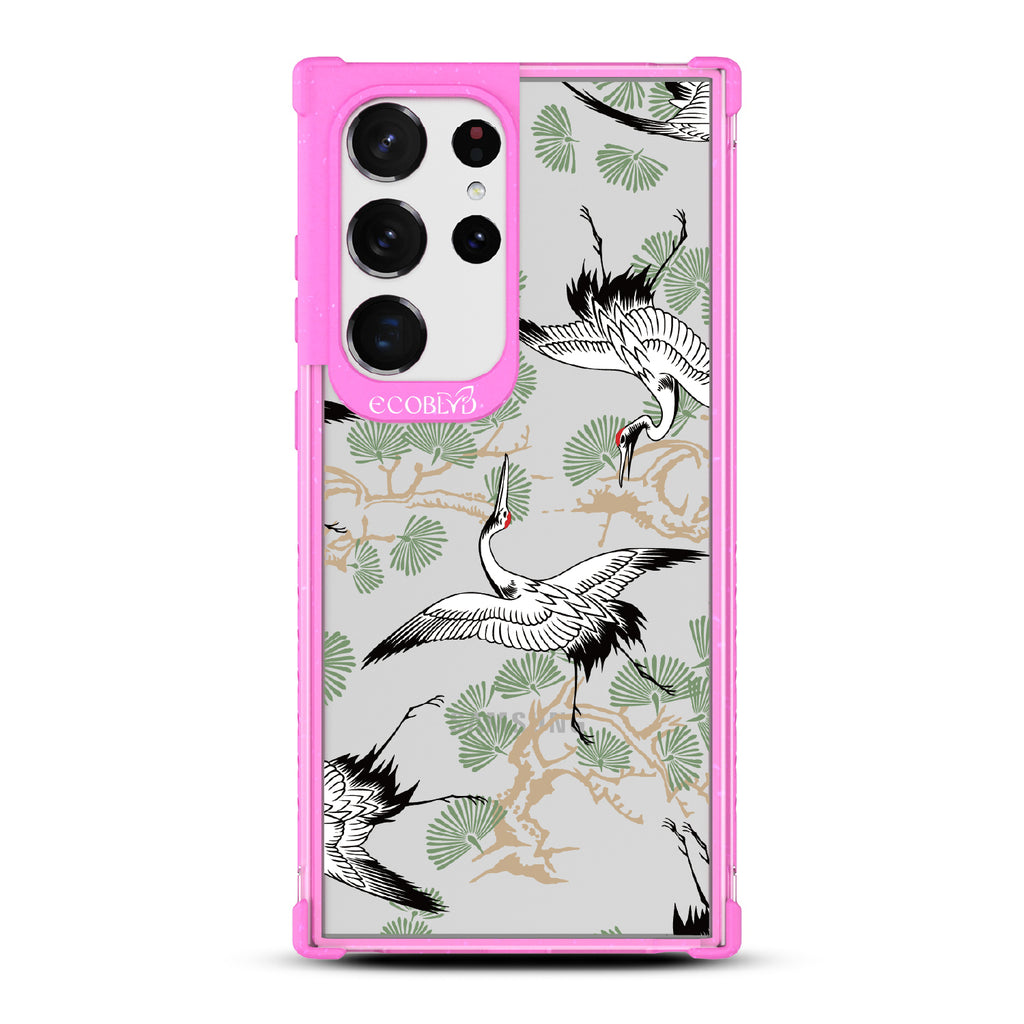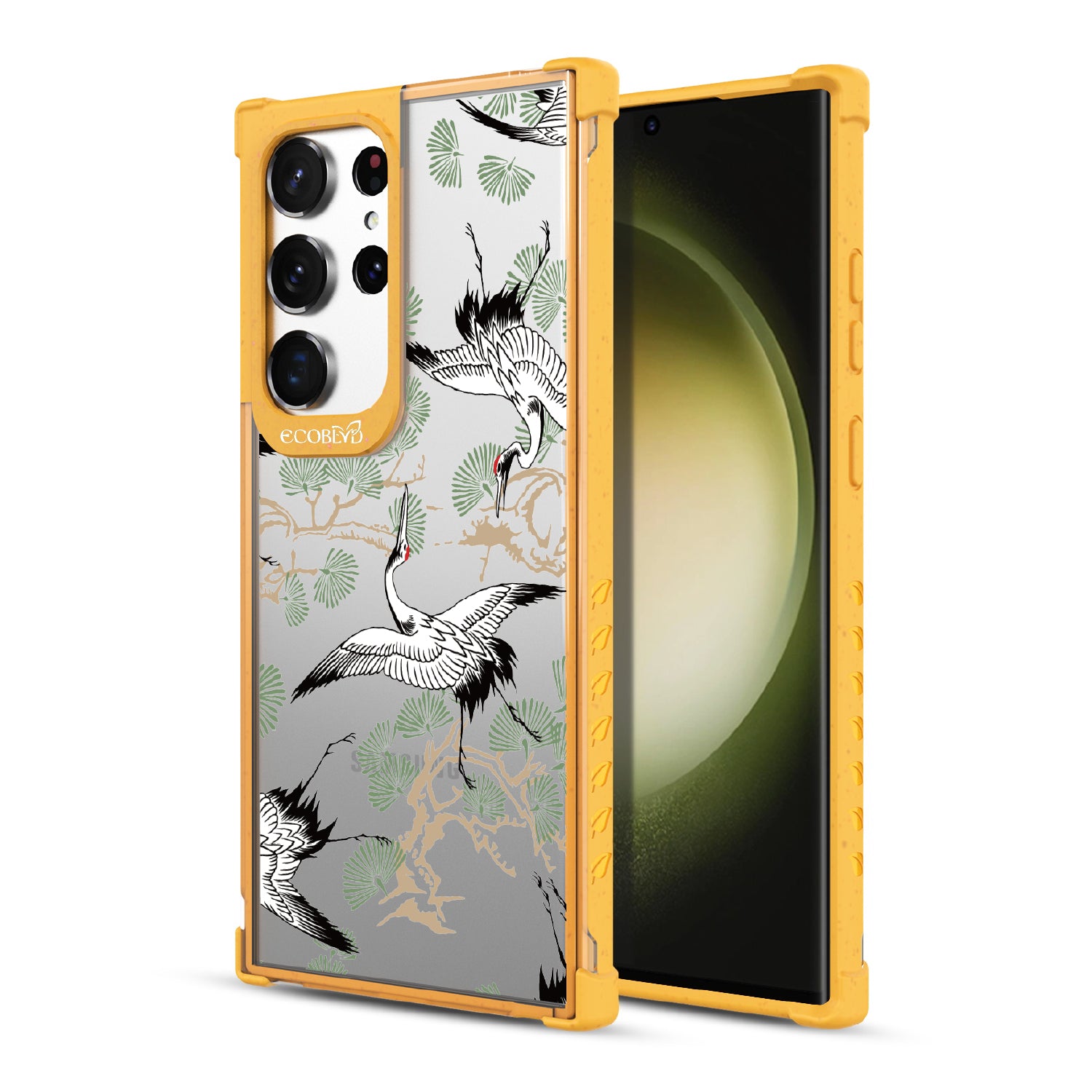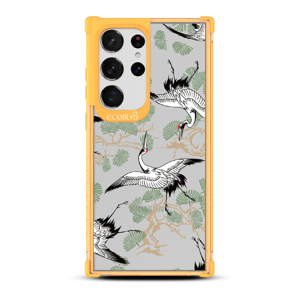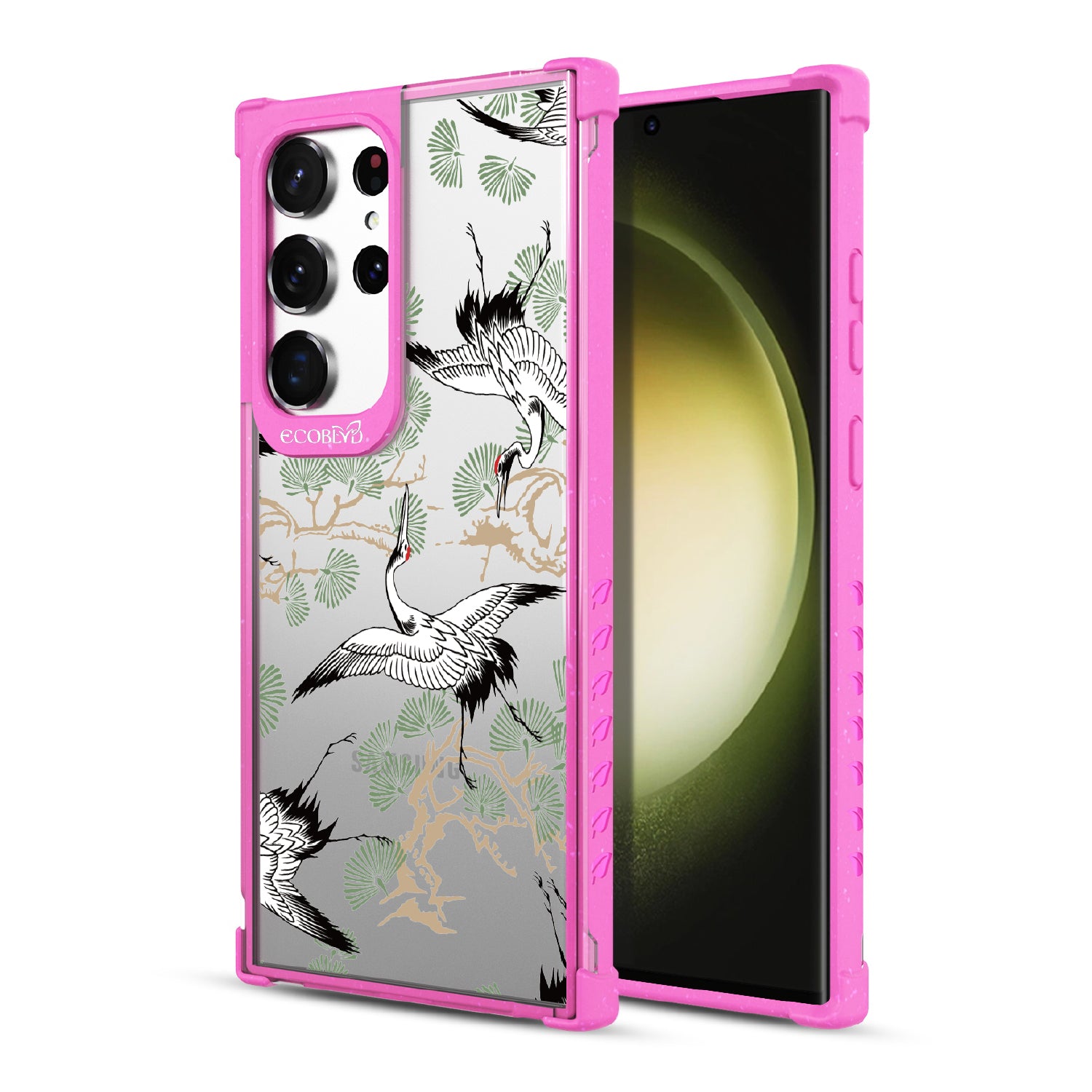 Indulge in the enchanting elegance of the Graceful Crane design, exclusively crafted for the Laguna clear Galaxy S23 Ultra case. Like a delicate dancer, this stunning artwork captures the essence of grace and beauty. Let your phone stand out from the flock with its intricate details and captivating presence. Embrace the melodic enchantment and experience impeccable style and protection, all while supporting ocean conservation efforts. Immerse yourself in the ethereal world of the Graceful Crane, available in five captivating colors: Midnight Black, Cascade Blue, Foliage Green, Illuminating Yellow, and Wildflower Pink.