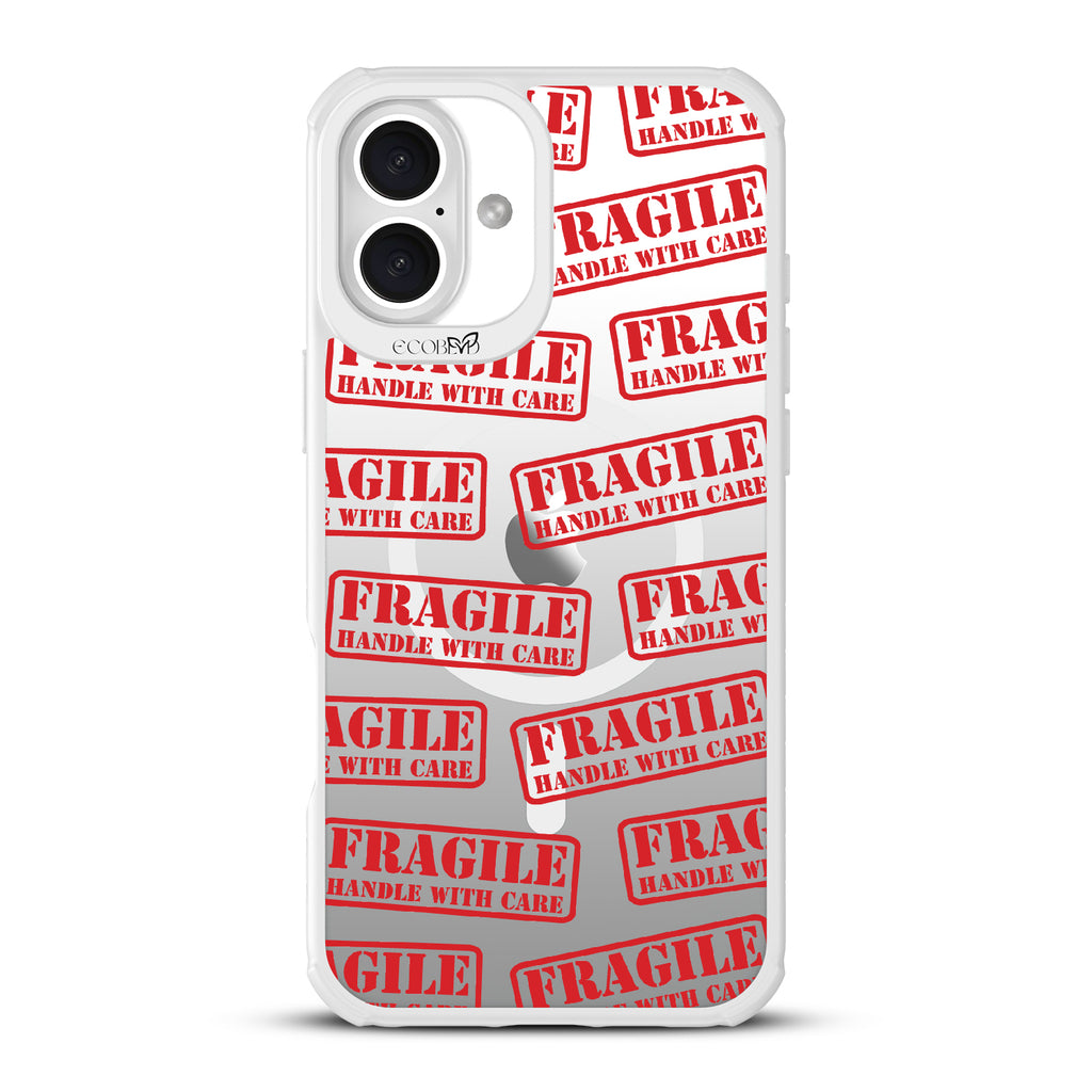 Your phone is precious cargo, and the Handle With Care design on our Revive clear iPhone 16 Plus phone case makes sure everyone knows it. Like the most treasured package in the post, this design stamps your device with VIP status, demanding the gentle touch and special attention reserved for the things we can't live without.