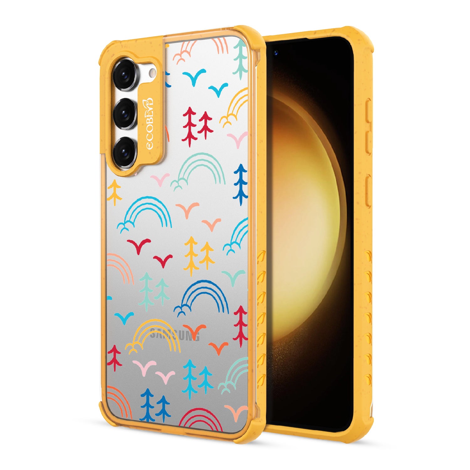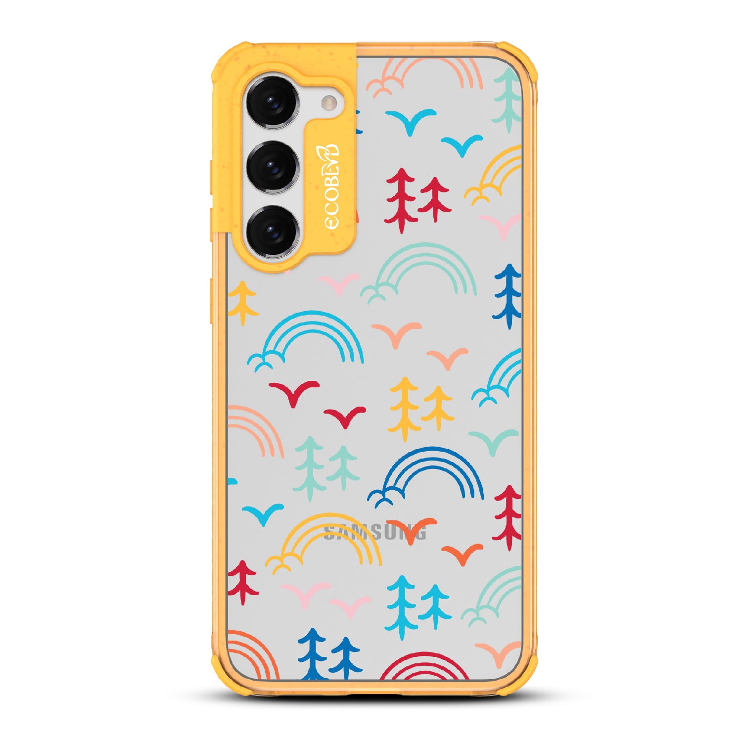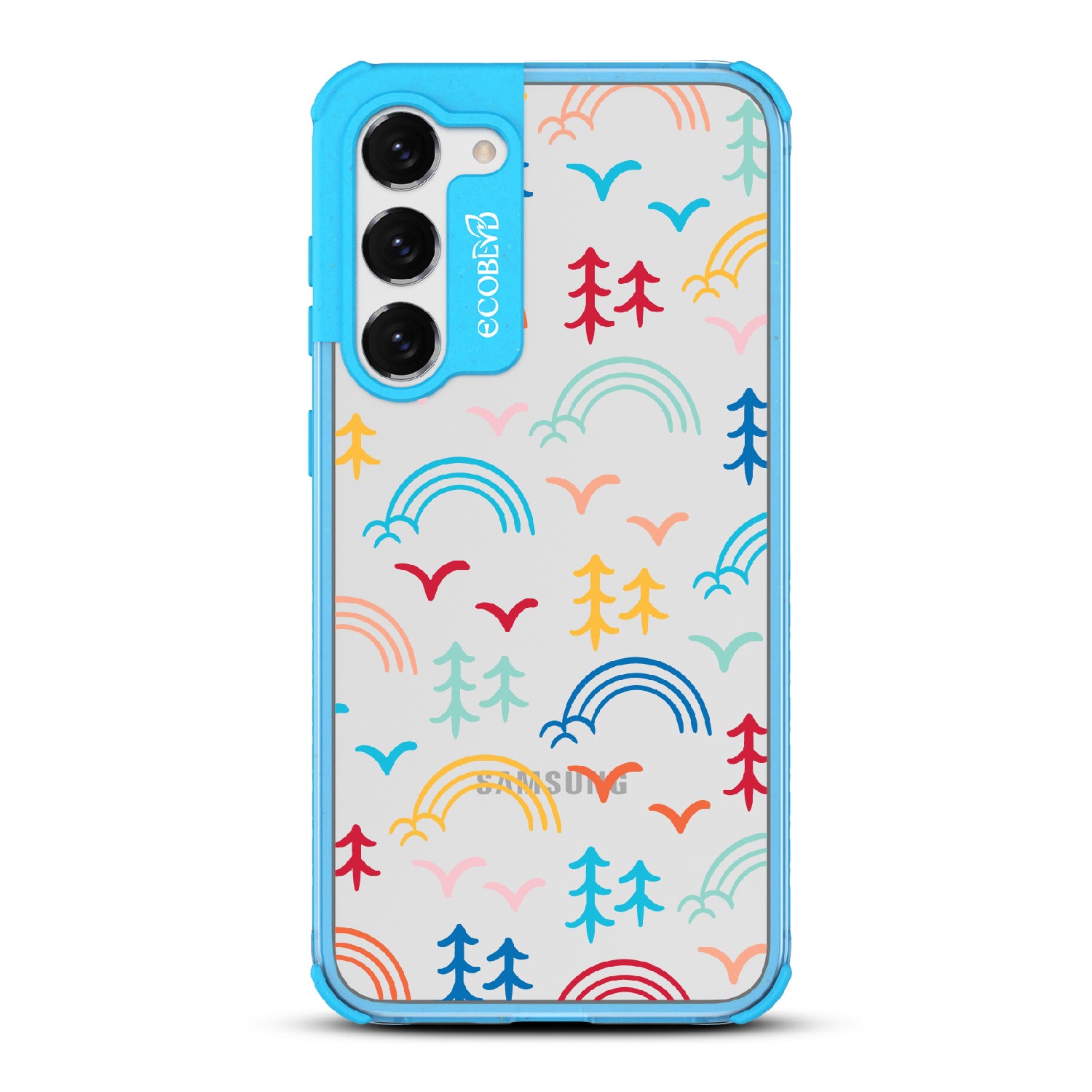 Experience the magic of camp life wherever you go with the Happy Camper x Brave Trails phone case for Galaxy S23 Plus. Its captivating minimalist illustrations of trees, birds, rainbows, and clouds transport you to a world of adventure and camaraderie. The vibrant palette of colors captures the spirit of togetherness and celebrates the diversity that makes each journey unique. Carry this whimsical masterpiece with you and let it ignite the fire of exploration, friendship, and self-discovery in your heart.