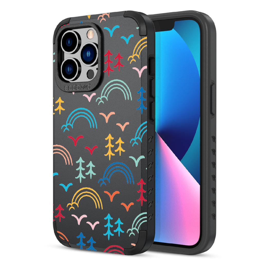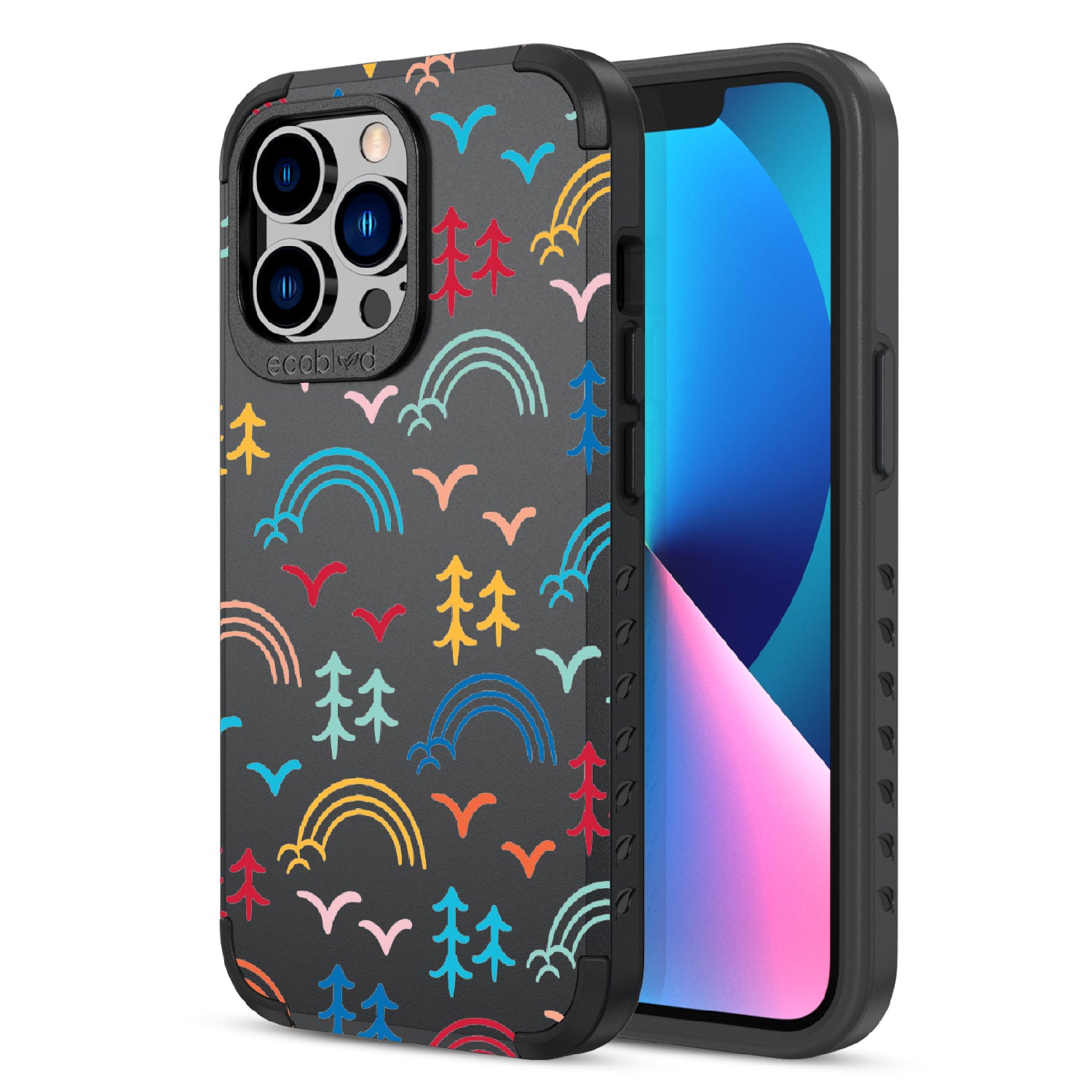 Experience the magic of camp life wherever you go with the Happy Camper x Brave Trails design on our Mojave rugged and compostable iPhone 12 Pro Max or iPhone 13 Pro Max case. Its captivating minimalist illustrations of trees, birds, rainbows, and clouds transport you to a world of adventure and camaraderie. The vibrant palette of colors captures the spirit of togetherness and celebrates the diversity that makes each journey unique. Carry this whimsical masterpiece with you and let it ignite the fire of exploration, friendship, and self-discovery in your heart.