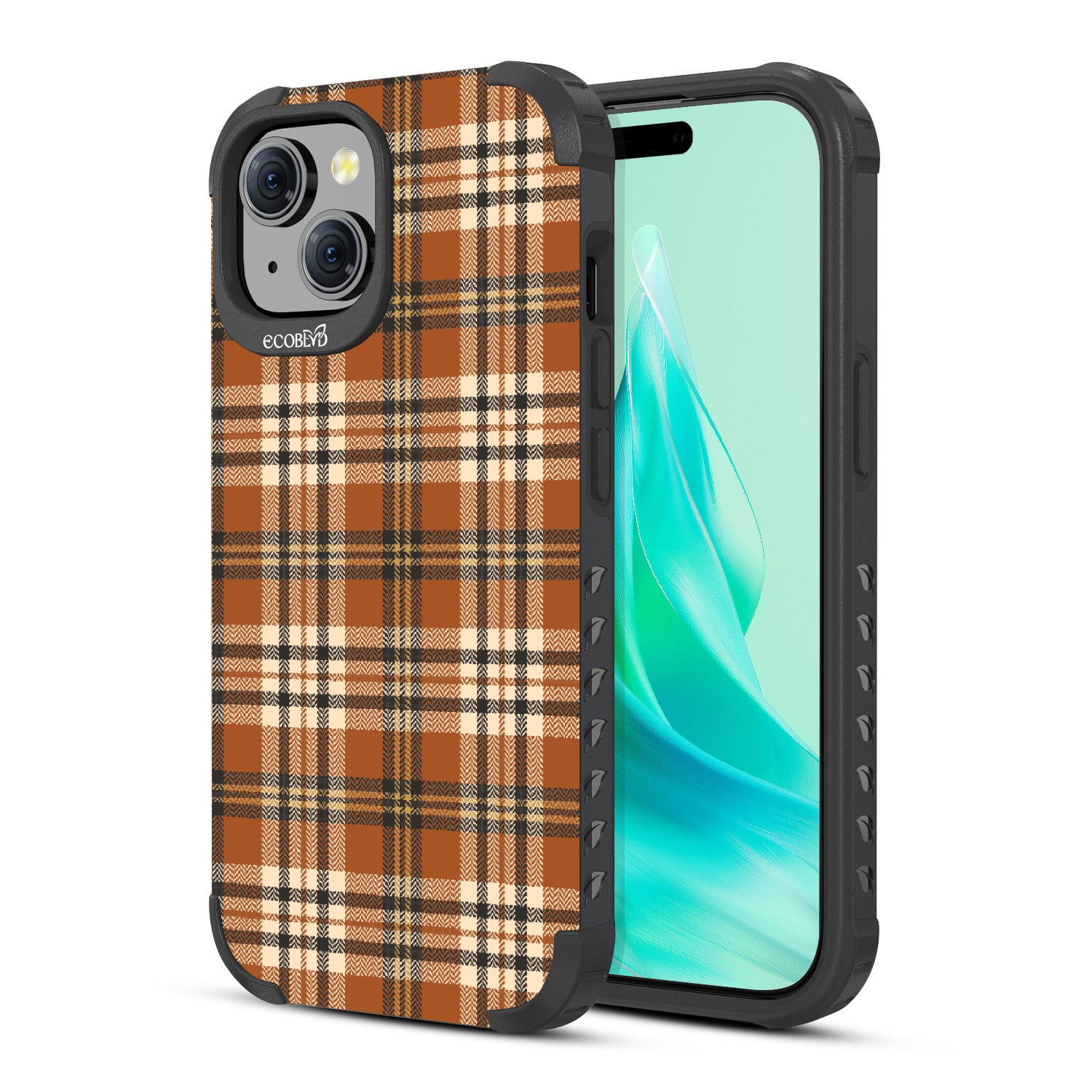 The Harvest Plaid design on our Mojave rugged and compostable iPhone 15 MagSafe case exudes plaid-itudes as it adds a touch of rustic charm to your ensemble. The warm brown and yellow plaid pattern captures the essence of autumn and the harvest season, making it a perfect complement to your fall wardrobe.