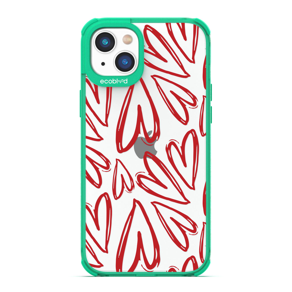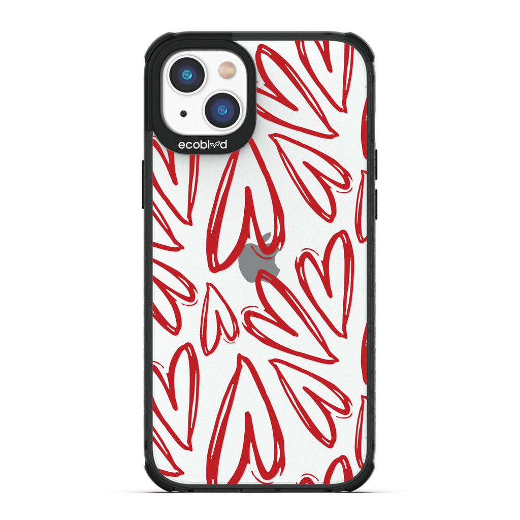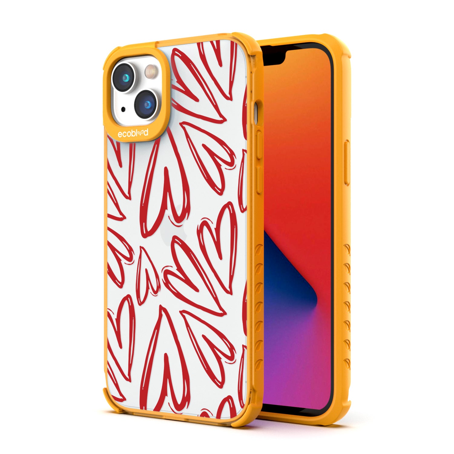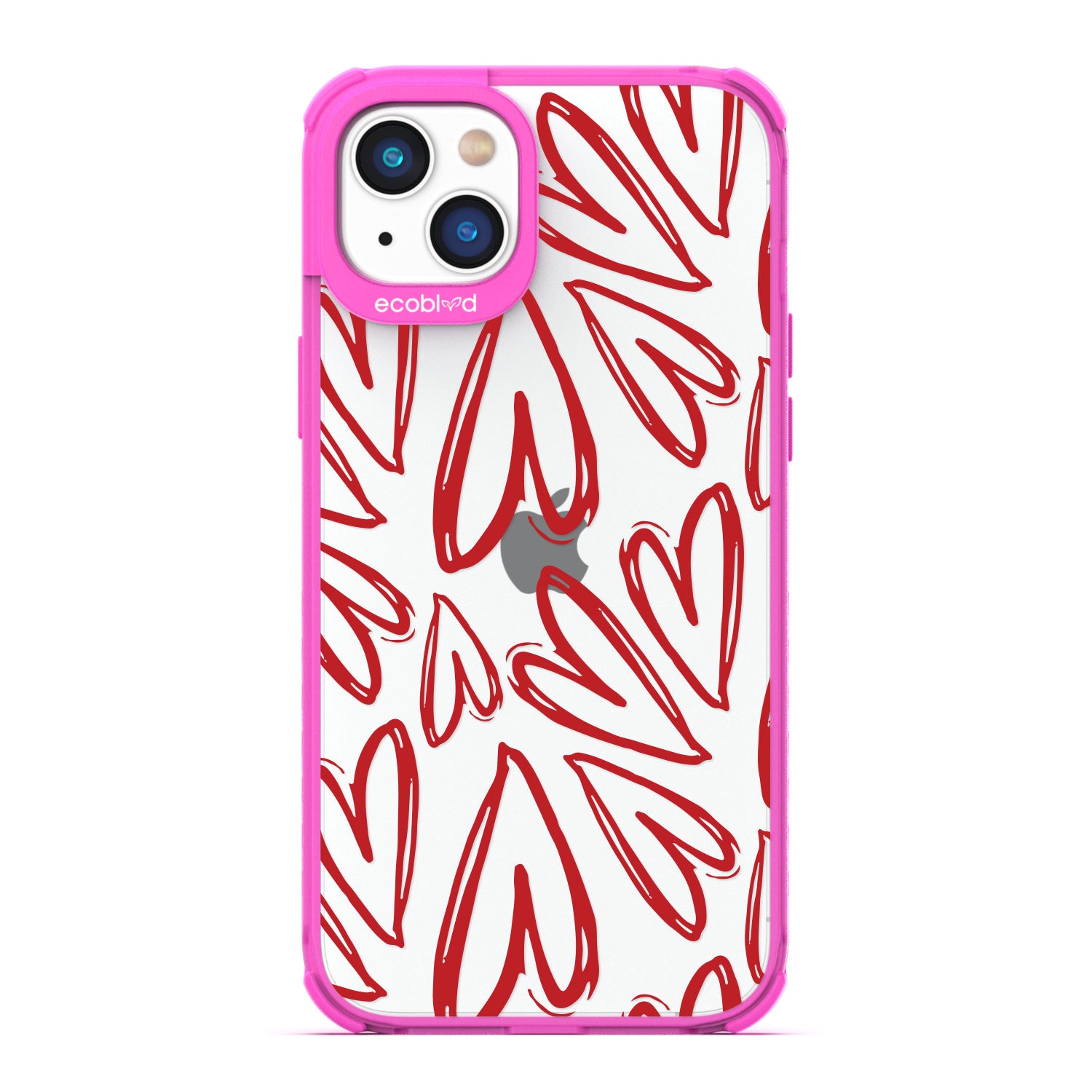 Scribbled with love and passion, the Heartfelt design on our Laguna clear iPhone 14 Plus phone case with its bold red hearts will put a smile on your face and a spring in your step every time you use your phone in its five romantic colorways: Midnight Black, Cascade Blue, Foliage Green, Illuminating Yellow, and Wildflower Pink.
