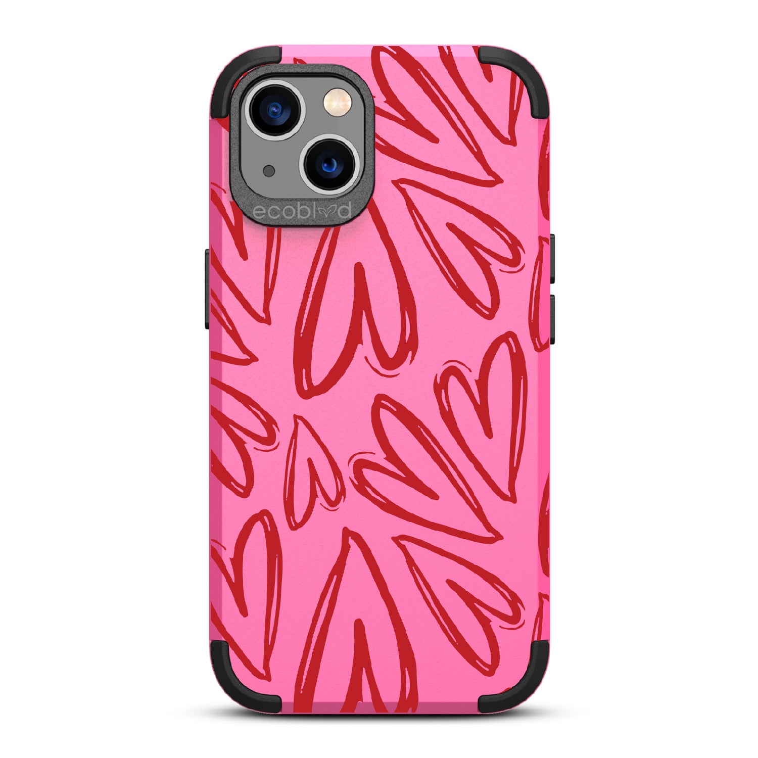 Scribbled with love and passion, the Heartfelt design on our Mojave rugged and compostable iPhone 13 phone case's bold red hearts will put a smile on your face and a spring in your step every time you use your iPhone. Choose from two romantic colorways: Midnight Black and Wildflower Pink.