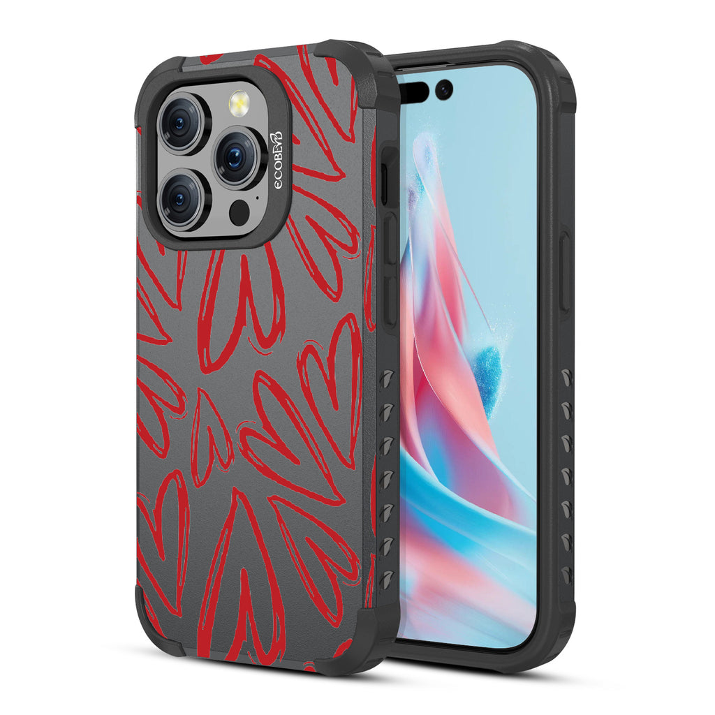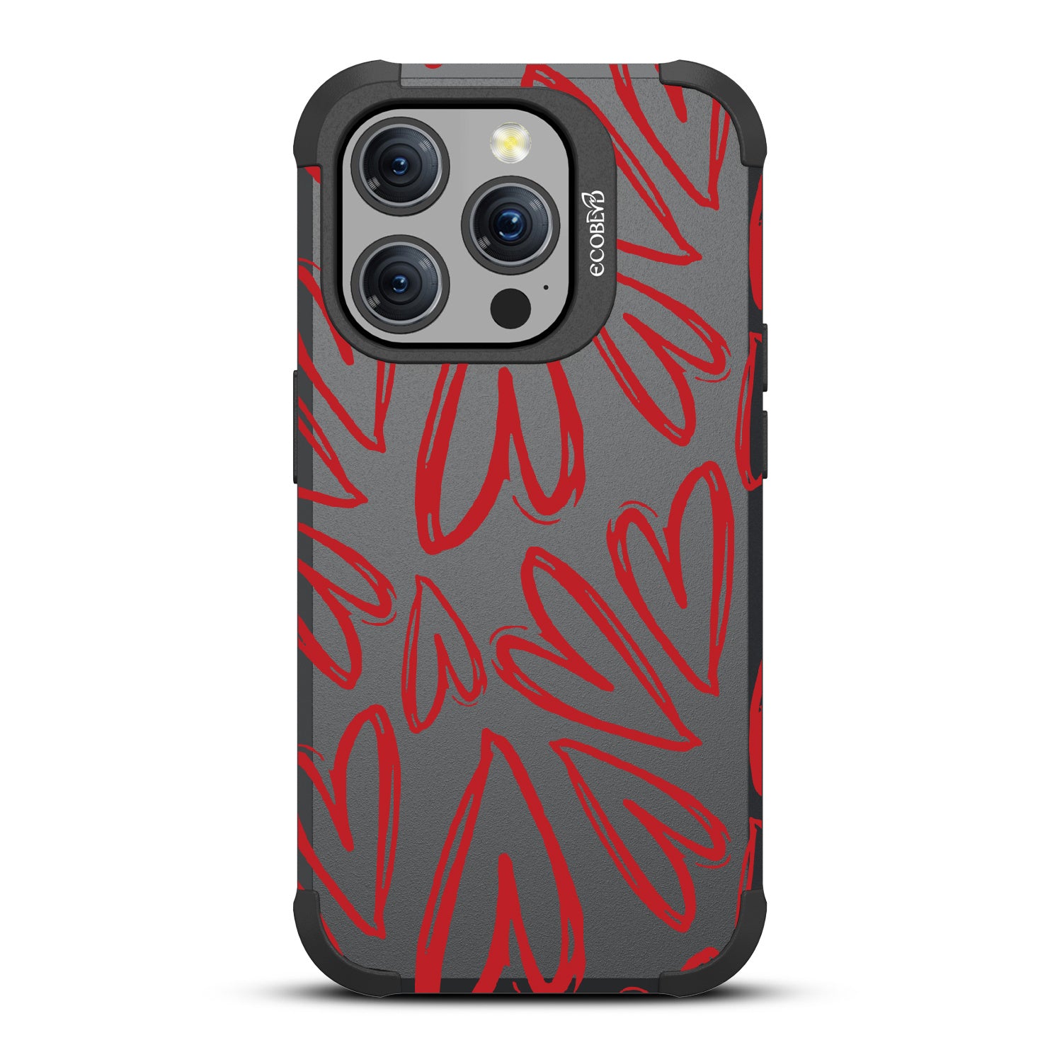 Scribbled with love and passion, the Heartfelt design on our Mojave rugged and compostable iPhone 15 Pro MagSafe case's bold red hearts will put a smile on your face and a spring in your step every time you use your iPhone. Choose from two romantic colorways: Midnight Black and Wildflower Pink.