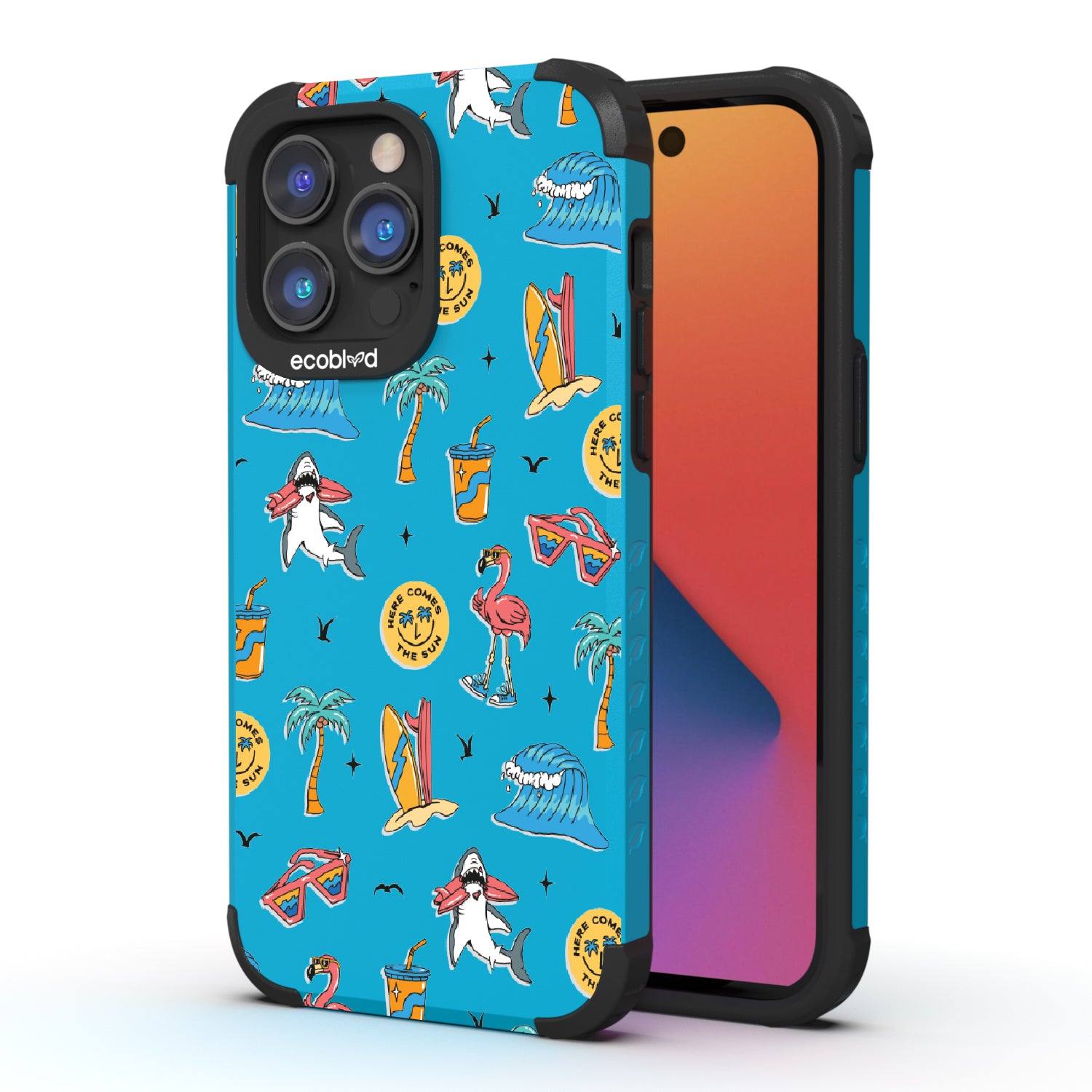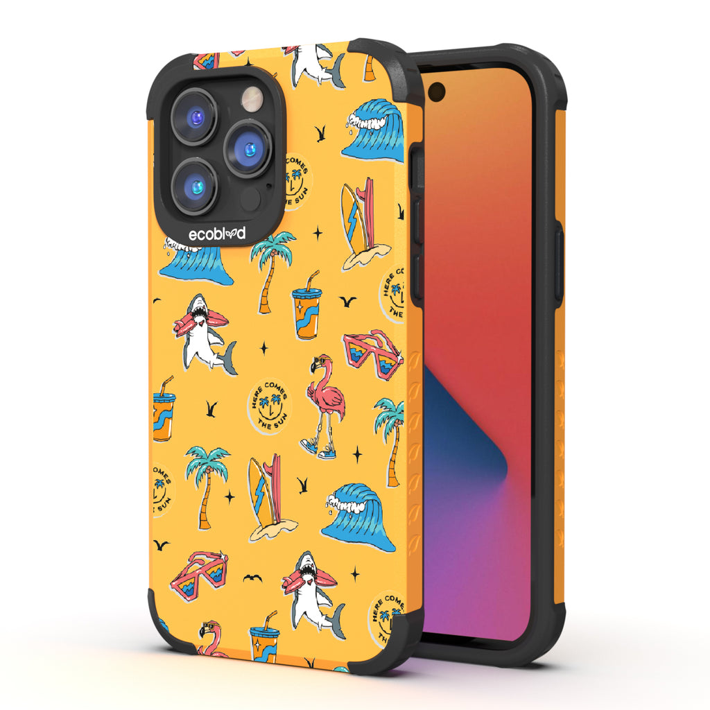 Slip on your flip-flops, grab your shades, and let the Here Comes The Sun design on our Mojave rugged and compostable iPhone 14 Pro phone case complete your sun-soaked style. From sunrise to sunset, it brightens your world, just like the summer sun. Here comes the fun, so make sure your phone shines wherever you roam.