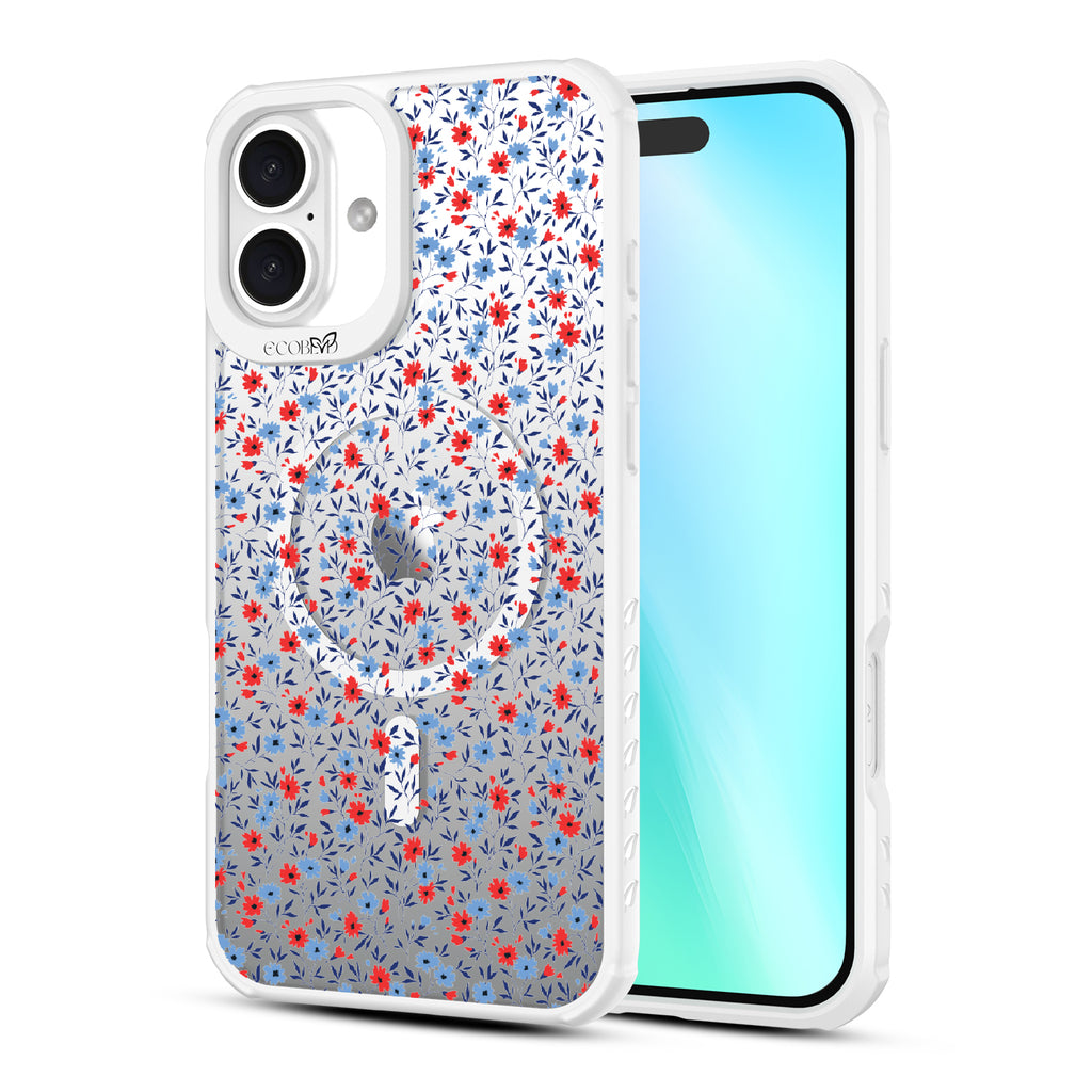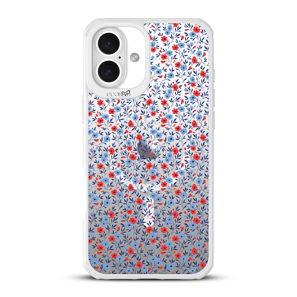 Show off your country roots with the Home Grown design on our Revive clear iPhone 16 Plus phone case. Adorned with red, white, and blue flowers, this vintage floral pattern brings rustic charm and, some true American flair.