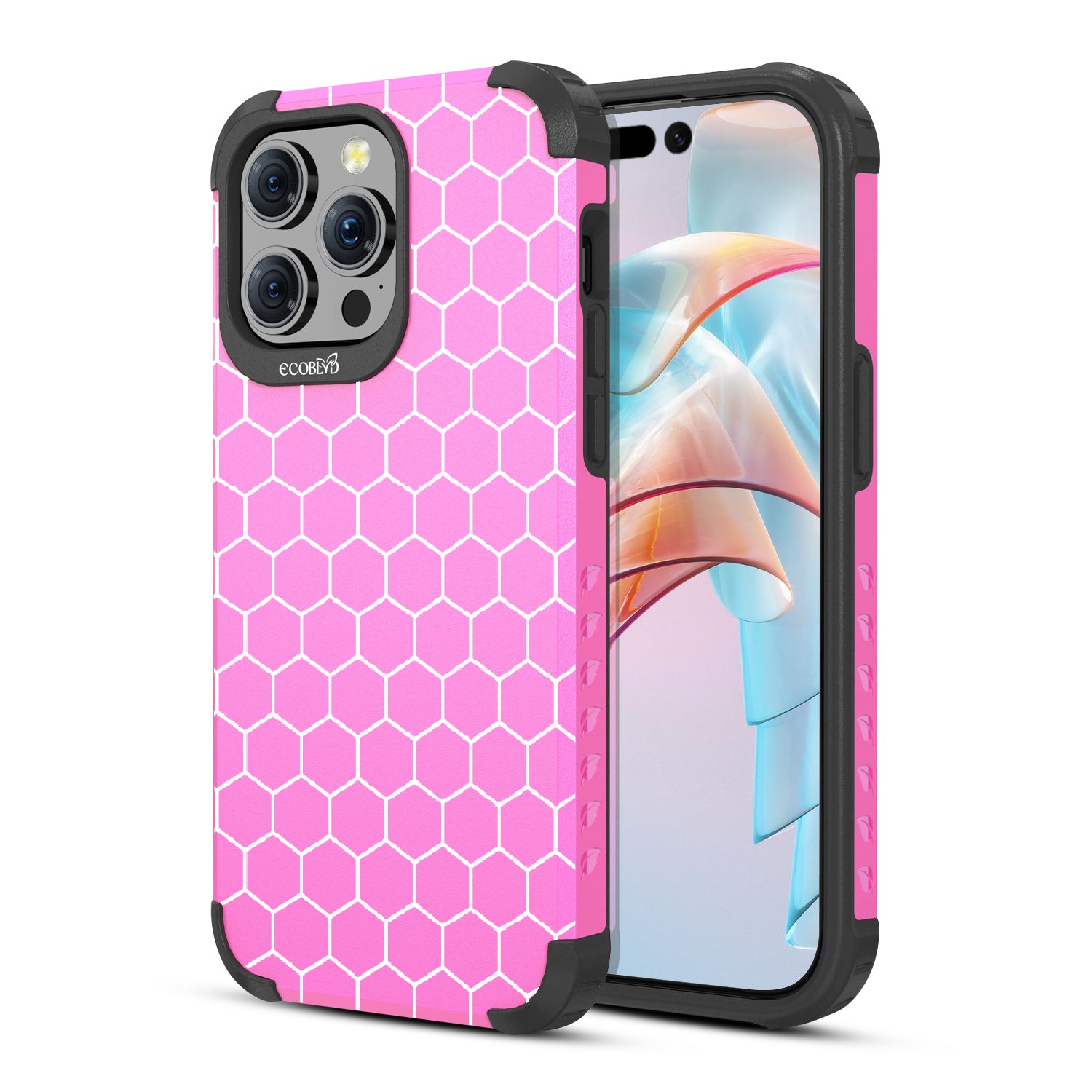 The Honeycomb design on our Mojave rugged and compostable iPhone 15 Pro Max MagSafe case, is the perfect amount of sweet intricacy for keeping you stylish as you bumble along with your phone. Available in five colorways: Midnight Black, Cascade Blue, Wildflower Pink, Illuminating Yellow, and the exclusive Pastel Lilac!