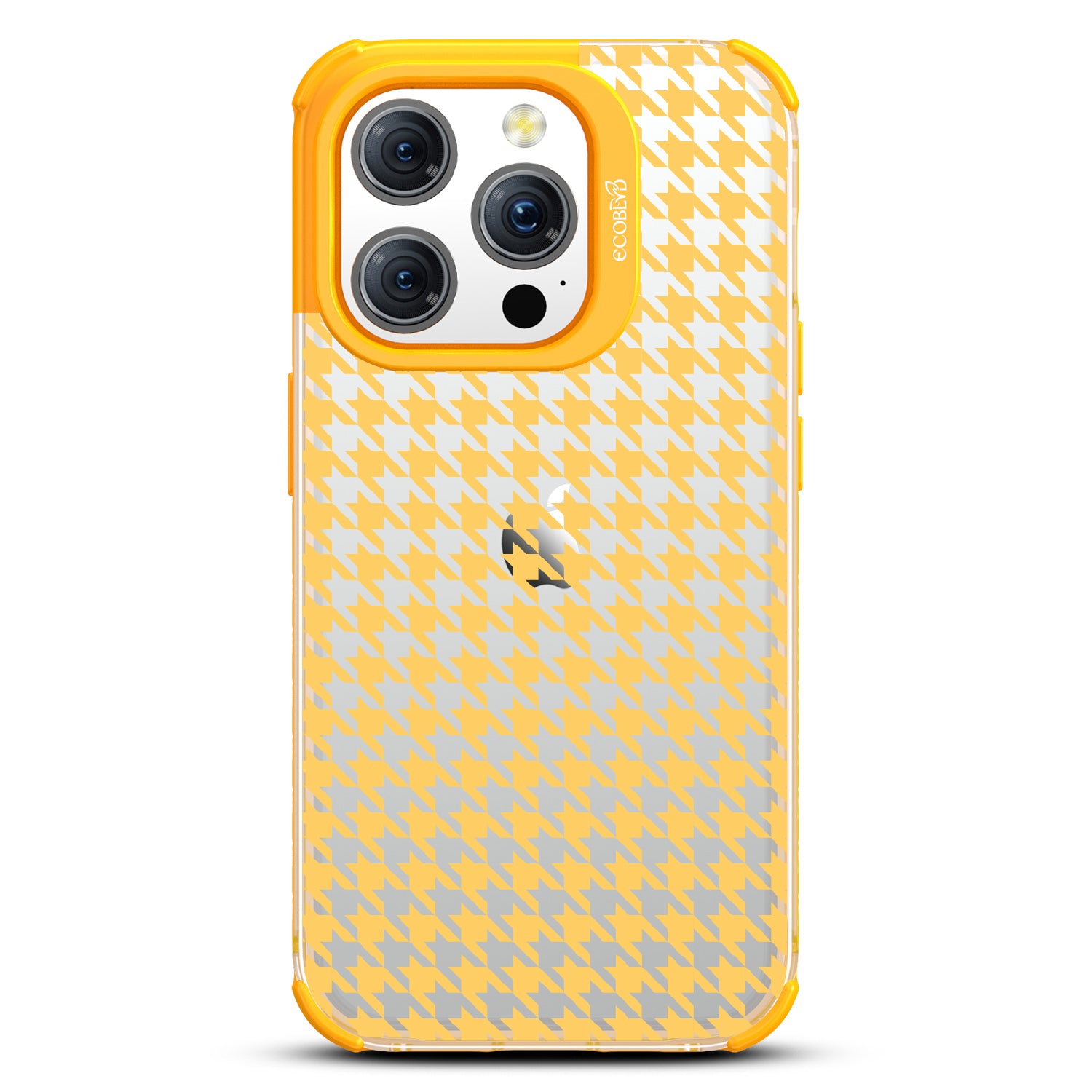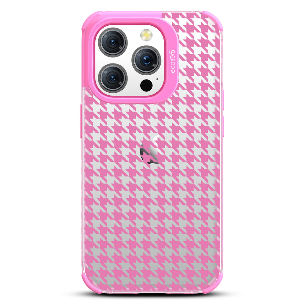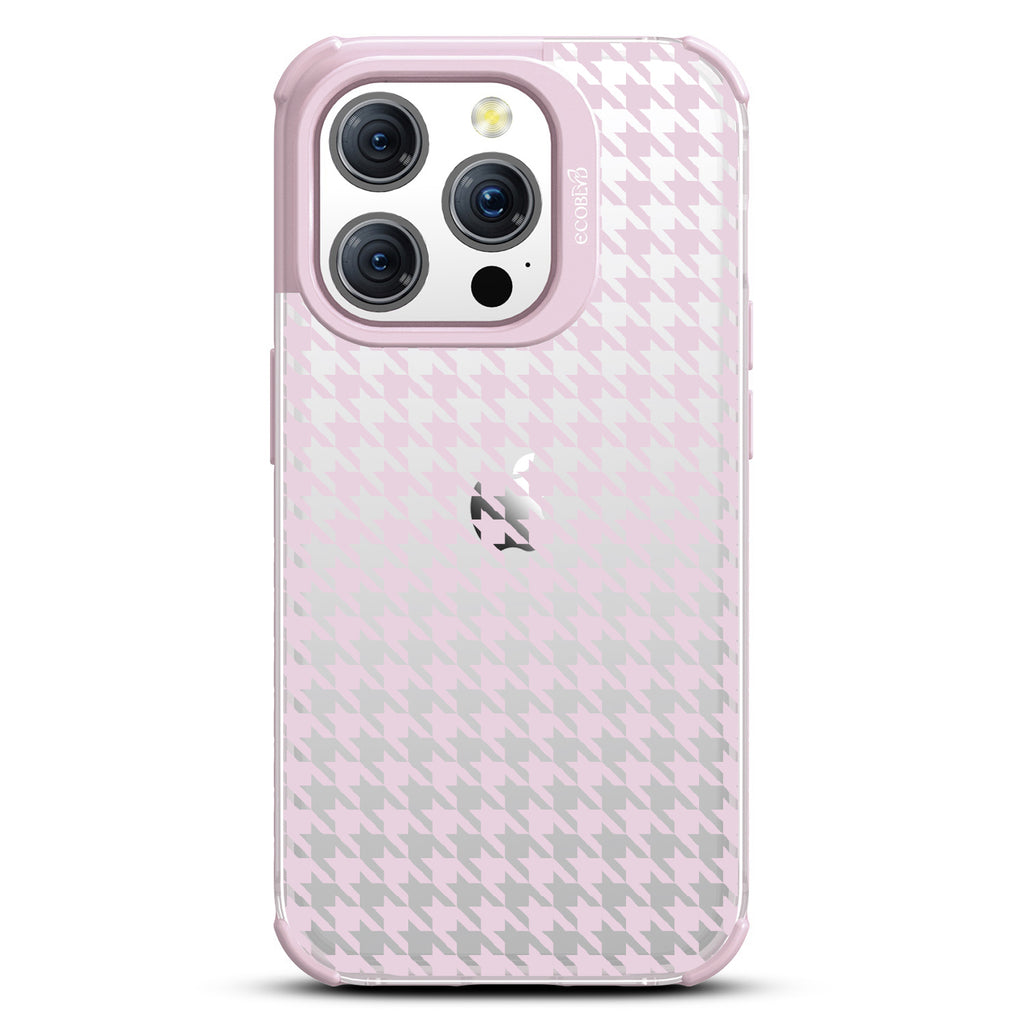 The Houndstooth design on our Laguna clear iPhone 15 Pro phone case will have you saying, "Check, please!" as its utilitarian two-toned weaved pattern brings a high society attitude to wake up your style and your phone with a bold look in five striking color options: Midnight Black, Cascade Blue, Pastel Lilac, Illuminating Yellow, and Wildflower Pink.