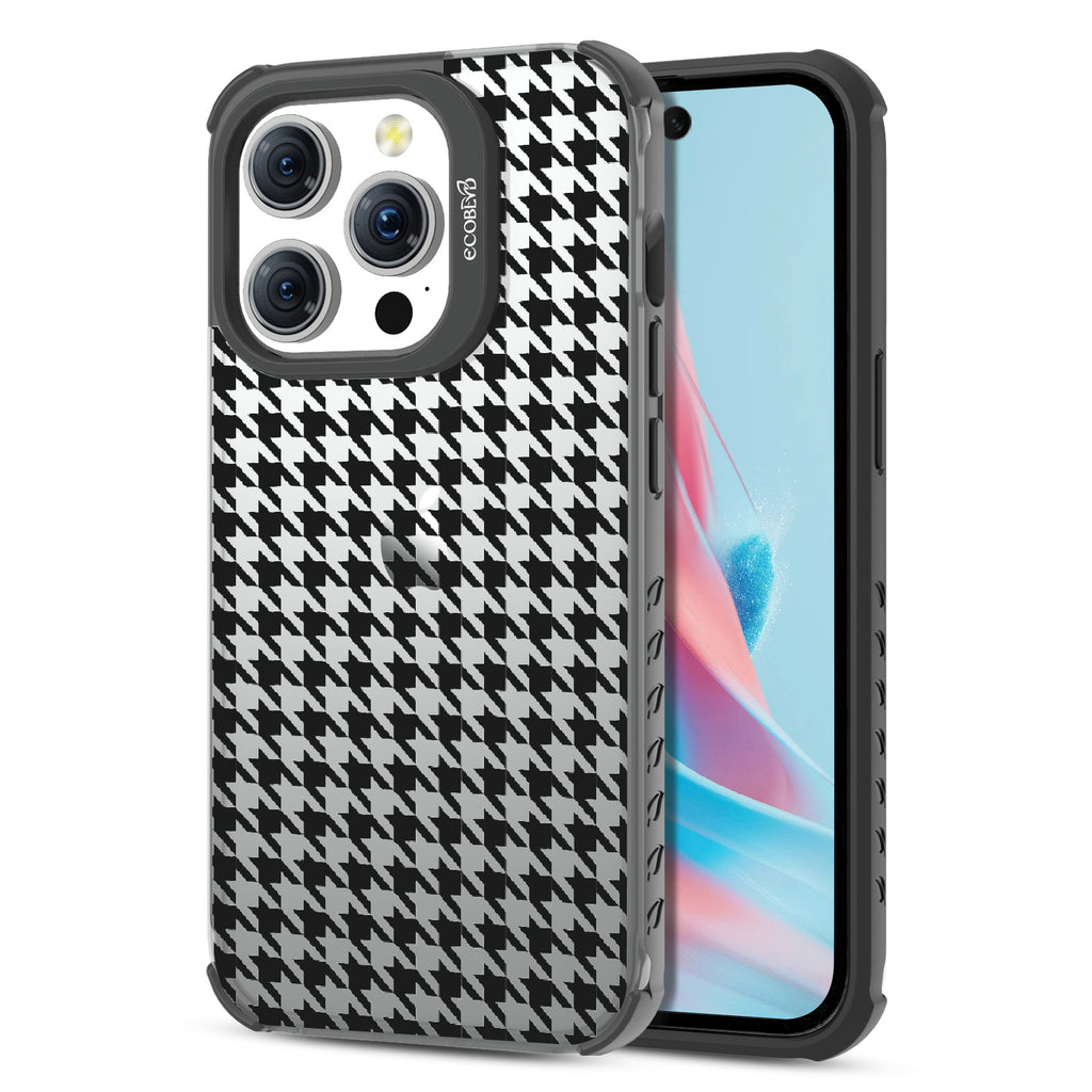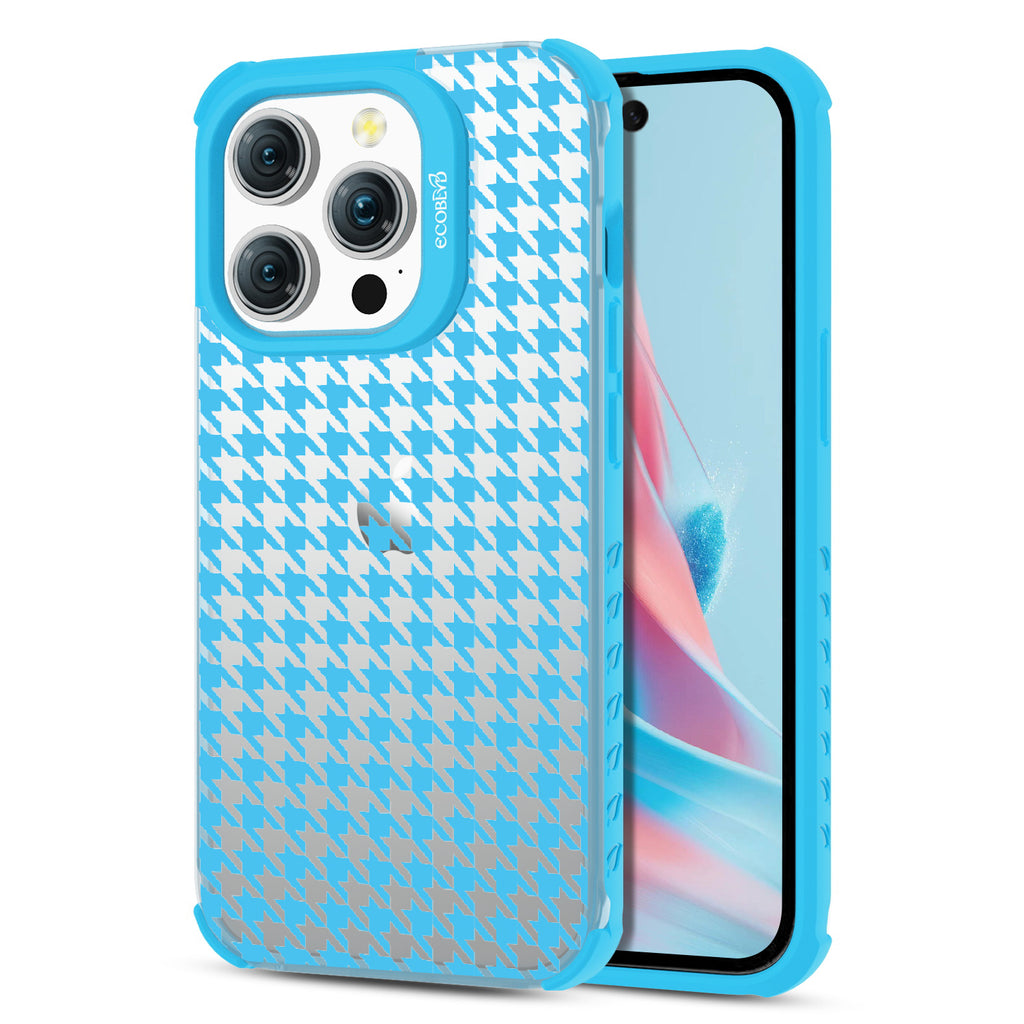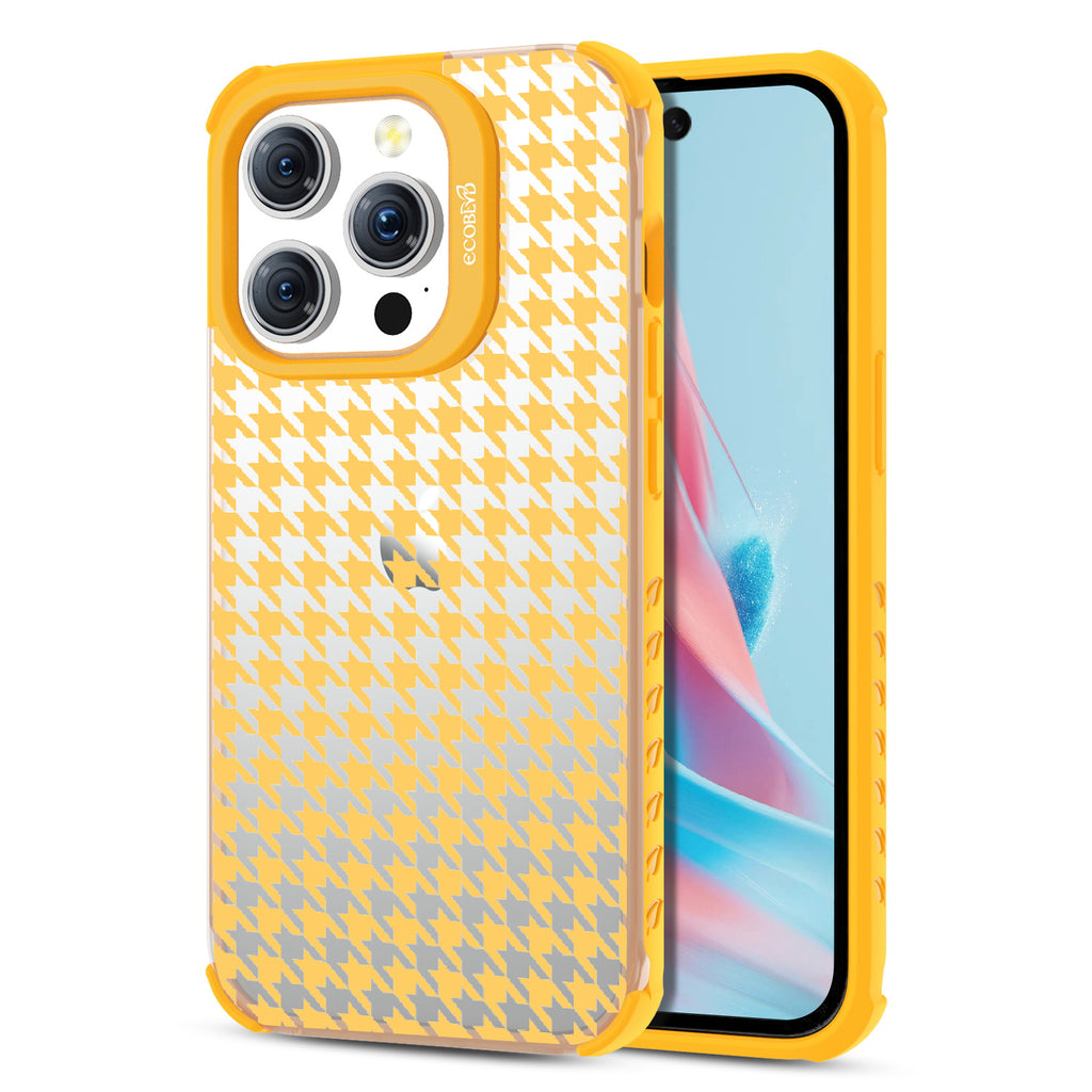 The Houndstooth design on our Laguna clear iPhone 15 Pro phone case will have you saying, "Check, please!" as its utilitarian two-toned weaved pattern brings a high society attitude to wake up your style and your phone with a bold look in five striking color options: Midnight Black, Cascade Blue, Pastel Lilac, Illuminating Yellow, and Wildflower Pink.
