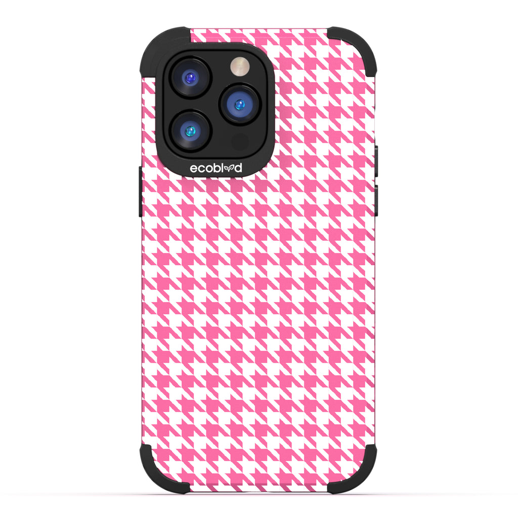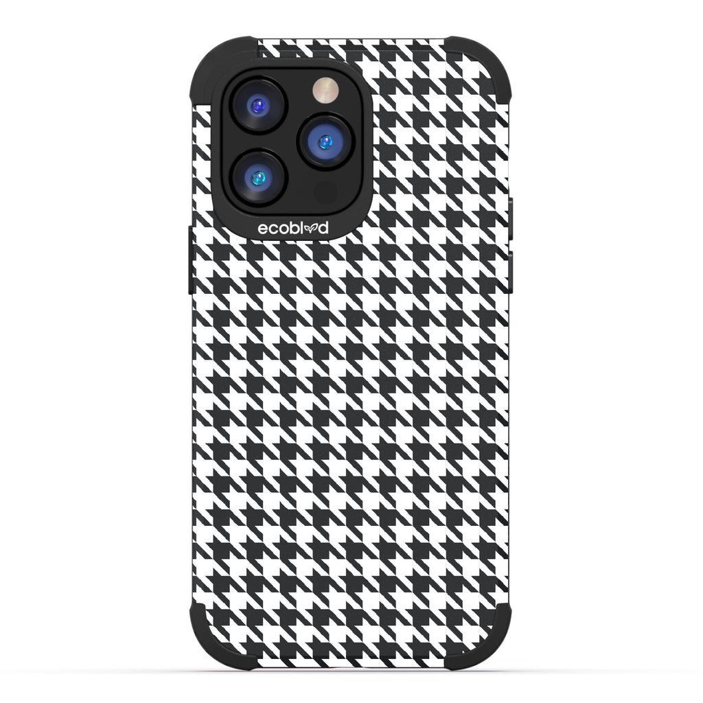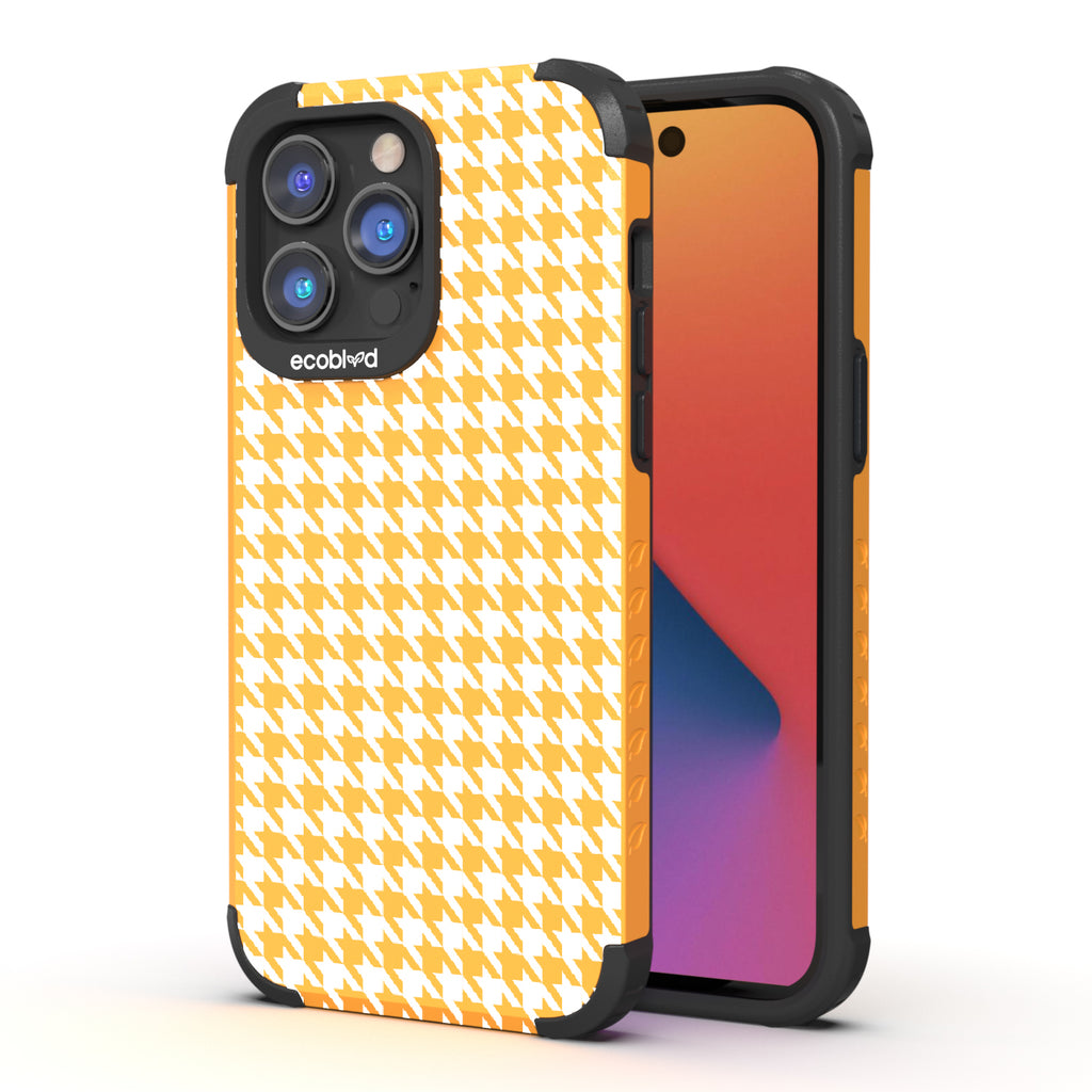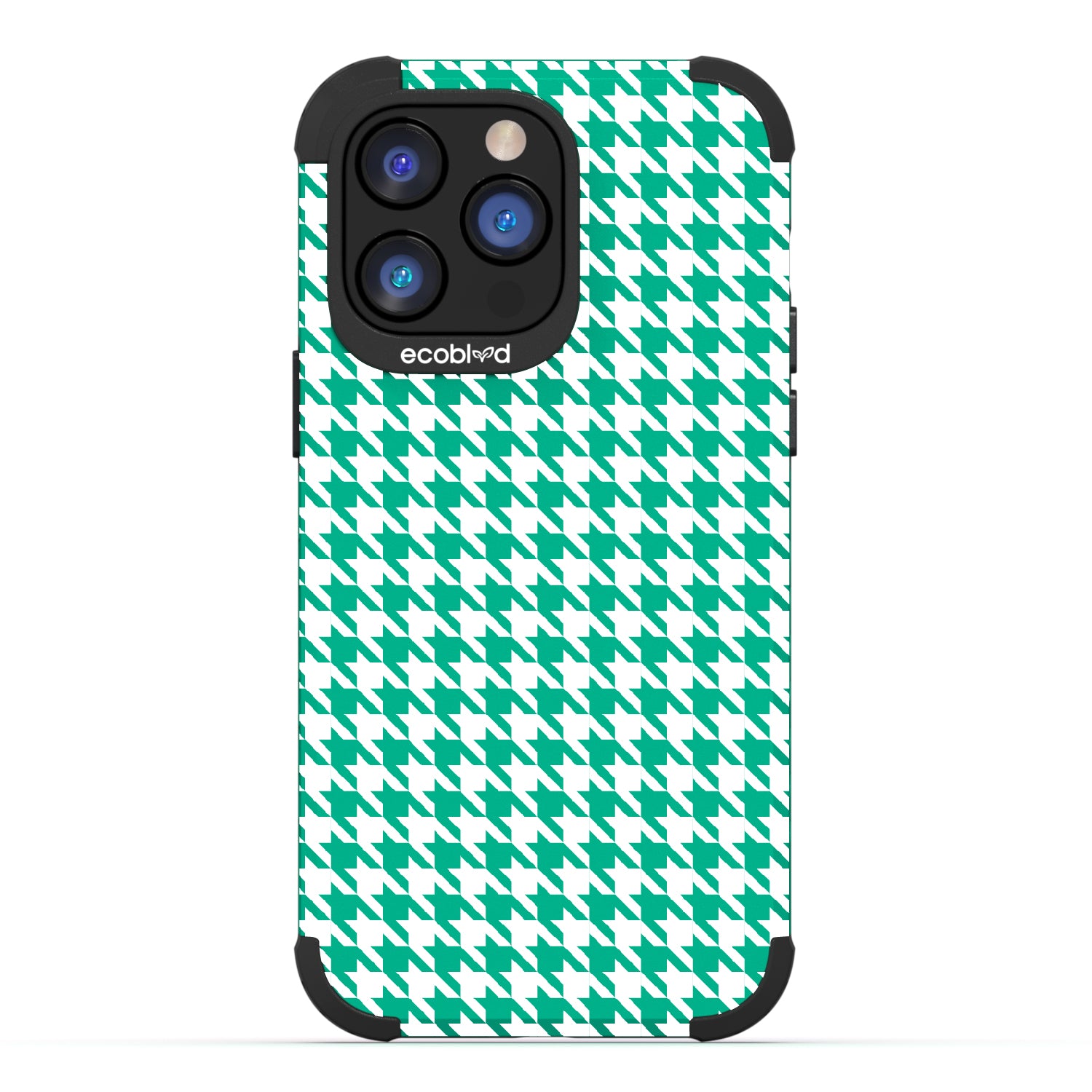 The Houndstooth design on our Mojave rugged and compostable iPhone 14 Pro phone case will have you saying, "Check, please!" as its elegant two-toned weaved pattern brings a high society attitude to elevate your style and your phone with a bold look. Available in five striking color options: Midnight Black, Cascade Blue, Foliage Green, Illuminating Yellow, and Wildflower Pink.