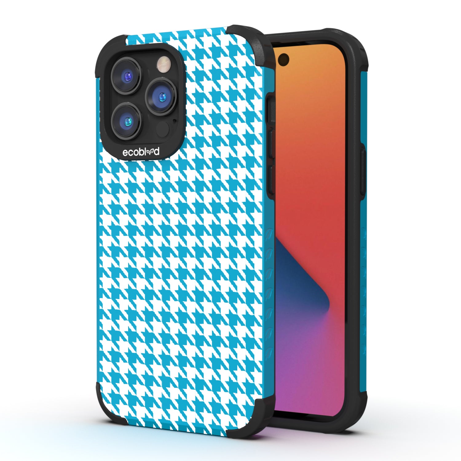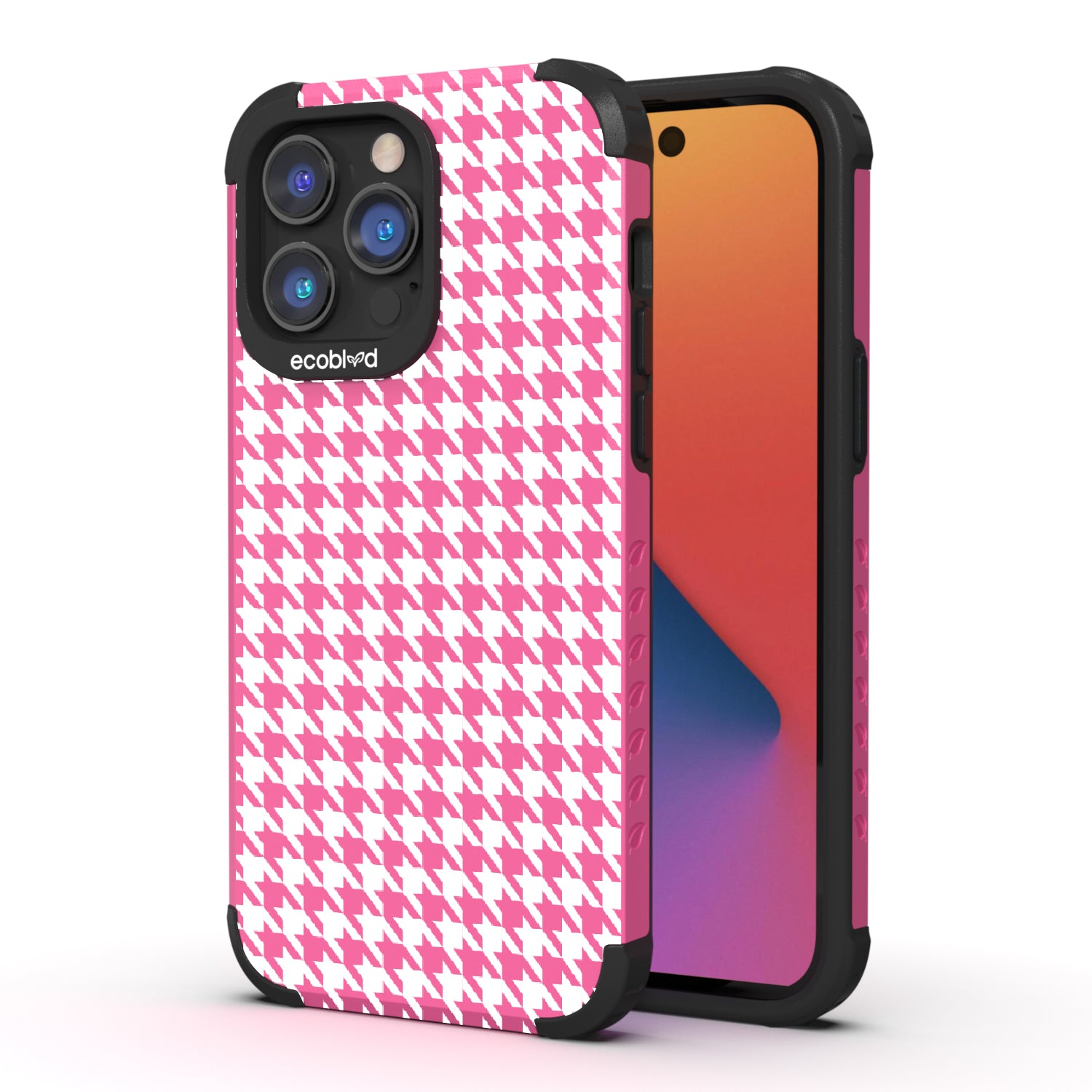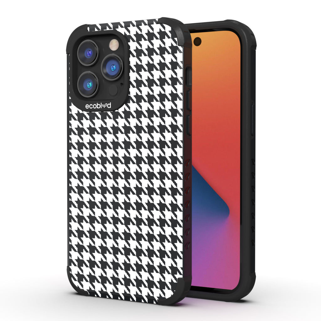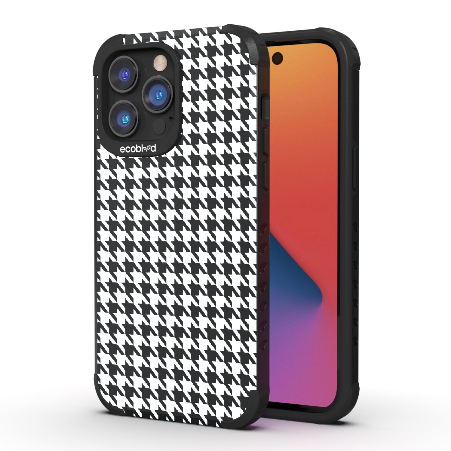The Houndstooth design on our Mojave rugged and compostable iPhone 14 Pro phone case will have you saying, "Check, please!" as its elegant two-toned weaved pattern brings a high society attitude to elevate your style and your phone with a bold look. Available in five striking color options: Midnight Black, Cascade Blue, Foliage Green, Illuminating Yellow, and Wildflower Pink.
