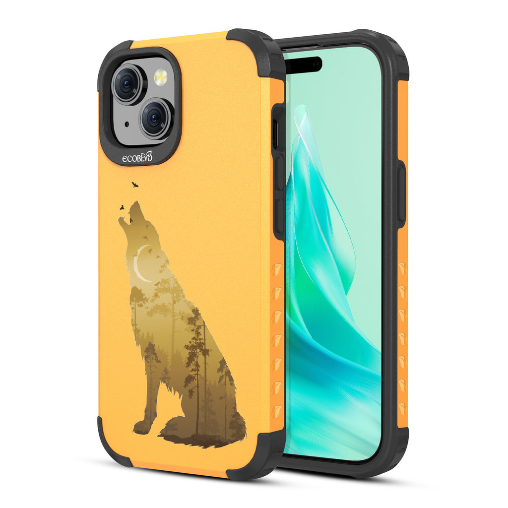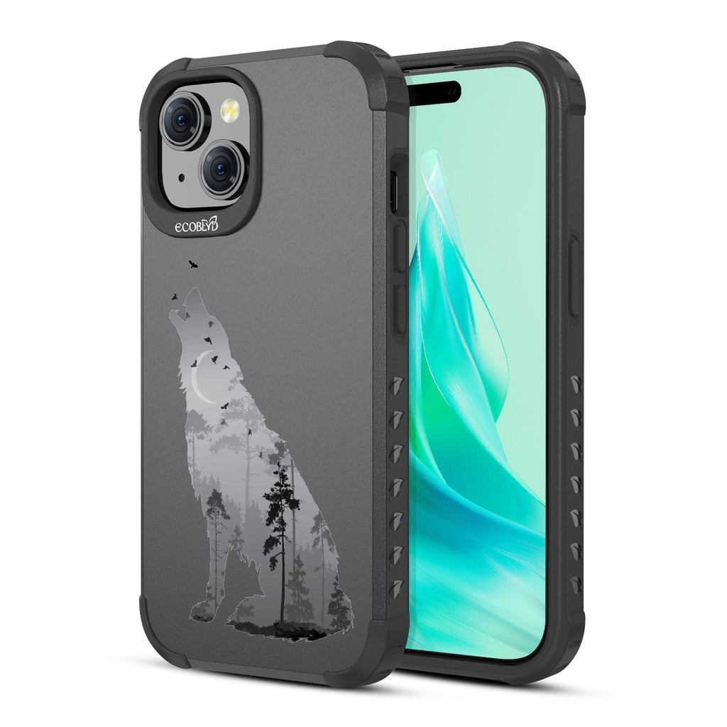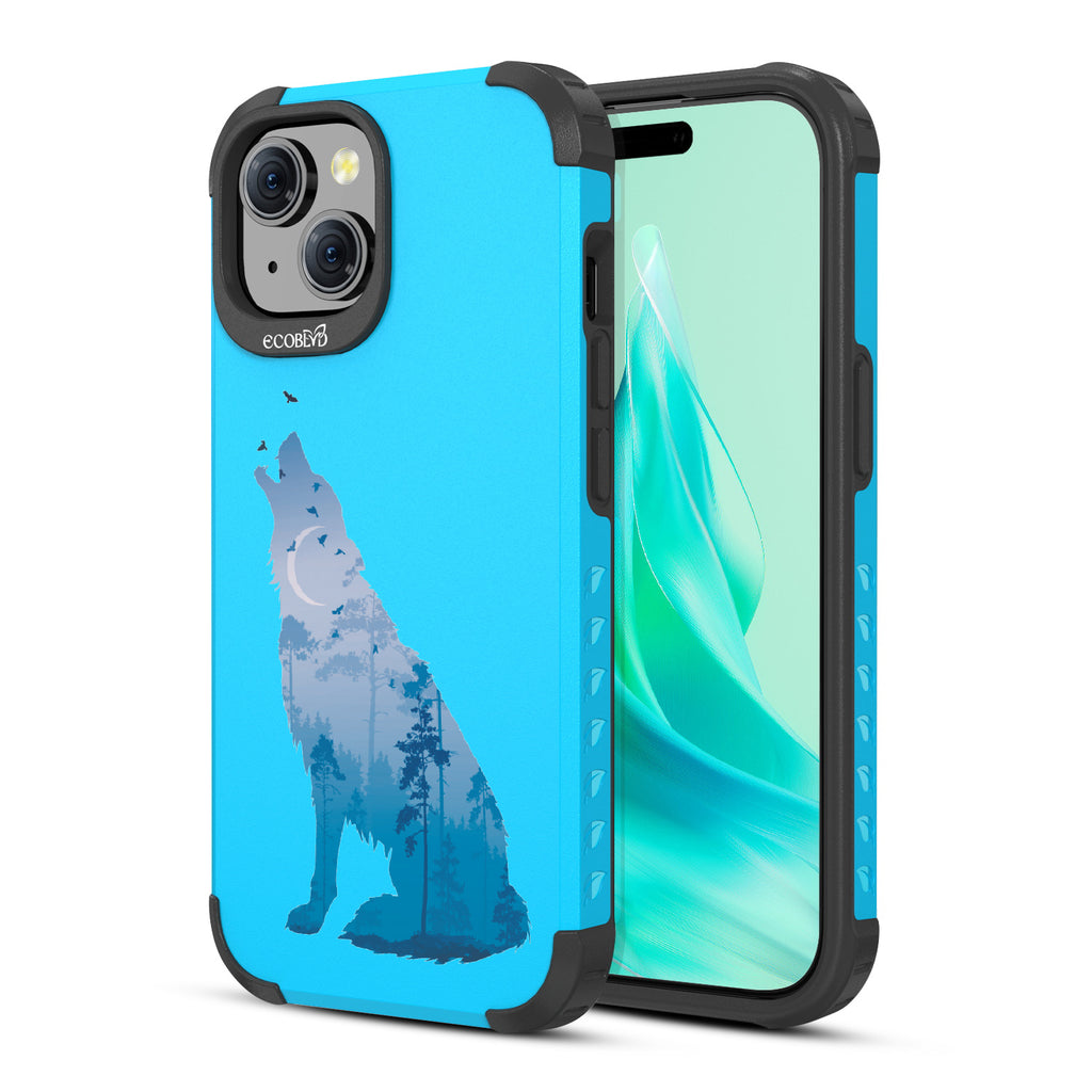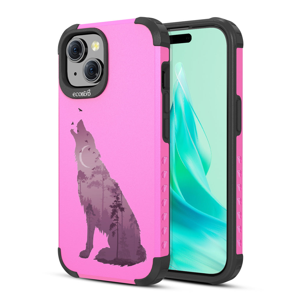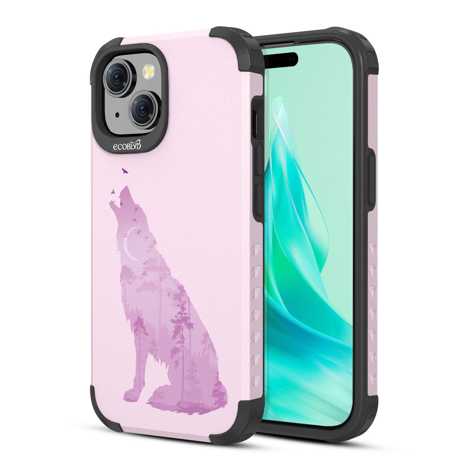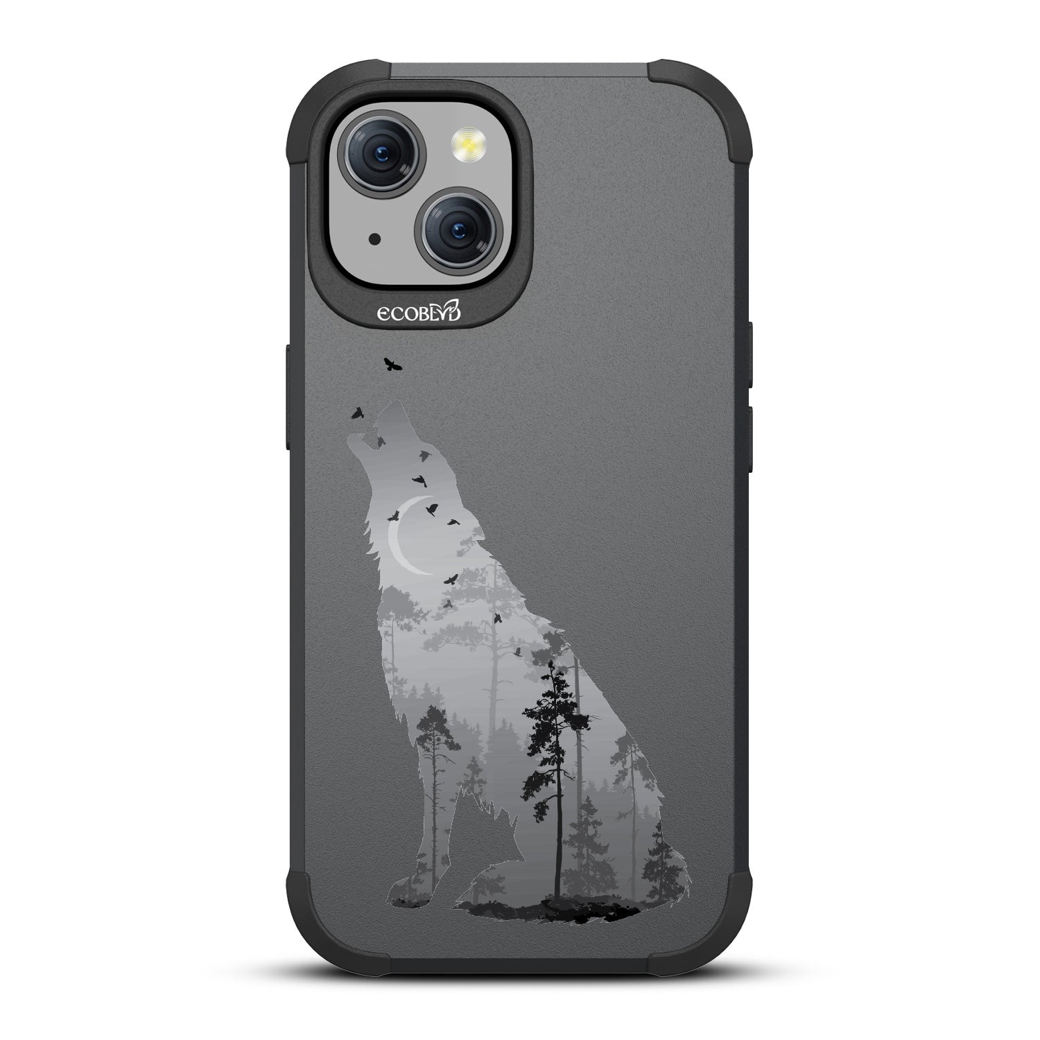 Embrace your wild side as the Howl At The Moon design on our Mojave rugged and compostable iPhone 15 MagSafe case transforms your iPhone into an enchanting moonlit woodland with a howling wolf prowling through the darkness. Available in five colorways: Midnight Black, Cascade Blue, Wildflower Pink, Illuminating Yellow, and the exclusive Pastel Lilac!