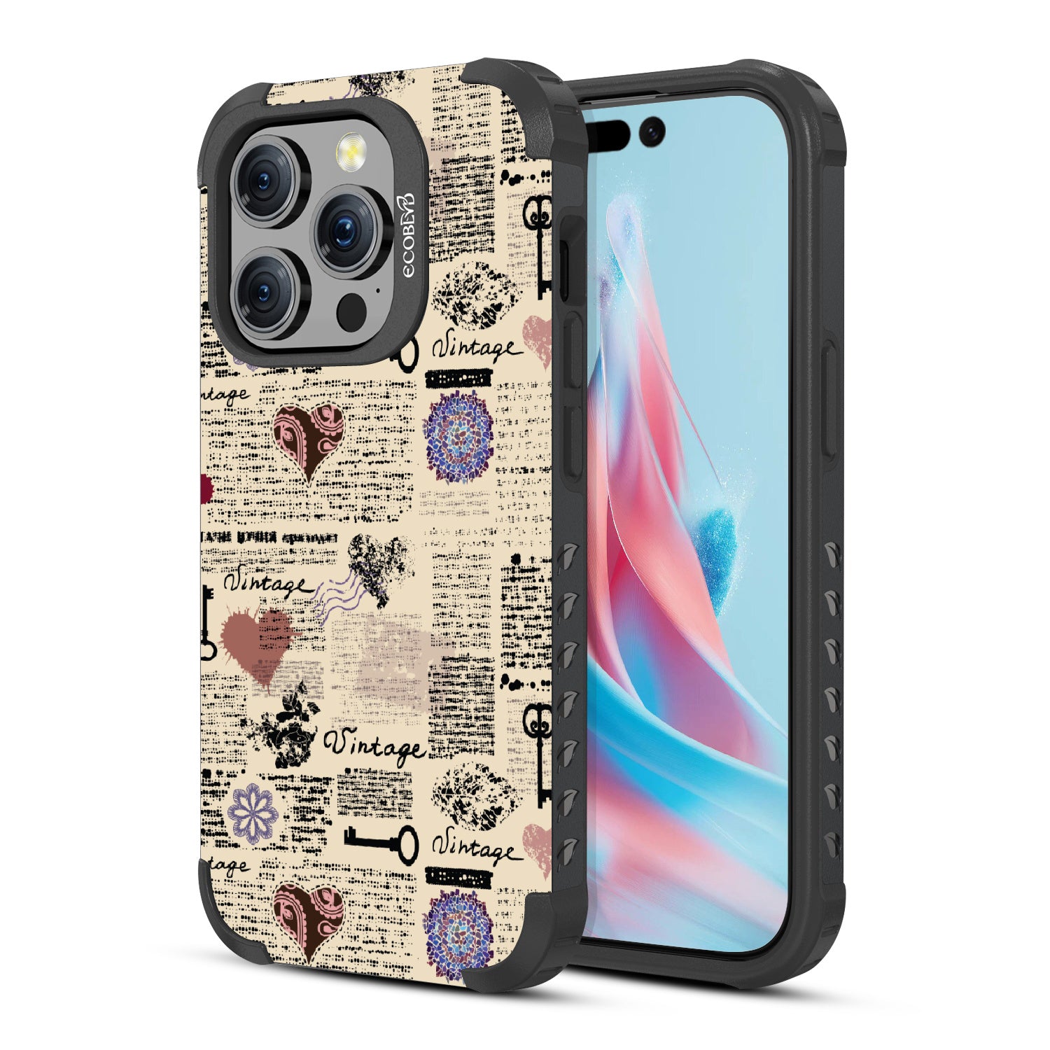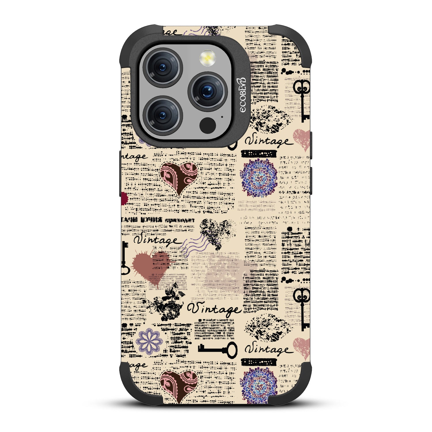 Craft a tale of everlasting love with the In The Pages design on our Mojave rugged and compostable iPhone 15 Pro MagSafe case. This delightful vintage scrapbook look is adorned with loving hearts, keys, and notes and encourages you to build a story through your memories that never fade, forever preserving your love.